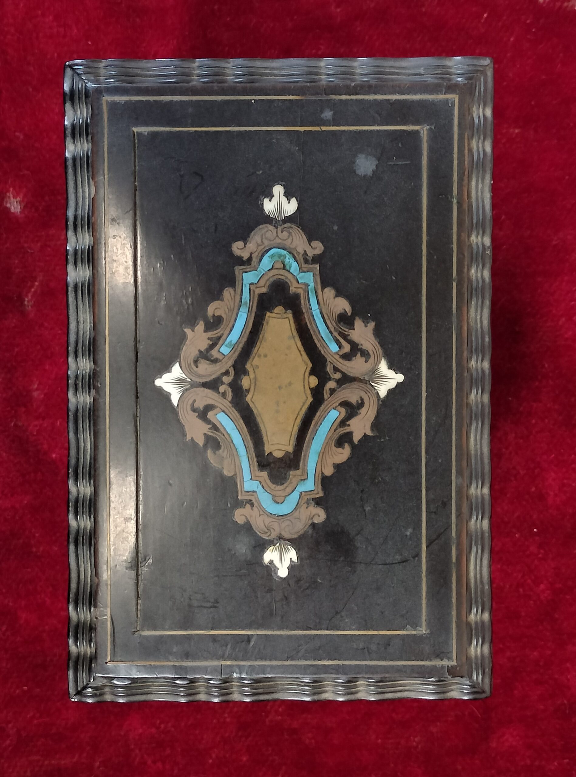 CAJA PARA PERFUMES. ESTILO NAPOLEÓN III. MADERA Y FRASCOS DE CRISTAL. EUROPA. SIGLO XIX.