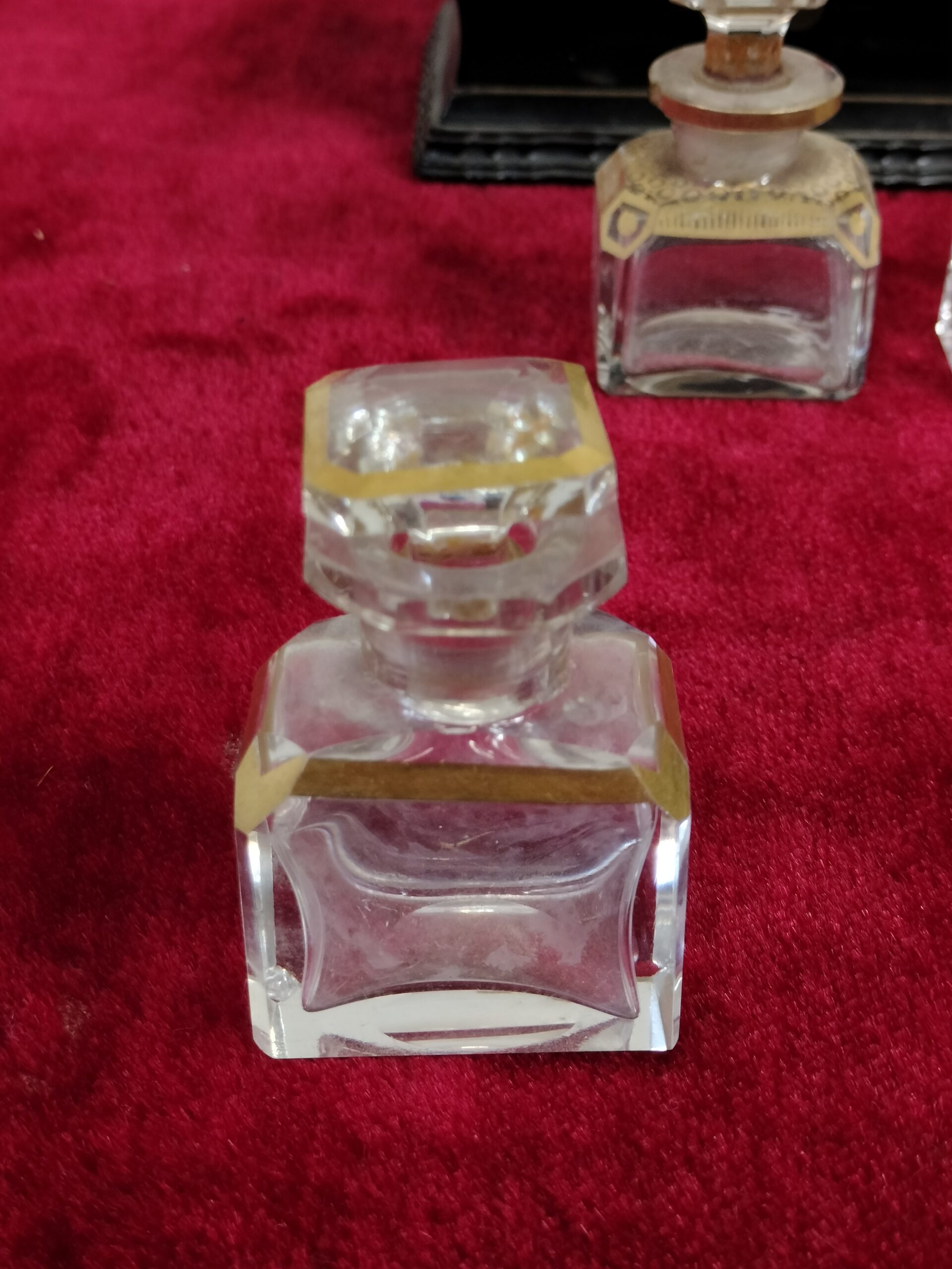 VER IMÁGENES PARA COMPROBAR EL ESTADO REAL. LAS IMÁGENES FORMAN PARTE DE LA DESCRIPCIÓN. CAJA PARA FRASCOS DE PERFUME. ESTILO NAPOLEÓN III. CAJA EN MADERA POLICROMADA. FRASCOS EN CRISTAL TALLADO, ORNAMENTADOS CON BANDAS EN DORADO. PRESENTAN LIGEROS DESGASTES DEBIDO AL USO. RESTOS DE SUCIEDAD. VER IMÁGENES. MEDIDAS APROX: CAJA: 12,2 ANCHO X 8,3 LARGO X 9 ALTO CM. FRASCOS: 6,5 CM ALTO (CON TAPÓN). 4,2 X 2,5 CM (BASE). 2,7 X 2,7 CM (BOCA). 113 GRAMOS (1 FRASCO).