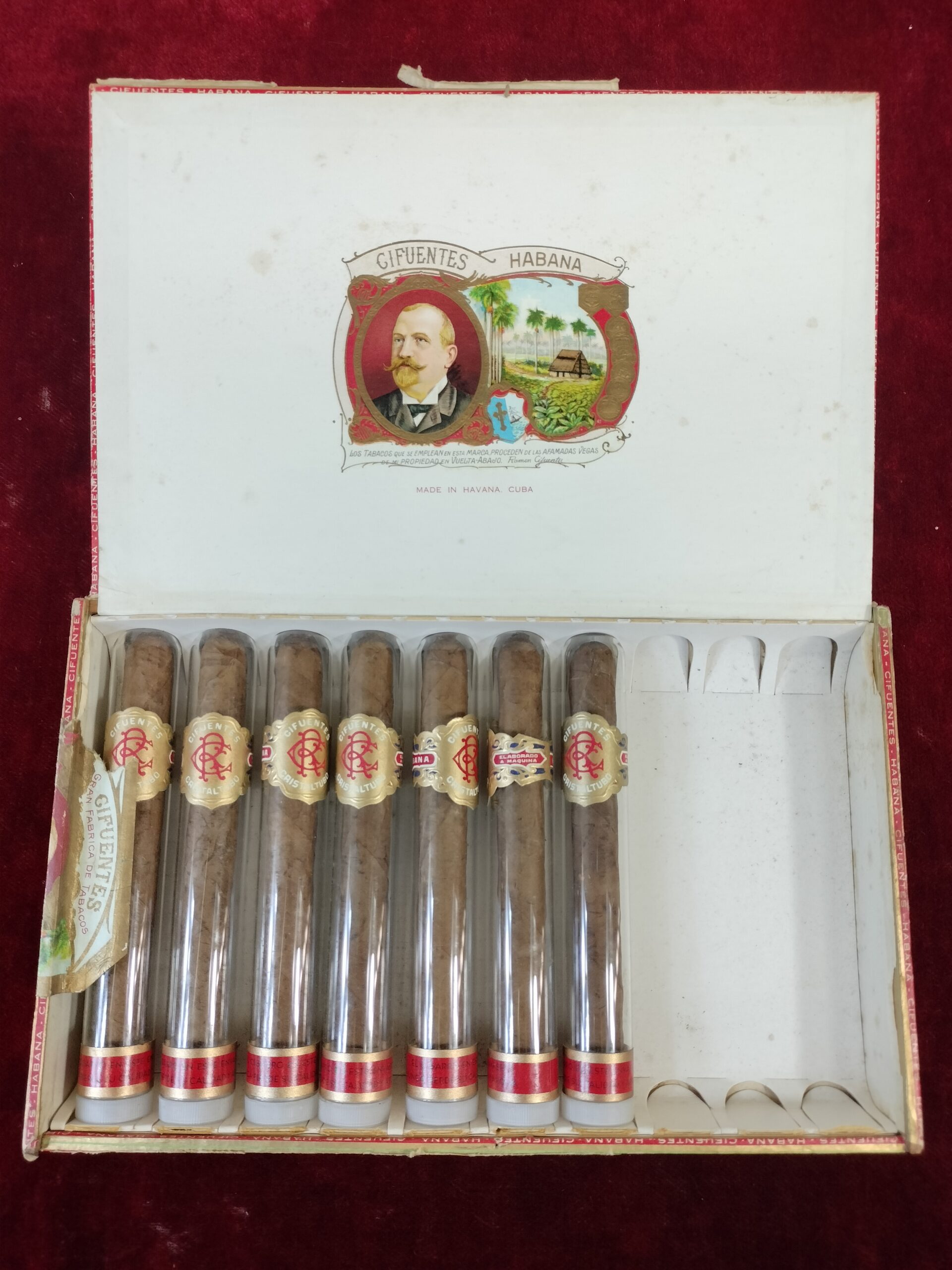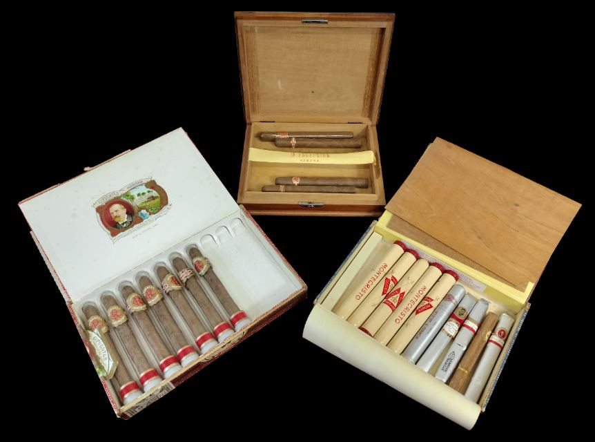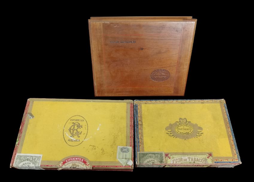 VER IMÁGENES PARA COMPROBAR EL ESTADO REAL.  LAS IMÁGENES FORMAN PARTE DE LA DESCRIPCIÓN.  COLECCIÓN DE PUROS. CIFUENTES, MONTECRISTO, GENER Y OTROS. EL LOTE INCLUYE TRES CAJAS, TODAS ABIERTAS Y CON SELLOS ROTOS:  – CAJA CIFUENTES (28,3 X 18 X 4 CM). INCLUYE 7 CRISTALTUBOS, SIN ABRIR Y CON VITOLA.  – CAJA PARTAGAS (24,2 x 17 x 4 CM). INCLUYE 5 CRISTALTUBOS MONTECRISTO, TRES DE ELLOS VACÍOS. INCLUYE TAMBIÉN CINCO PUROS SIN ABRIR: 3 DON JULIÁN, 1 ROMEO Y JULIETA, 1 ALVARO.  – CASA JOSE GENER, LA ESCEPCION (25 X 20 X 4,5 CM): INCLUYE 4 PUROS, TRES CORTADOS Y SIN FUNDA.  LIGEROS DESGASTES DEBIDO AL TIEMPO, VER IMÁGENES.