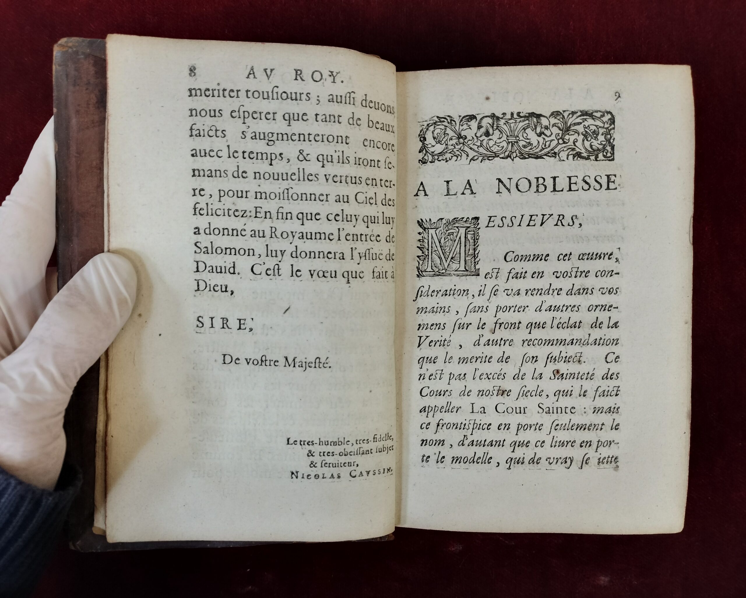 LA COUR SAINTE. NICOLAS CAUSSIN. CINCO LIBROS EN UNO. PARÍS, CHEZ SEBASTIEN CHAPPELET. 1631.