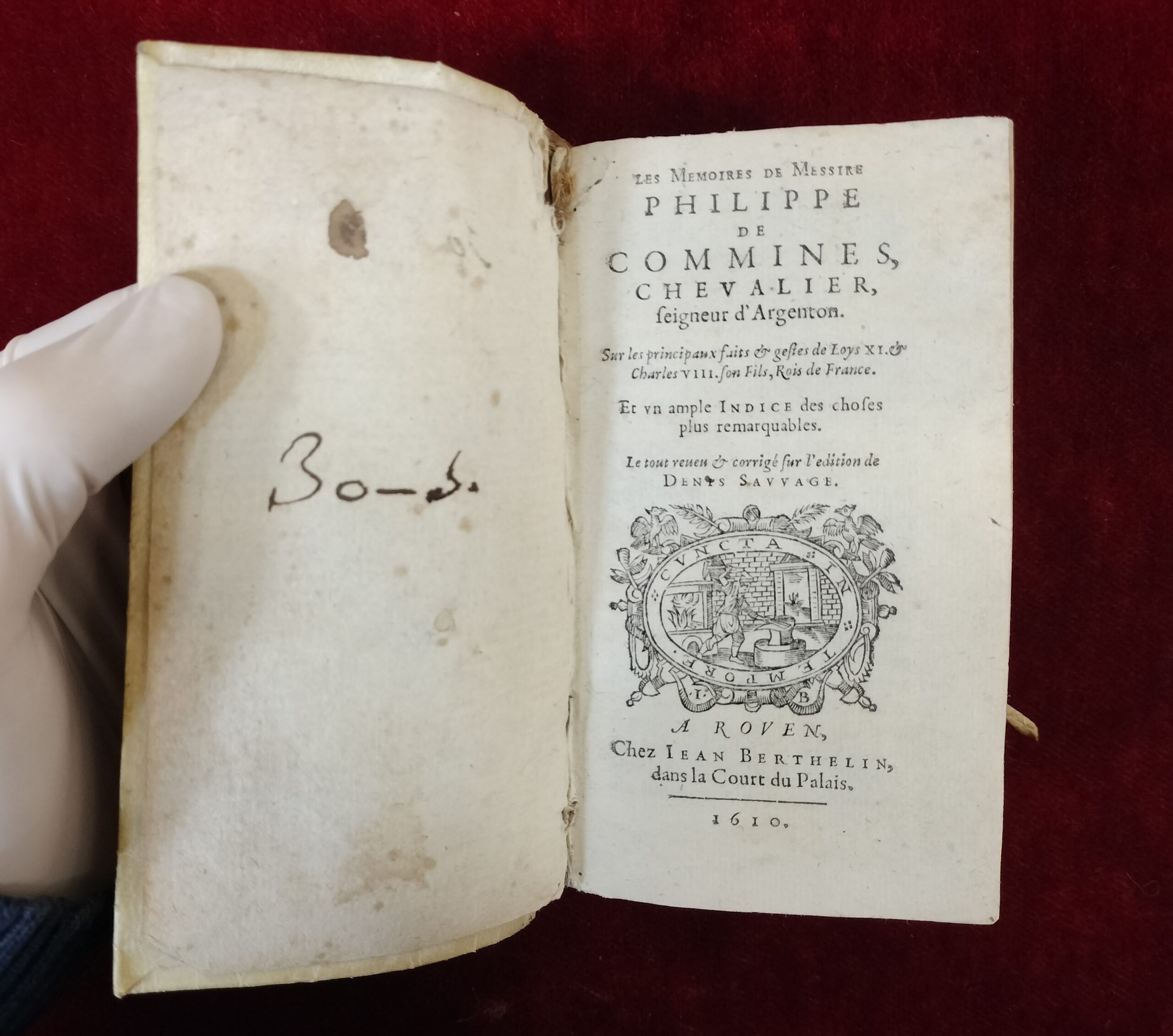 LES MEMOIRES DE MESSIRE PHILIPPE DE COMMINES. ROUEN, CHEZ BERTHELIN. 1610.