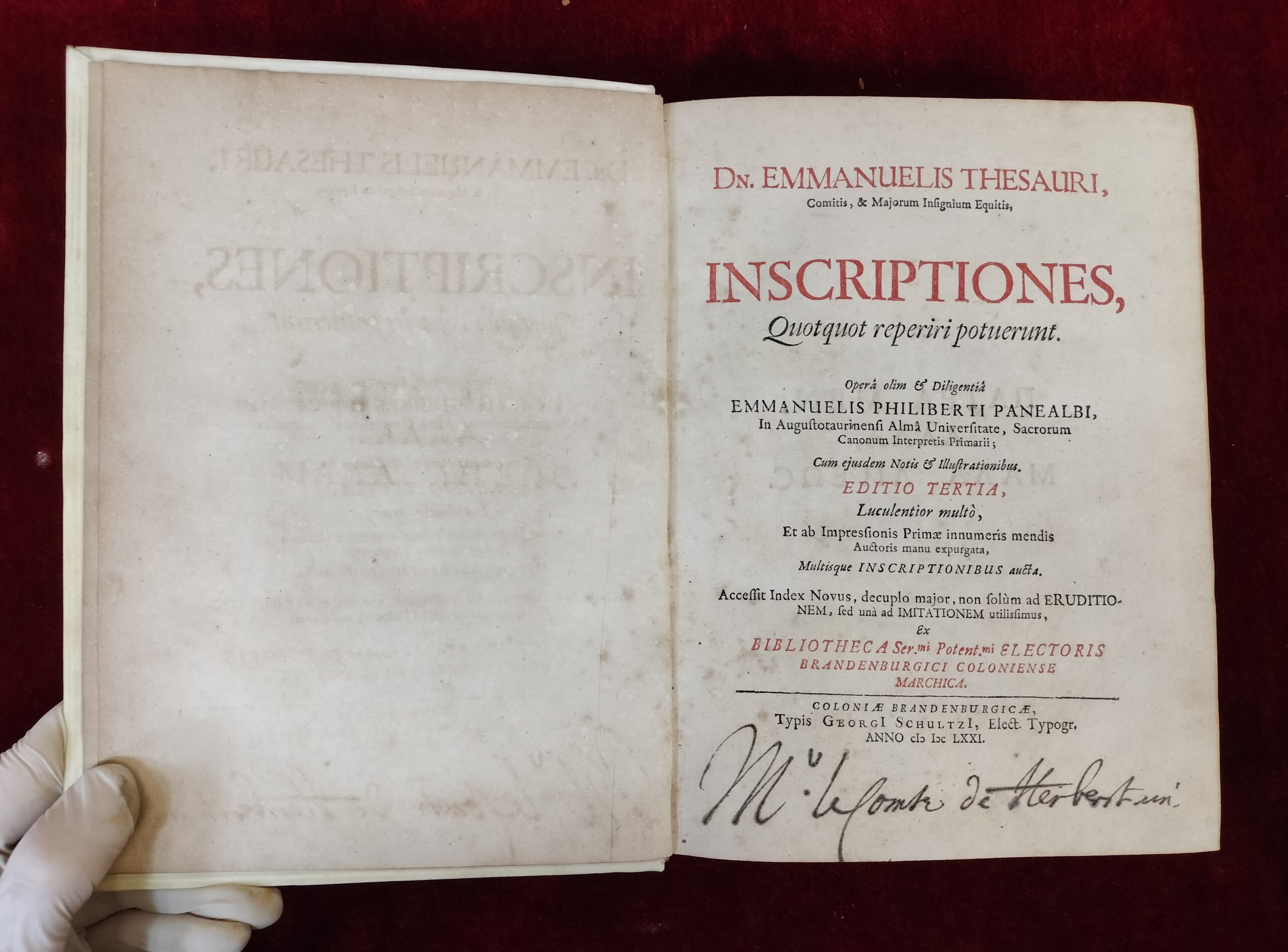 INSCRIPTIONES, QUOTQUOT REPERIRI POTUERUNT. EMMANUELIS THESAURI. BERLIN, SCHULZII. 1671.