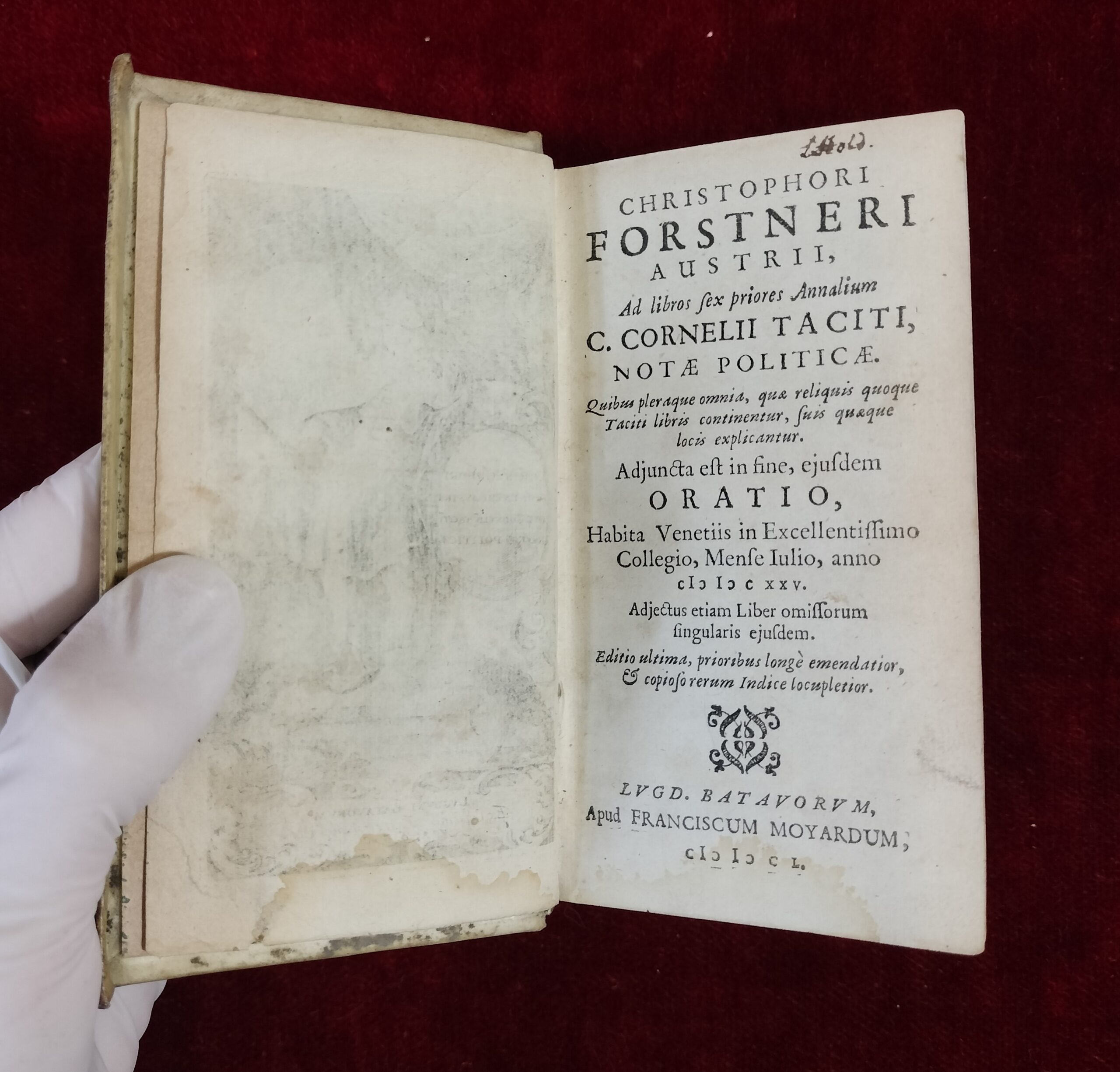 CORNELII TACITI, NOTAE POLITICAE. CHRISTOPHORI FORSTNERI. LUGDUNI BATAVORUM, FRANCIS MOYARD 1650
