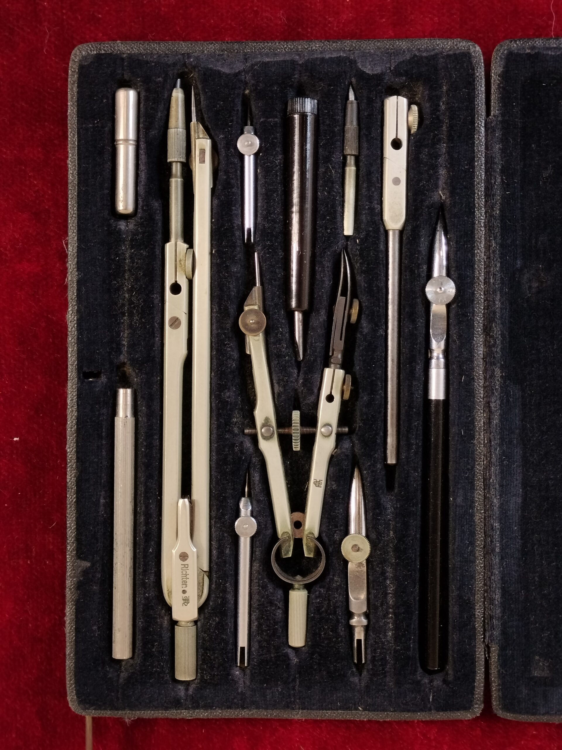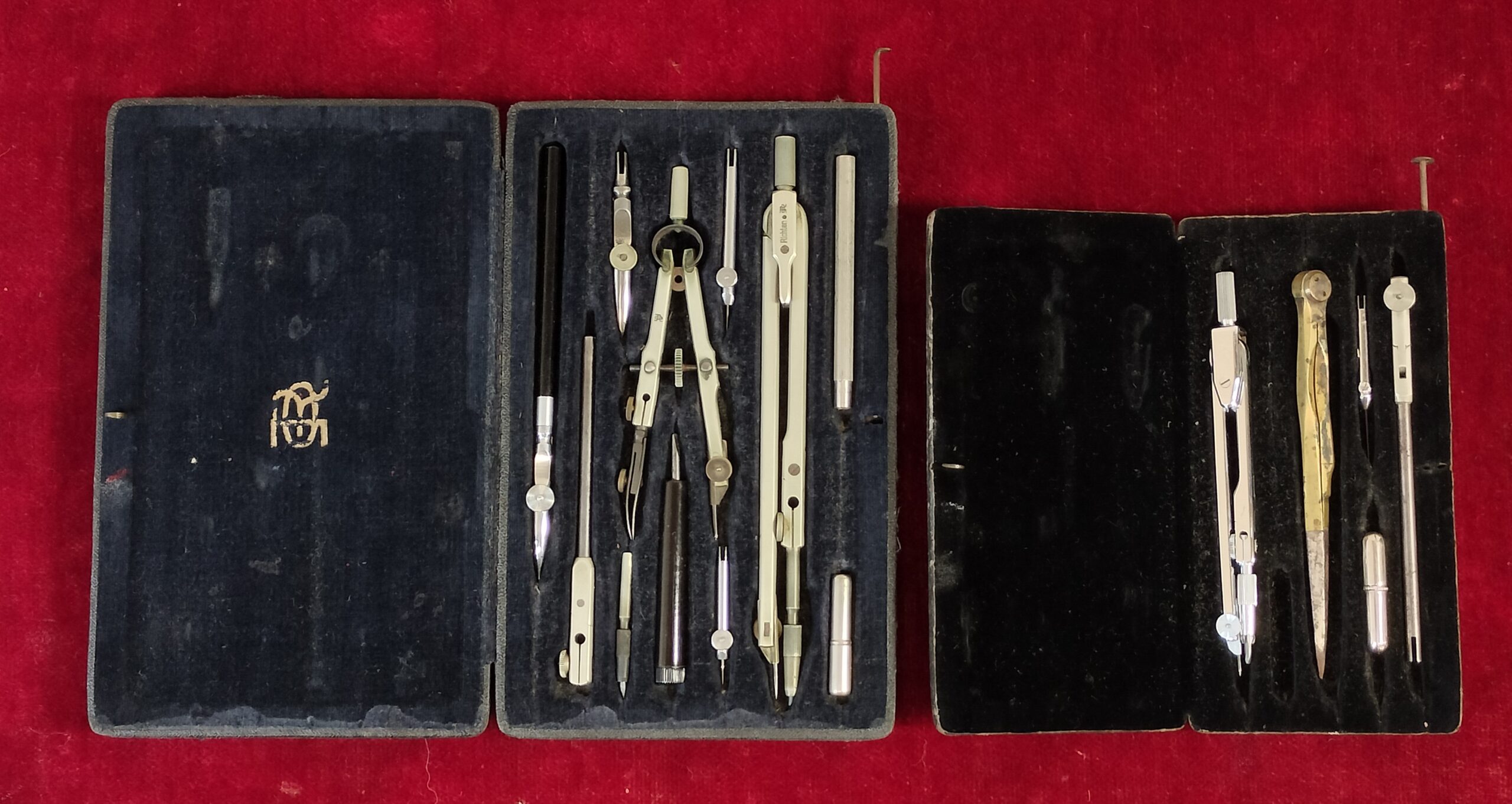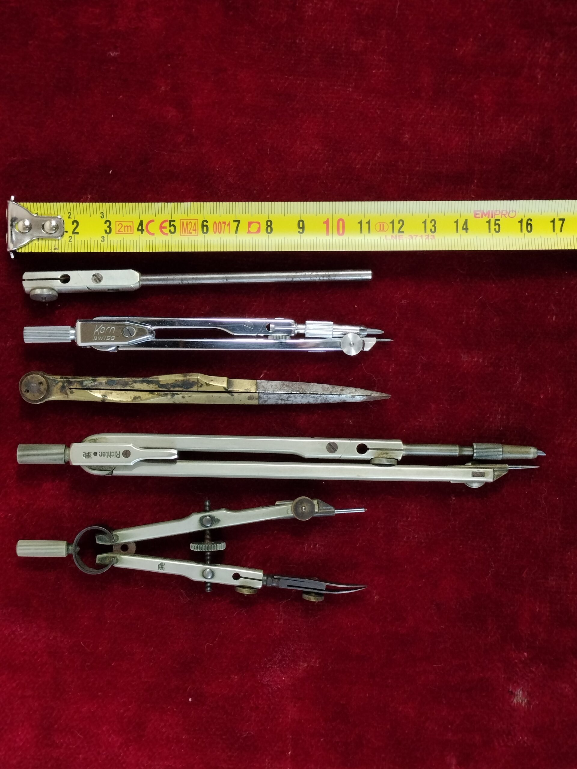 LOTE DE COMPASES Y RECAMBIOS CON ESTUCHES. RICHTER, KERN, ETC. METAL. SIGLO XX.