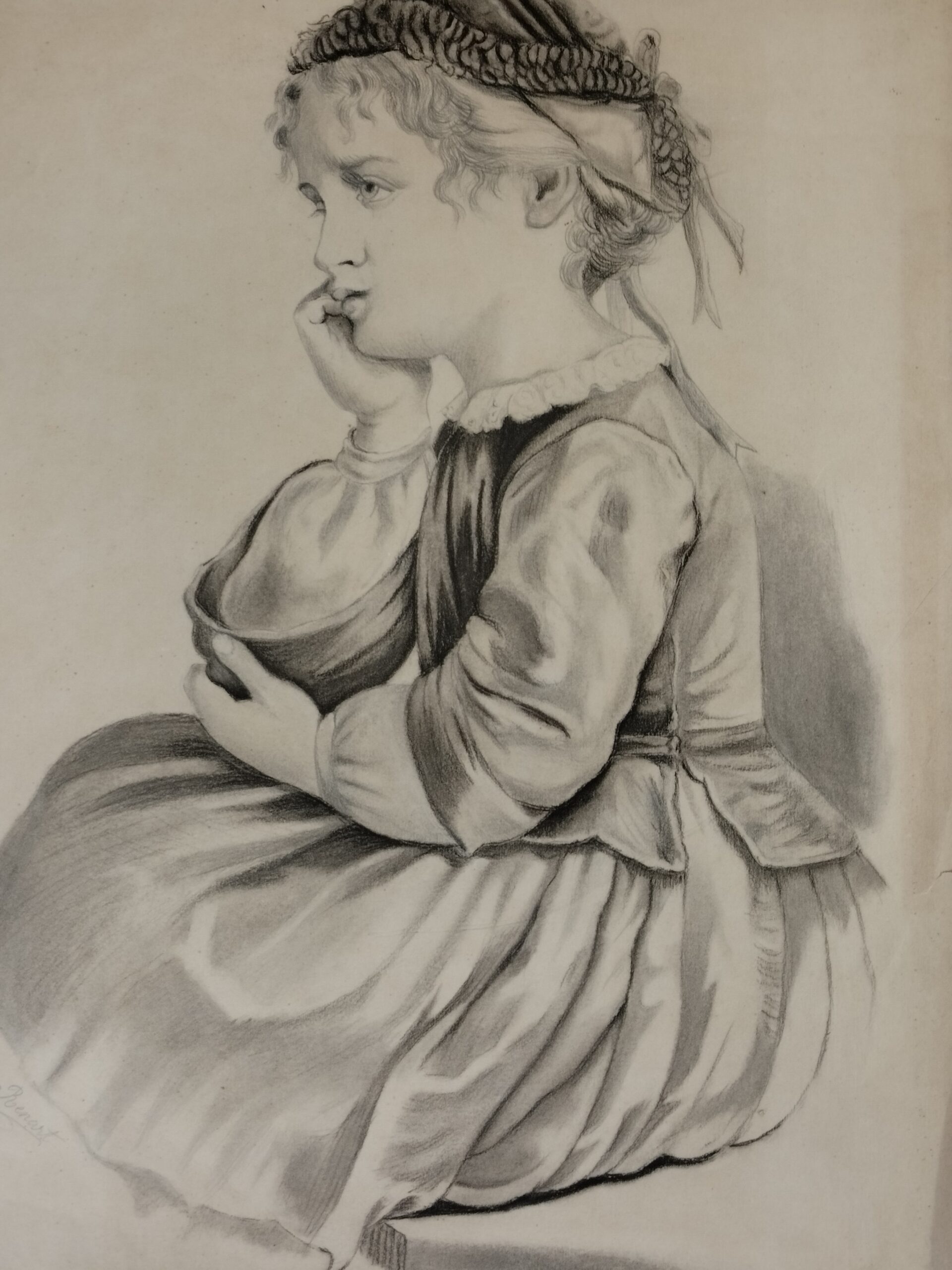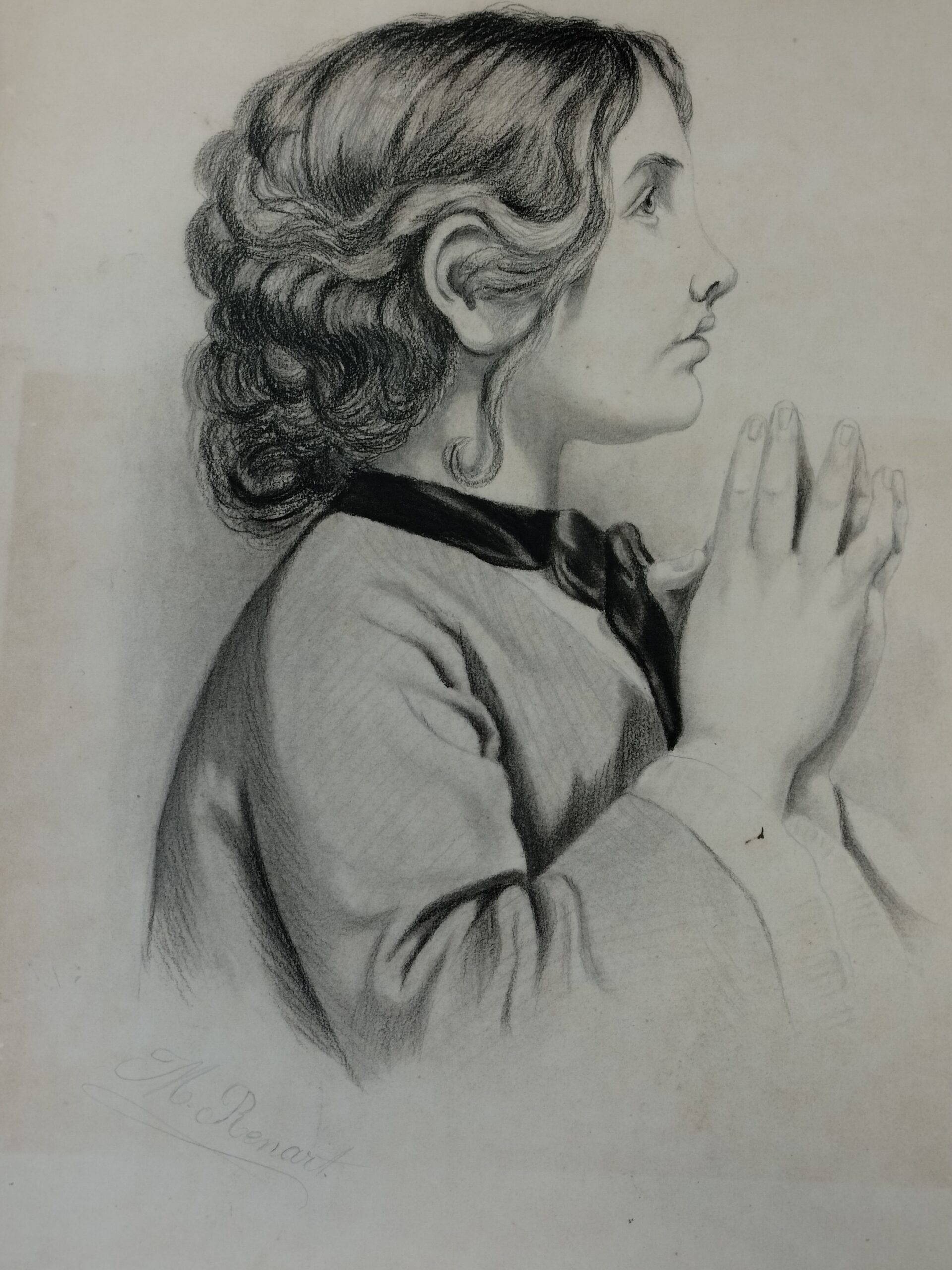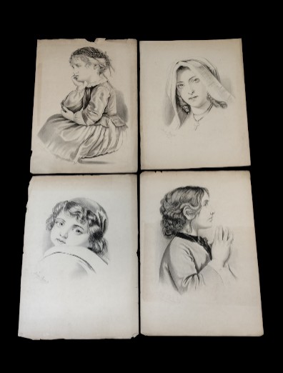 LOTE DE RETRATOS FEMENINOS (4). FIRMADO RENART. ESTILO ACADÉMICO. CARBÓN SOBRE PAPEL. ESPAÑA. XIX.