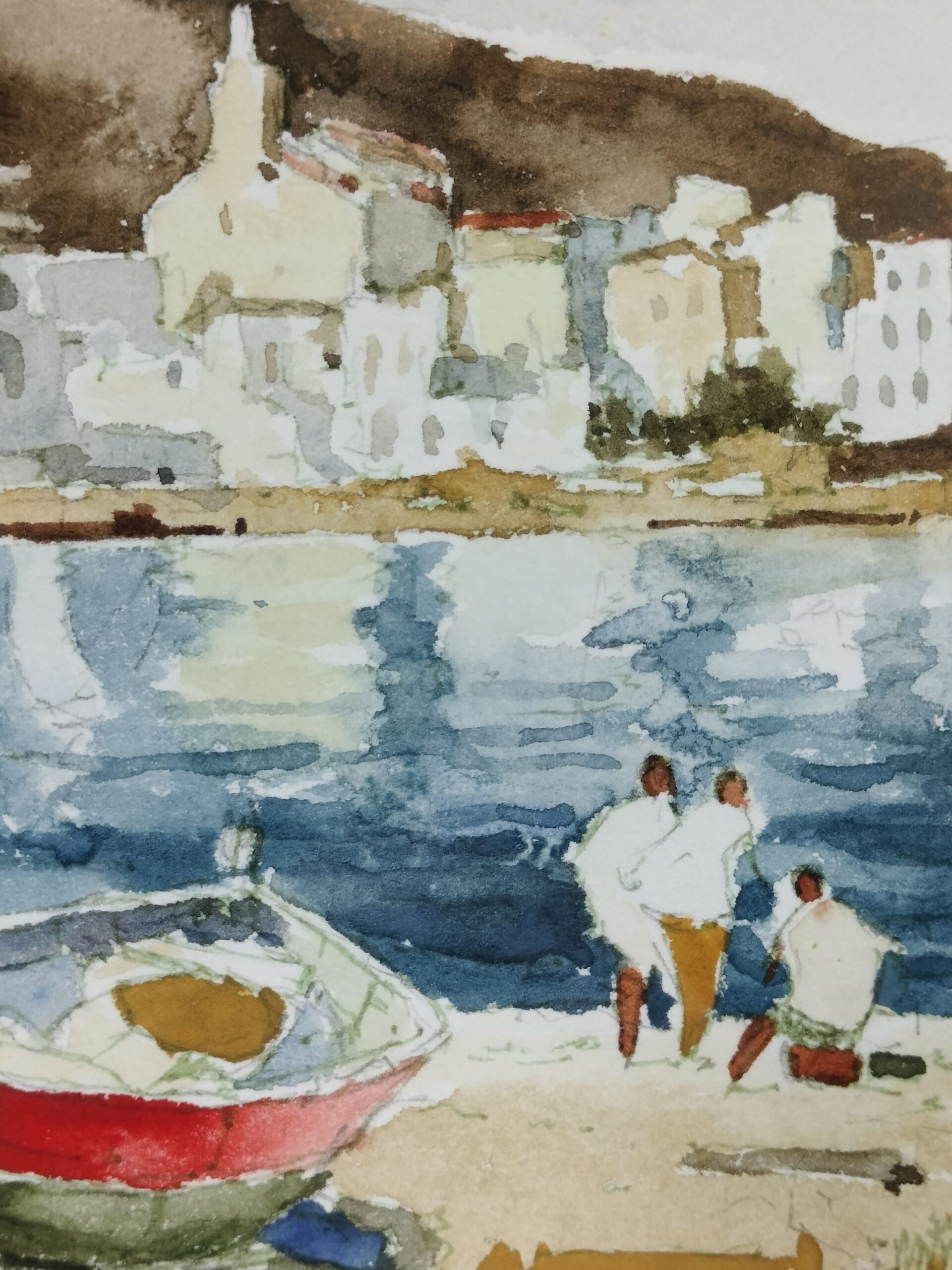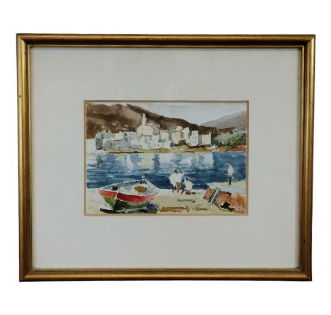 VER IMÁGENES PARA COMPROBAR EL ESTADO REAL. LAS IMÁGENES FORMAN PARTE DE LA DESCRIPCIÓN. VISTA DE CADAQUÉS CON BARCO DE PESCADORES. ACUARELA SOBRE PAPEL. FIRMADO MONTSERRAT. VIDRIO PROTECTOR. MARCO EN MADERA DORADO. BUEN ESTADO GENERAL, LIGEROS DESGASTES EN EL MARCO. MEDIDAS APROX: MARCO: 32 X 37 X 2 CM. ACUARELA: 17,5 X 12 CM.