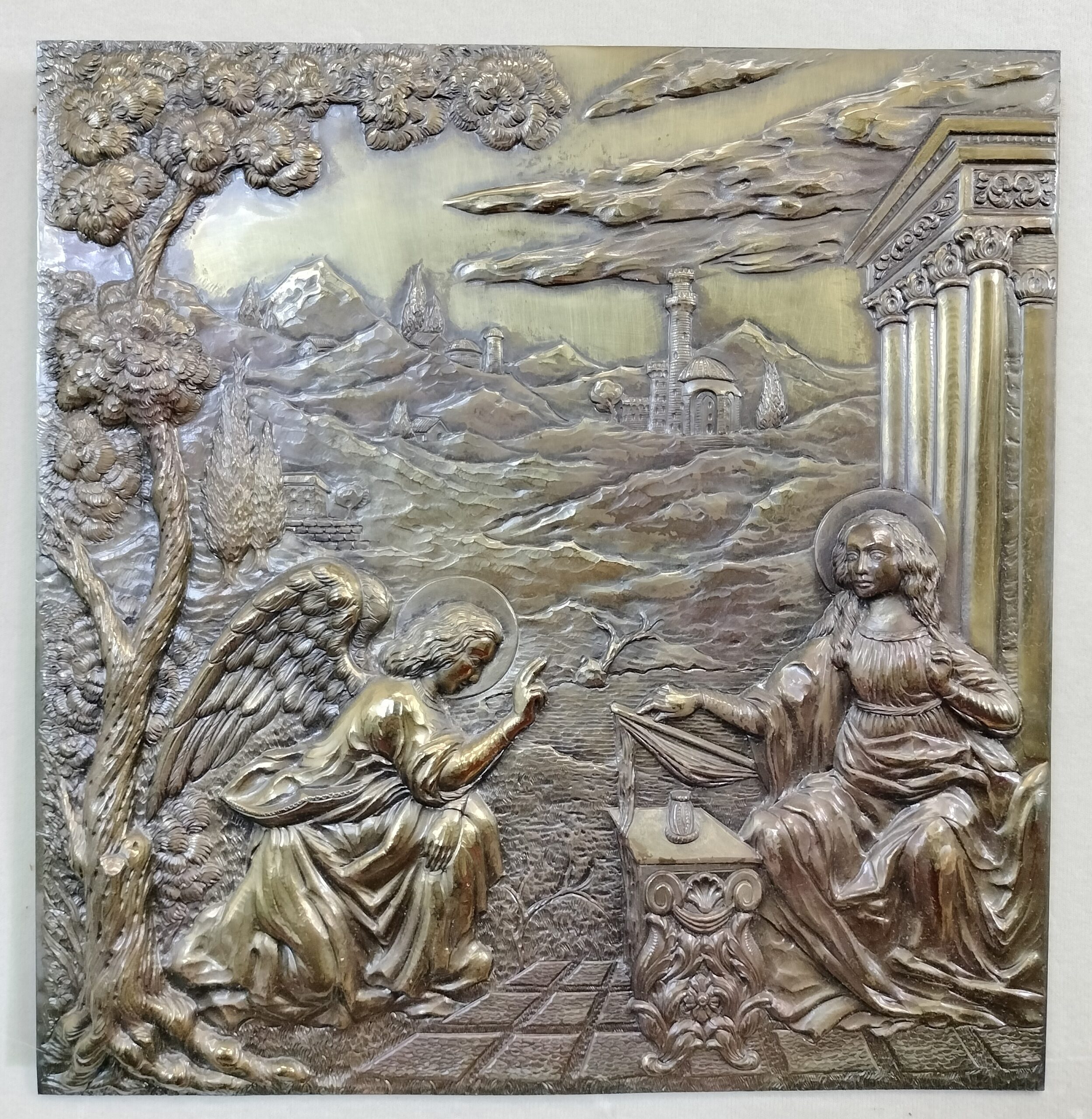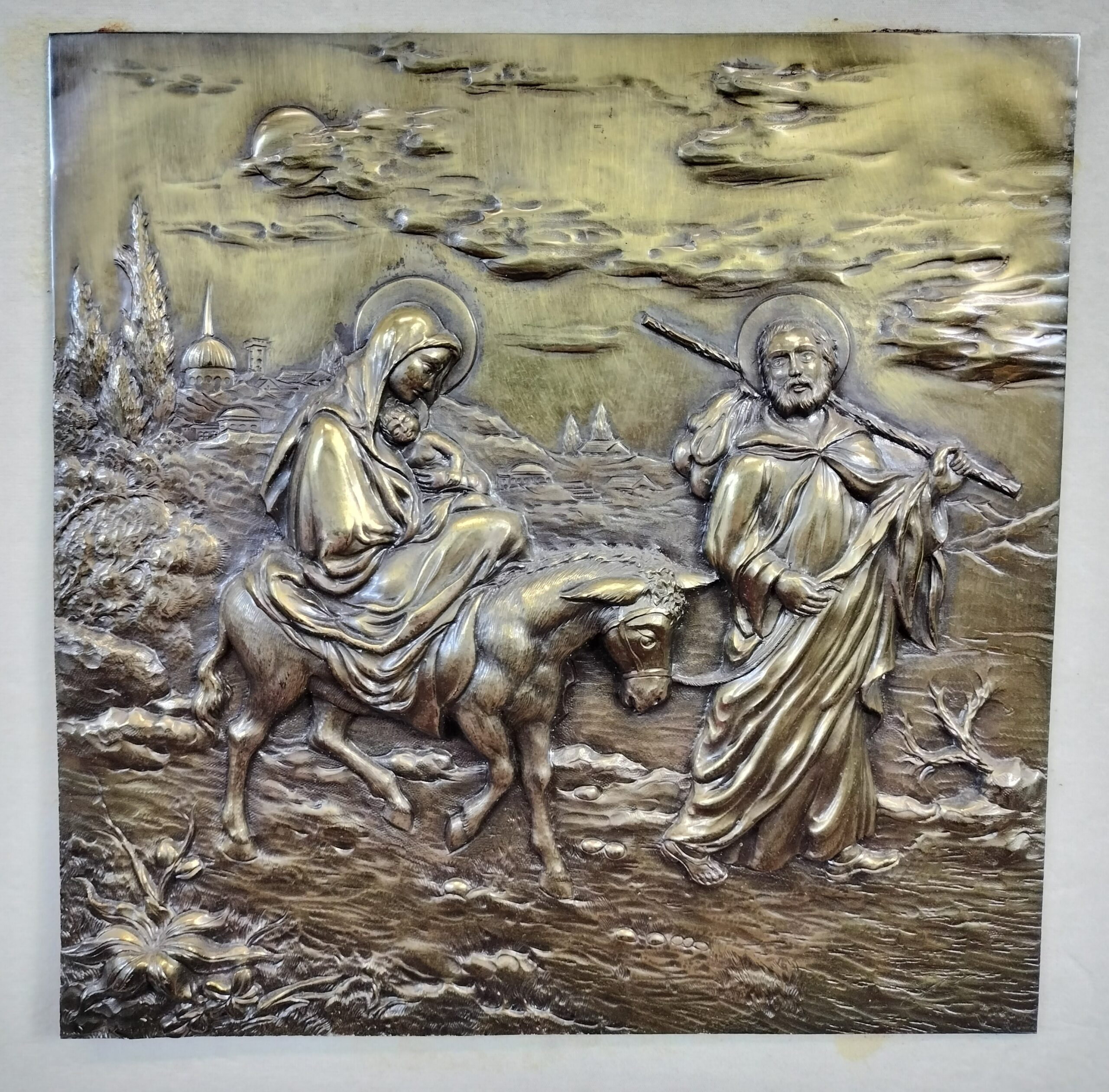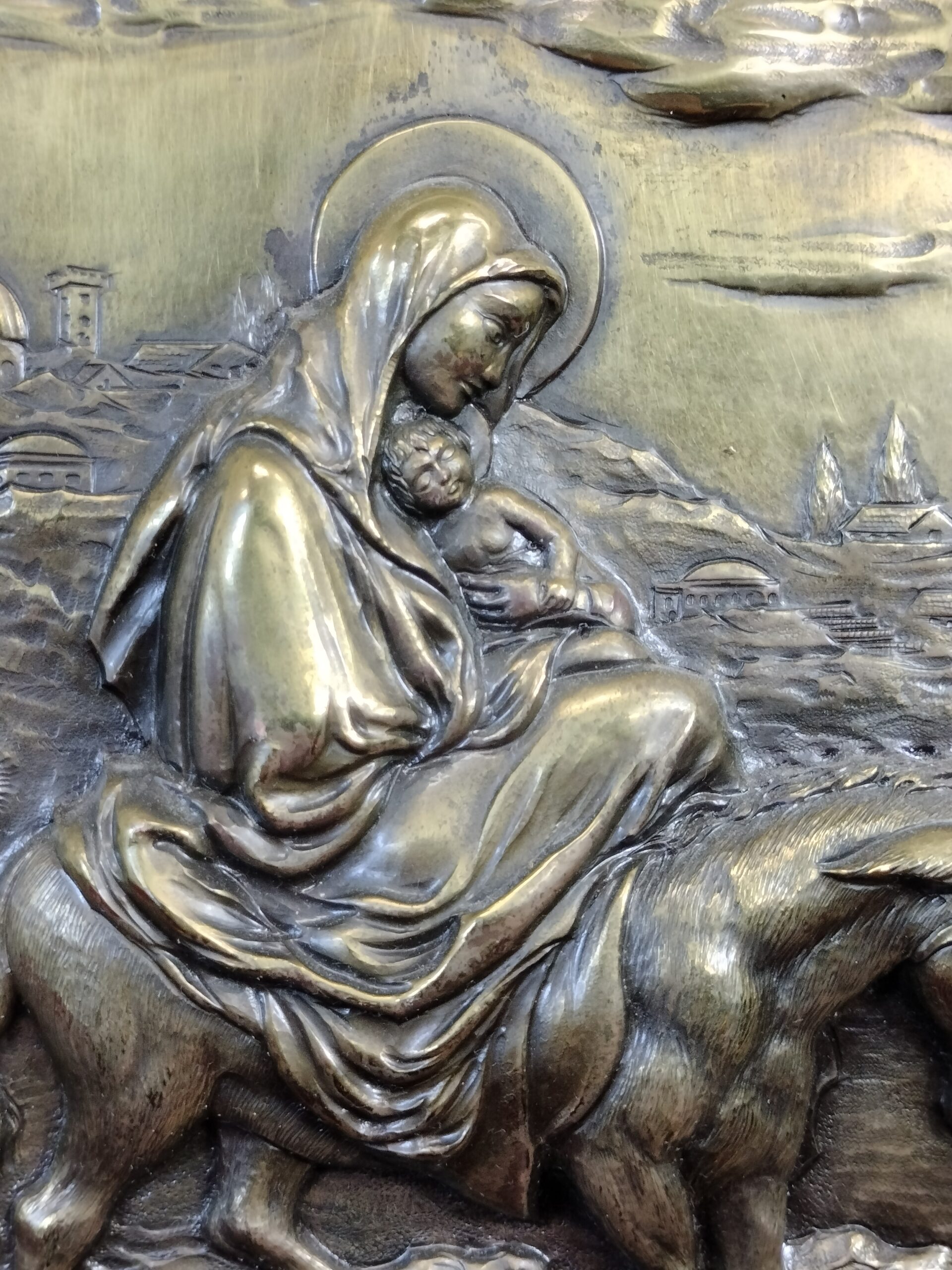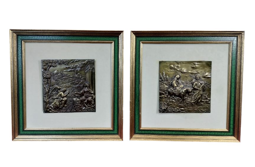LA ANUNCIACIÓN Y LA HUIDA A EGIPTO. BAJORRELIEVES NEORENACENTISTAS EN COBRE. EUROPA. SIGLO XIX.