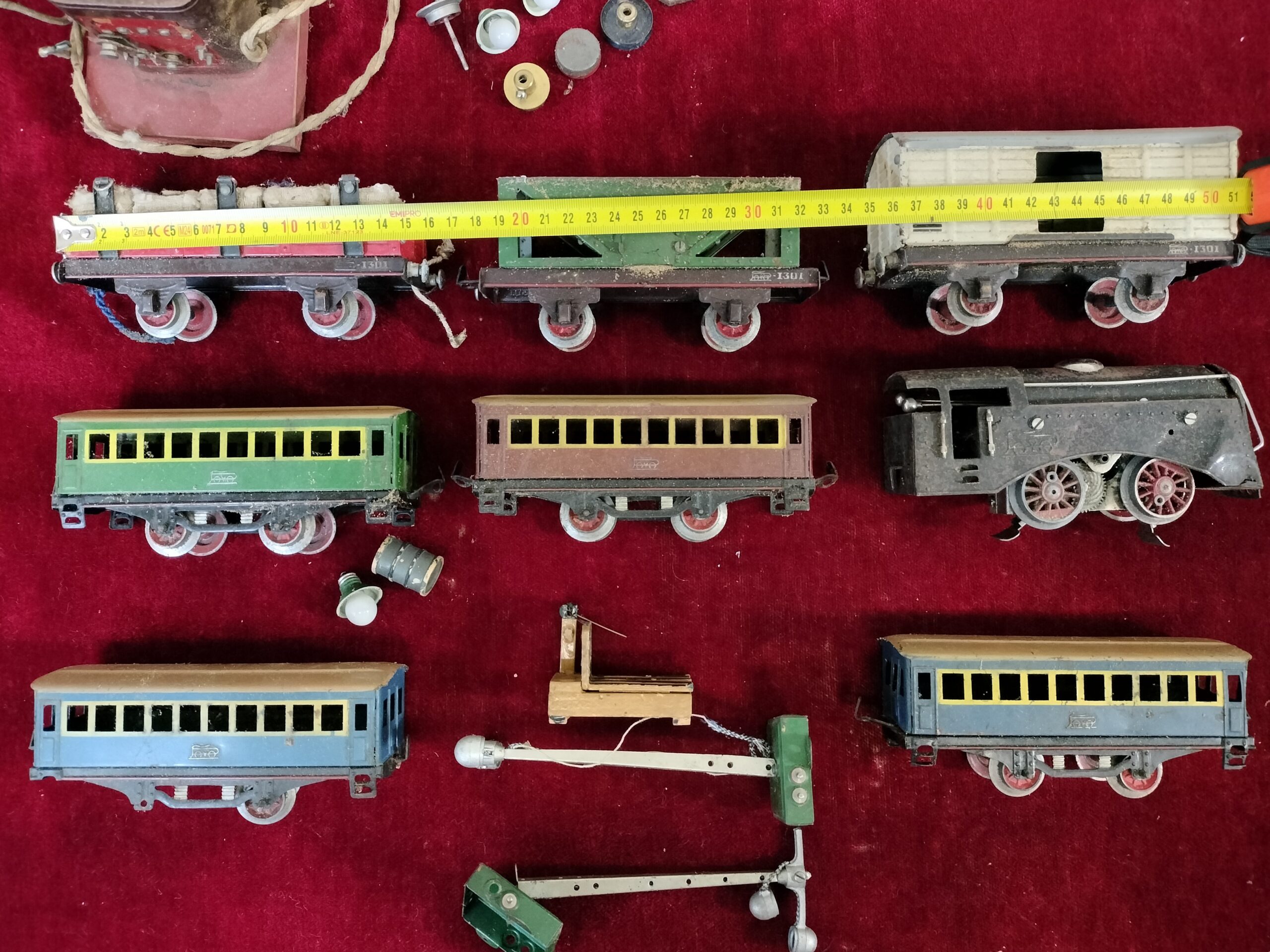 VER IMÁGENES PARA COMPROBAR EL ESTADO REAL.  LAS IMÁGENES FORMAN PARTE DE LA DESCRIPCIÓN.  LOS PRECIOS DE EXPEDICIÓN SON ORIENTATIVOS.  CONTACTE CON NOSOTROS PARA CALCULARLOS SEGÚN SU CASO.  LOTE DE TRENES Y VAGONES PAYÁ.  ESPAÑA, CIRCA 1950 – 1960.  INCLUYE SIETE VAGONES.  UNA LOCOMOTORA.  TRES VÍAS RECTAS.  UNA INTERSECCIÓN.  UN TRANSFORMADOR. DIEZ VÍAS CURVAS.  ACCESORIOS SUELTOS.  CAJA.  DESCONOCEMOS SI FUNCIONA CORRECTAMENTE. SE RECOMIENDA UNA RESTAURACIÓN DEL SISTEMA ELÉCTRICO.  NOTABLES RESTOS DE SUCIEDAD, EROSIONES Y DESGASTES DEBIDO AL USO. UNO DE LOS VAGONES CARECE DE DOS RUEDAS. ACCESORIOS DESPRENDIDOS. VER IMÁGENES.  MEDIDAS EN LAS IMÁGENES VAGÓN APROX 15 CM.