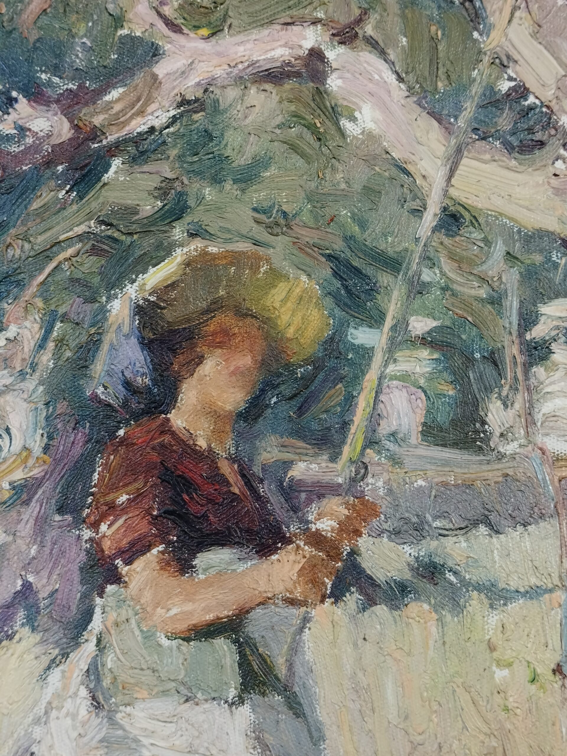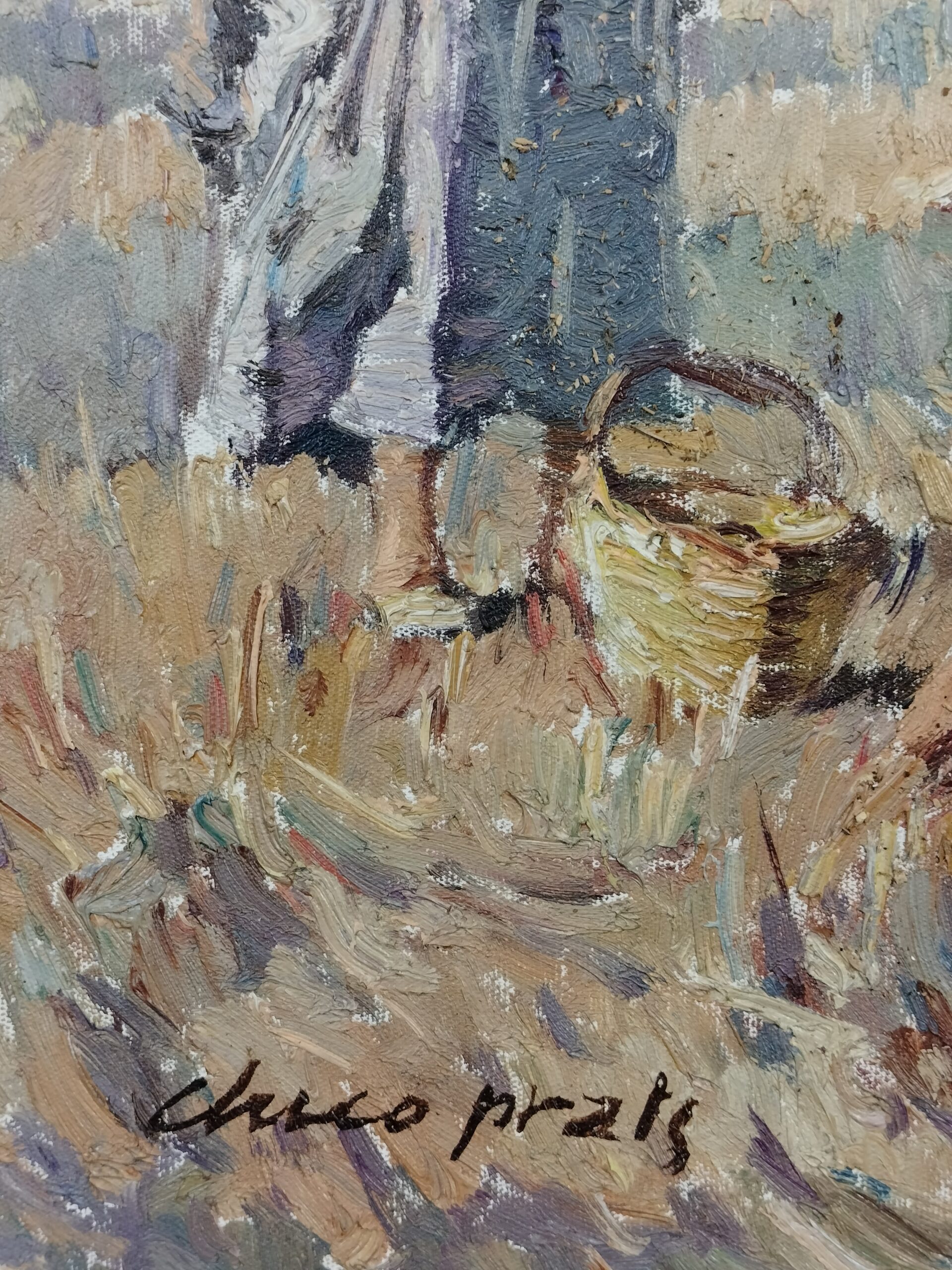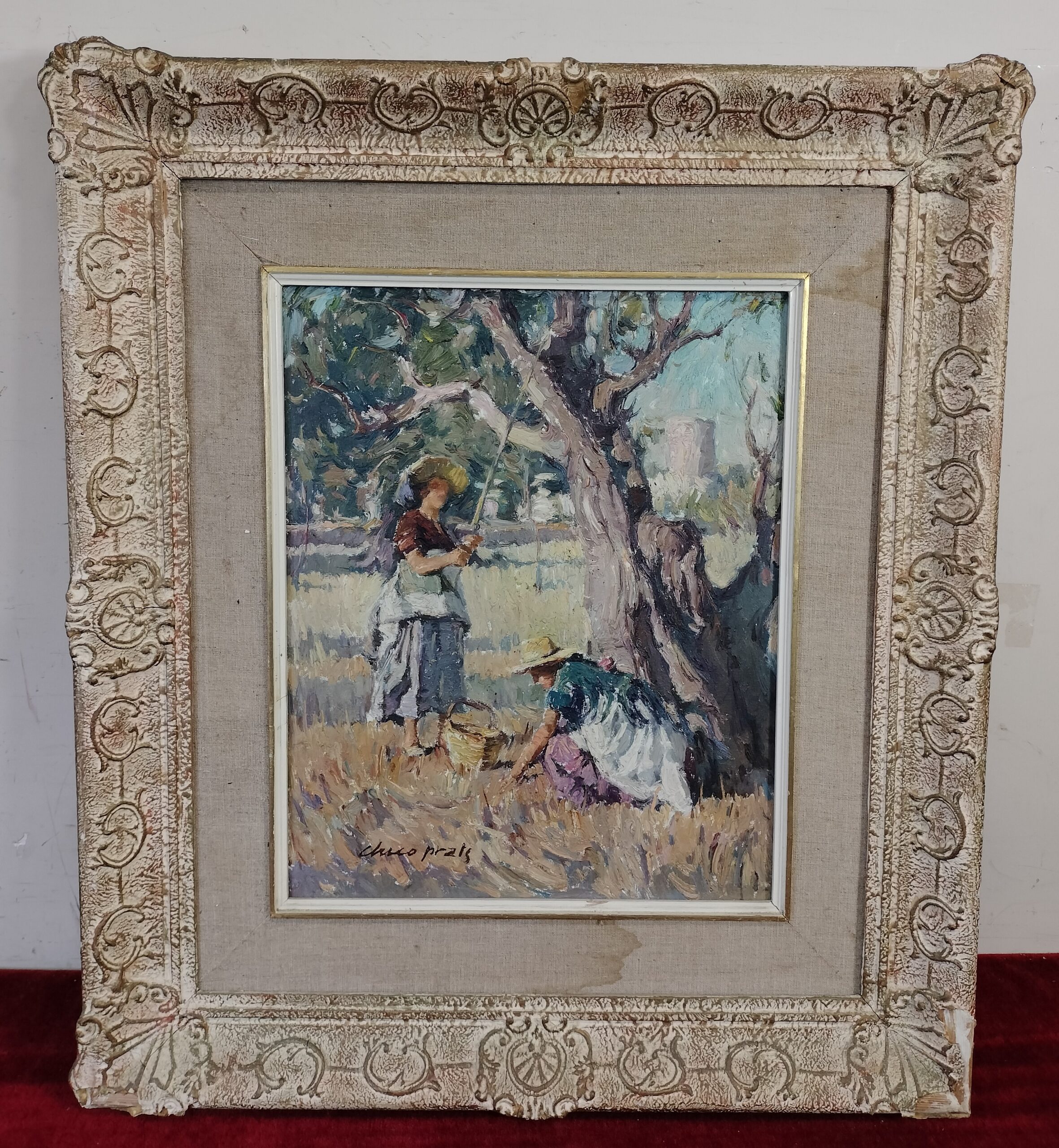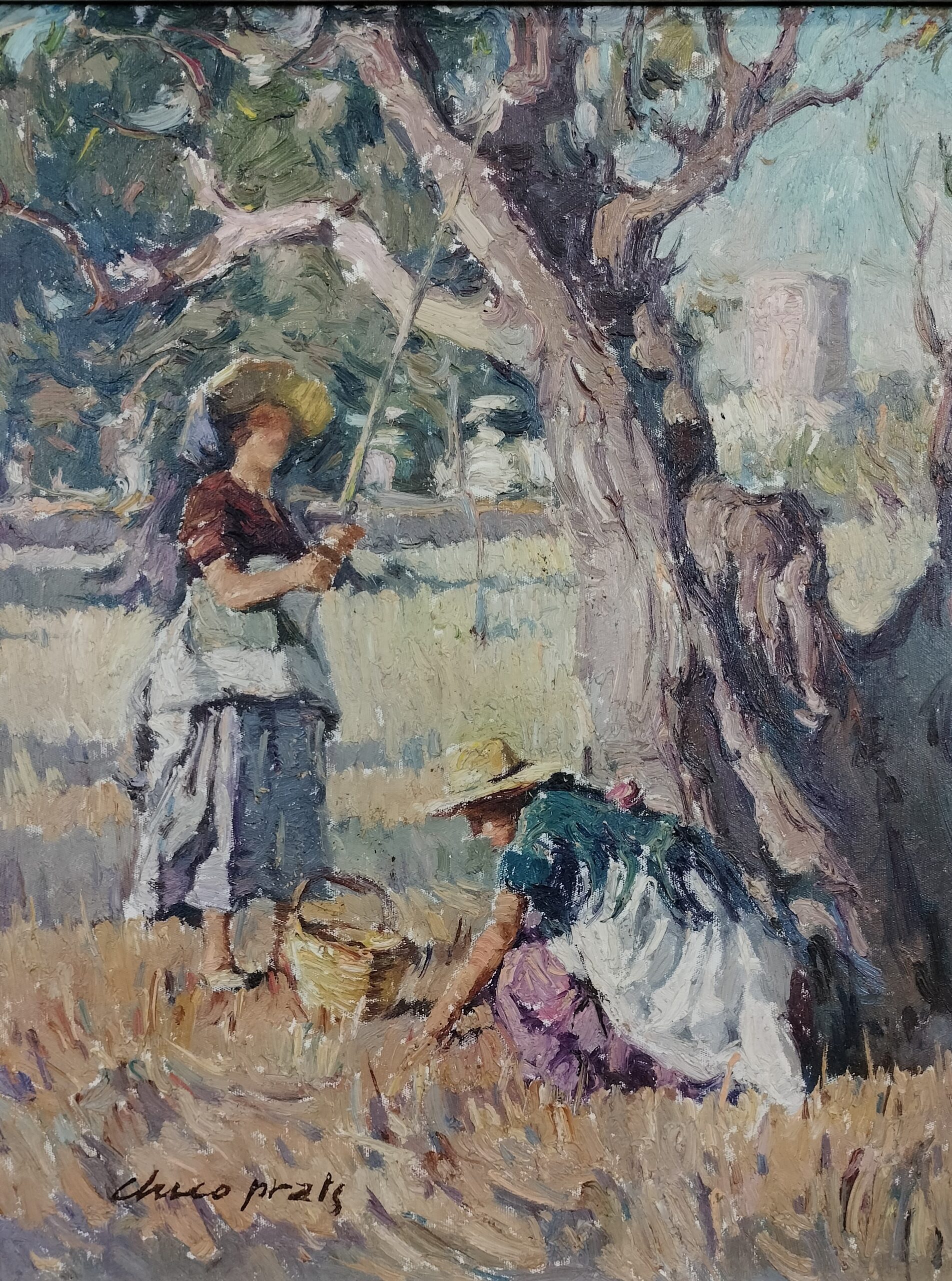 CHICO PRATS. RECOGIDA DE LA ACEITUNA. ÓLEO SOBRE LIENZO. SIGLO XX.