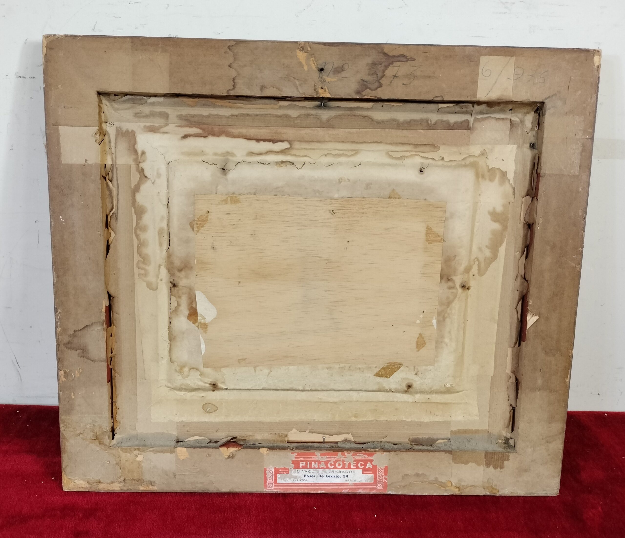 VER IMÁGENES PARA COMPROBAR EL ESTADO REAL.  LAS IMÁGENES FORMAN PARTE DE LA DESCRIPCIÓN.  MARINA, BARCOS DE PESCA EN LA BAHÍA.  FIRMADO EN LA ESQUINA INFERIOR DERECHA, ILEGIBLE.  ÓLEO SOBRE TABLA.  MARCO DE MADERA DORADA, CON LIGERAS PÉRDIDAS DE PÁTINA. BUEN ESTADO GENERAL, VER IMÁGENES.  MEDIDAS APROXIMADAS:  MARCO: 47,2 X 41 X 4 CM PINTURA: 25,4 X 20 CM.