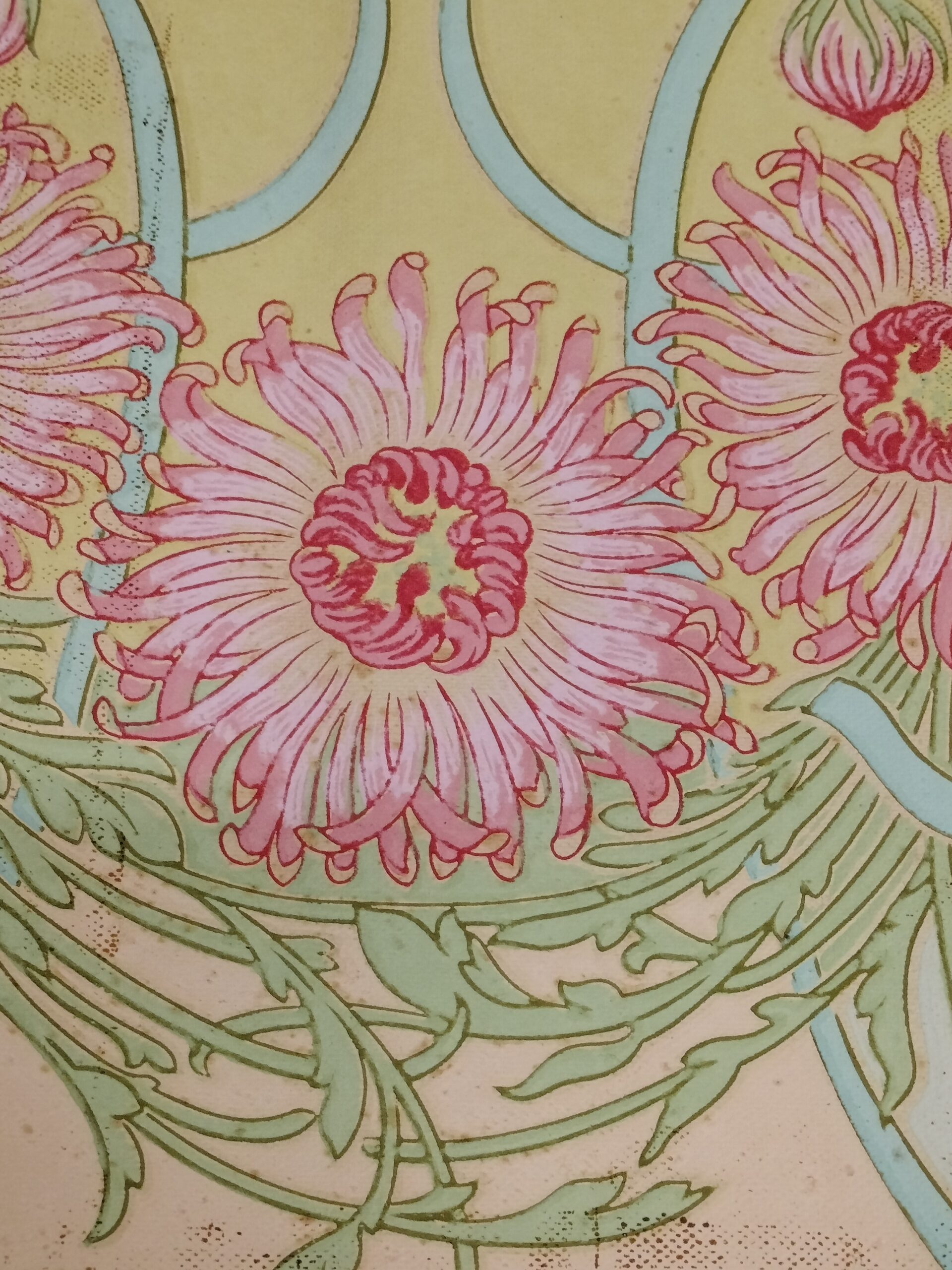 FRAGMENTOS DE PAPEL PINTADO DECORATIVO. ESTILO ART NOUVEAU. LITOGRAFÍA SOBRE PAPEL. ESPAÑA. XIX-XX