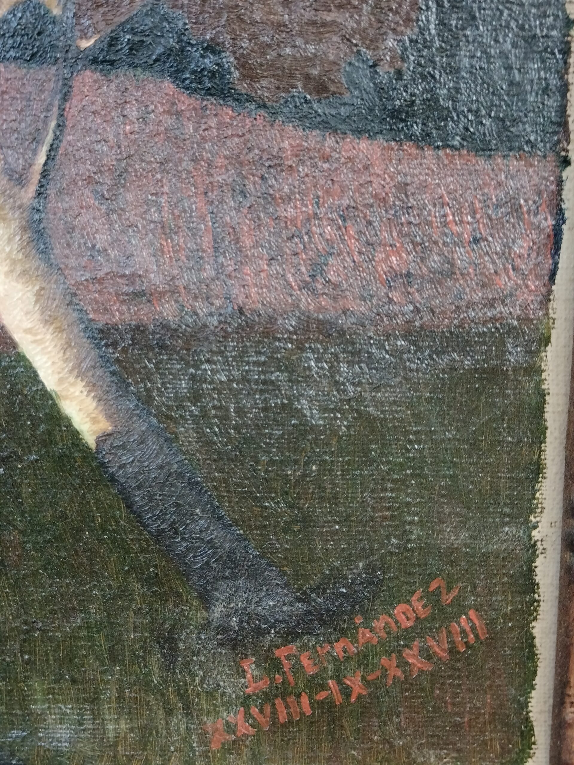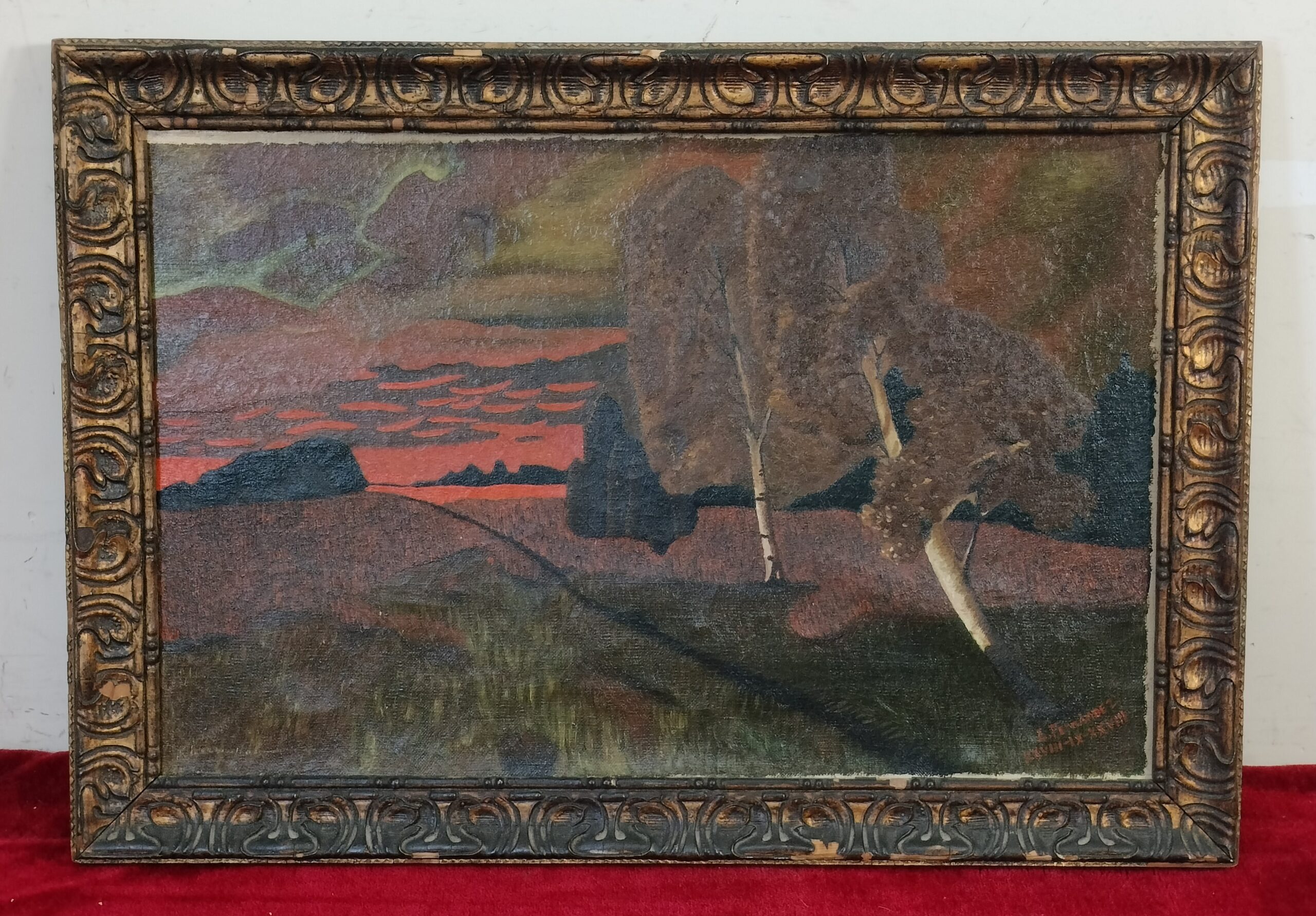 VER IMÁGENES PARA COMPROBAR EL ESTADO REAL. LAS IMÁGENES FORMAN PARTE DE LA DESCRIPCIÓN. PAISAJE EN EL AMANECER. FIRMADO Y FECHADO EN LA ESQUINA INFERIOR DERECHA, EN ROJO: L. FERNÁNDEZ. ÓLEO SOBRE LIENZO. MARCO EN MADERA POLICROMADA, CON IMPORTANTES DESPORTILLAMIENTOS. SIN VIDRIO PROTECTOR. PRECISA REFUERZO EN EL MARCO. BUEN ESTADO GENERAL, MUY LIGEROS RESTOS DE ENVEJECIMIENTO DEBIDO AL TIEMPO. VER IMÁGENES. MEDIDAS APROXIMADAS: MARCO: 55 X 28,5 X 2,5 CM PINTURA: 47 X 30,5 CM