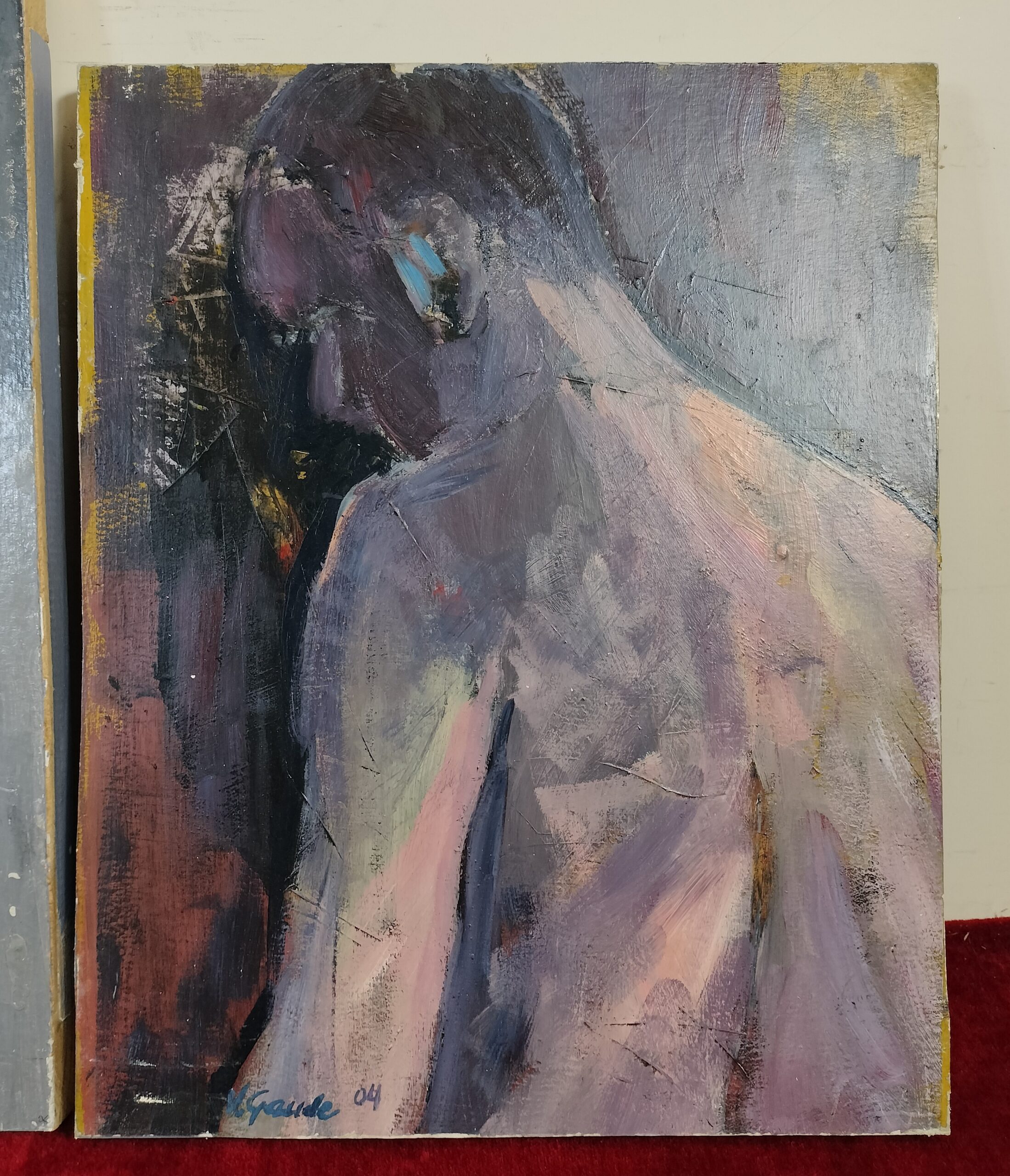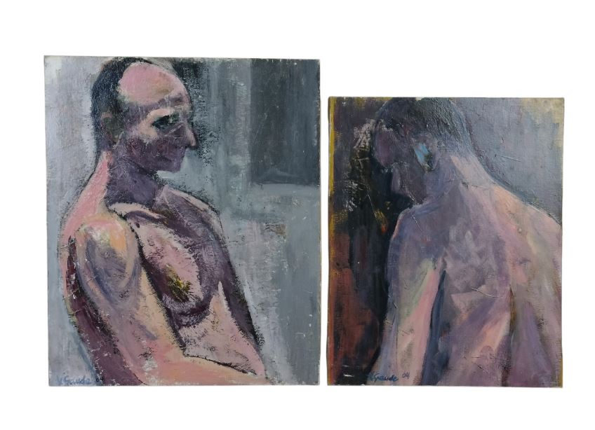 VER IMÁGENES PARA COMPROBAR EL ESTADO REAL. LAS IMÁGENES FORMAN PARTE DE LA DESCRIPCIÓN. FIGURAS MACULINAS. FIRMADO V. GAUDE. ACRÍLICO SOBRE TABLA. SIN ENMARCAR. BUEN ESTADO GENERAL, LIGEROS DESGASTES DEBIDO AL TIEMPO. MEDIDAS: MAYOR: 38,1 X 46,2 X 2,5 CM. PEQUEÑO: 33 X 41 X 2,5 CM.