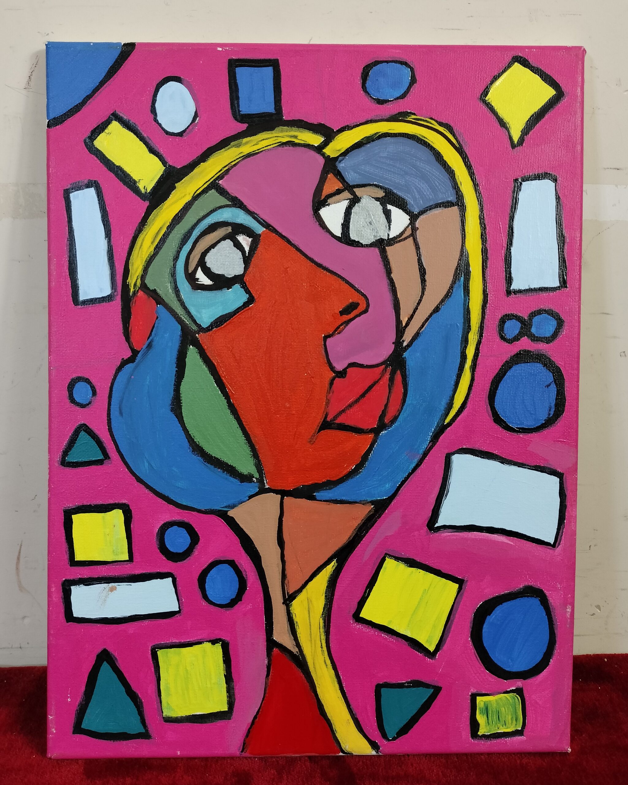 VER IMÁGENES PARA COMPROBAR EL ESTADO REAL.  LAS IMÁGENES FORMAN PARTE DE LA DESCRIPCIÓN.  ROSTRO CUBISTA.  FIRMADO EN LA PARTE POSTERIOR: ALICE.  ACRÍLICO SOBRE LIENZO, SIN ENMARCAR.  BUEN ESTADO GENERAL, LIGEROS DESGASTES EN LOS BORDES.  MEDIDAS APROXIMADAS:  29,8 X 40 CM.