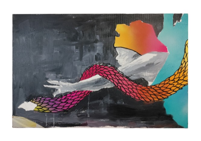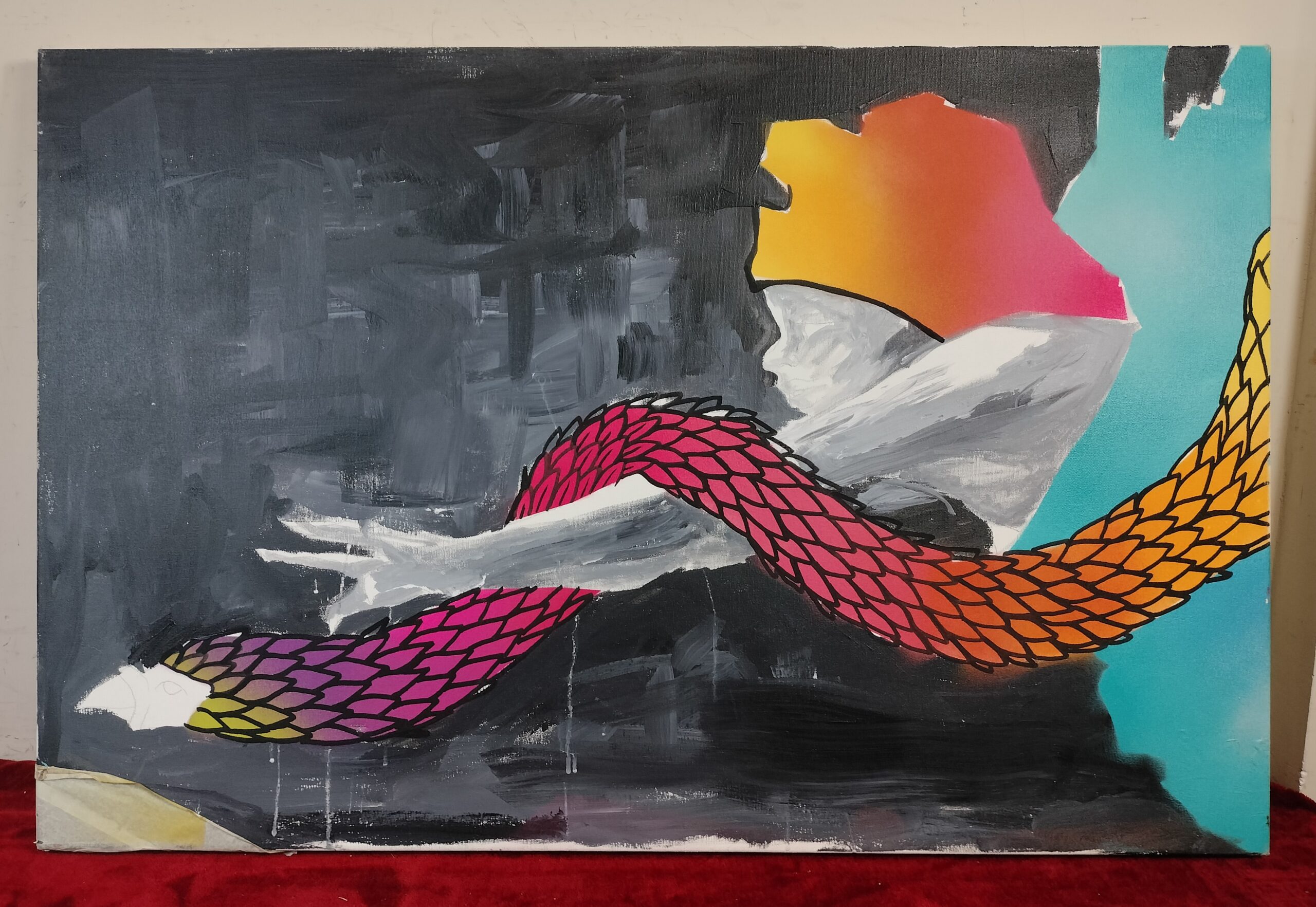 VER IMÁGENES PARA COMPROBAR EL ESTADO REAL. LAS IMÁGENES FORMAN PARTE DE LA DESCRIPCIÓN. COMPOSICIÓN DE ESTILO CONTEMPORÁNEO – LA INVOCACIÓN DEL DRAGÓN. TÉCNICA MIXTA SOBRE LIENZO. SE TRATA DE UNA OBRA INACABADA, CON ESPACIOS SIN PINTURA Y TRAZOS DEL ESBOZO PRIMITIVO. SIN ENMARCAR. SIN FIRMA DE AUTOR. PRESENTA MANCHAS DE GOTEO EN LA PARTE INFERIOR. LIGERAS EROSIONES EN LOS BORDES. EMPAPELADO EN LA ESQUINA INFERIOR IZQUIERDA, CON DESGASTES. MEDIDAS APROXIMADAS: 60 X 92,5