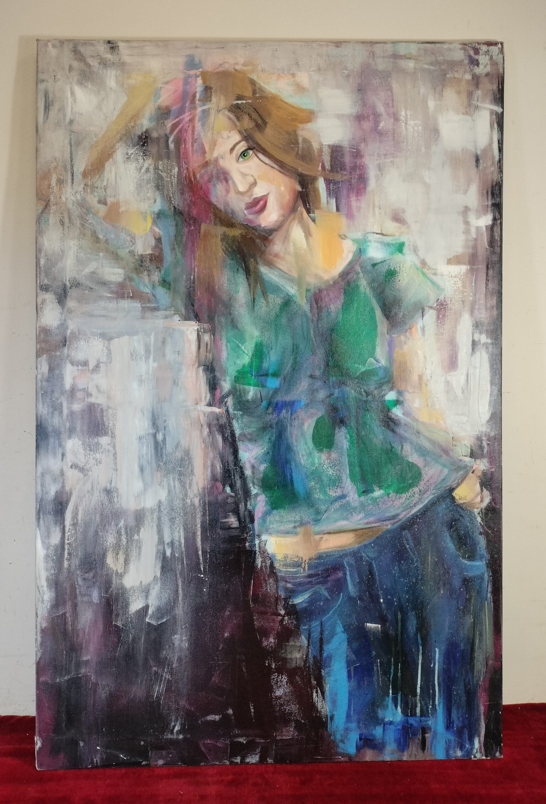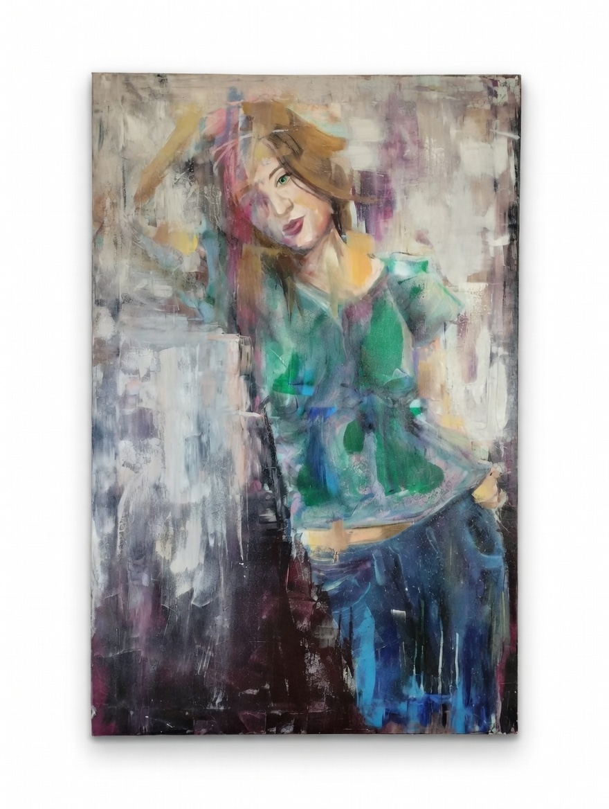 VER IMÁGENES PARA COMPROBAR EL ESTADO REAL. LAS IMÁGENES FORMAN PARTE DE LA DESCRIPCIÓN. RETRATO DE MUJER CON TEJANOS. TÉCNICA MIXTA SOBRE LIENZO. FIRMADA EN LA PARTE POSTERIOR DEL LIENZO: KIM CHIMADIA (?). BARCELONA, 2017. SIN ENMARCAR. BUEN ESTADO GENERAL, LIGEROS RESTOS DE SUCIEDAD. VER IMÁGENES. MEDIDAS APROXIMADAS: 80,5 X 124,5 CM.