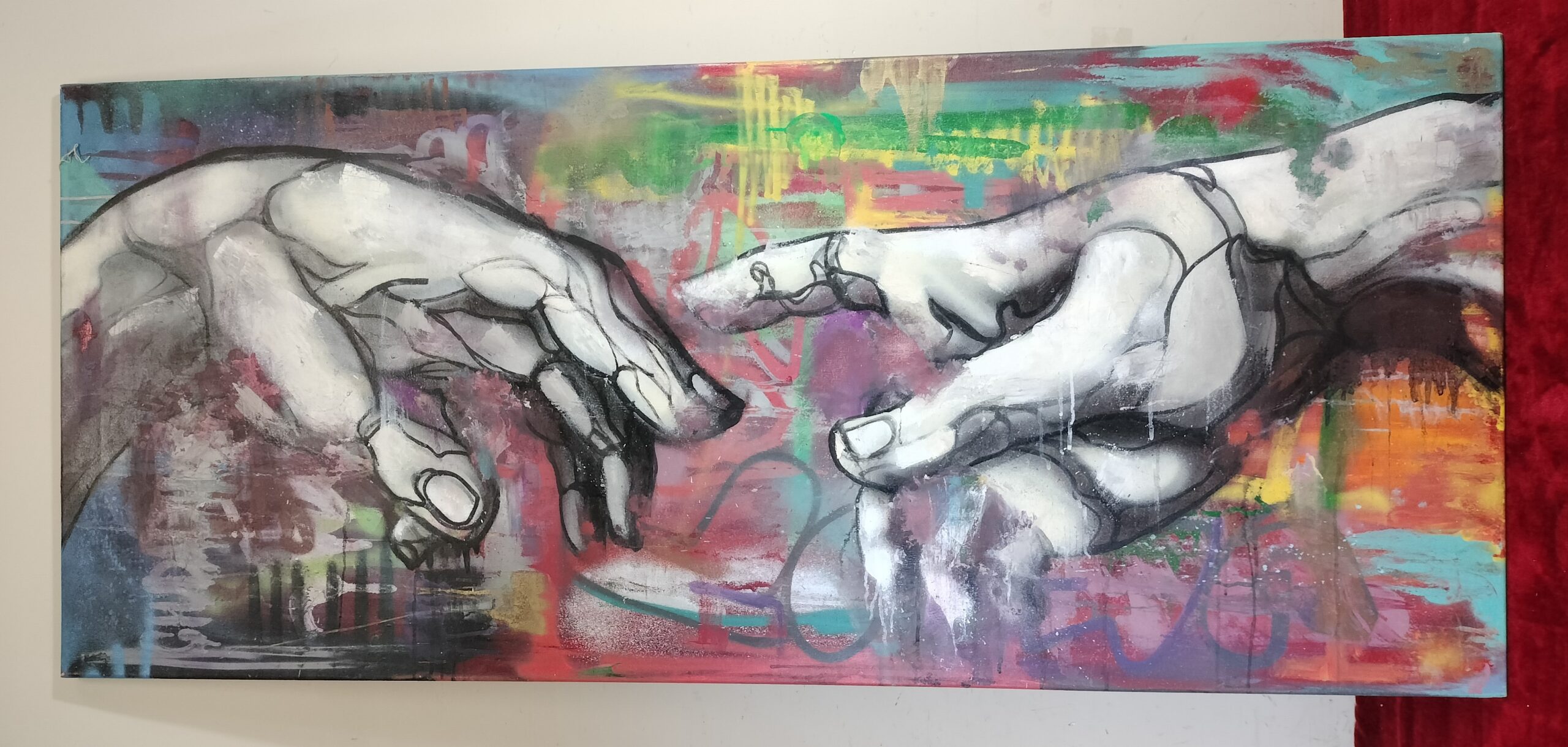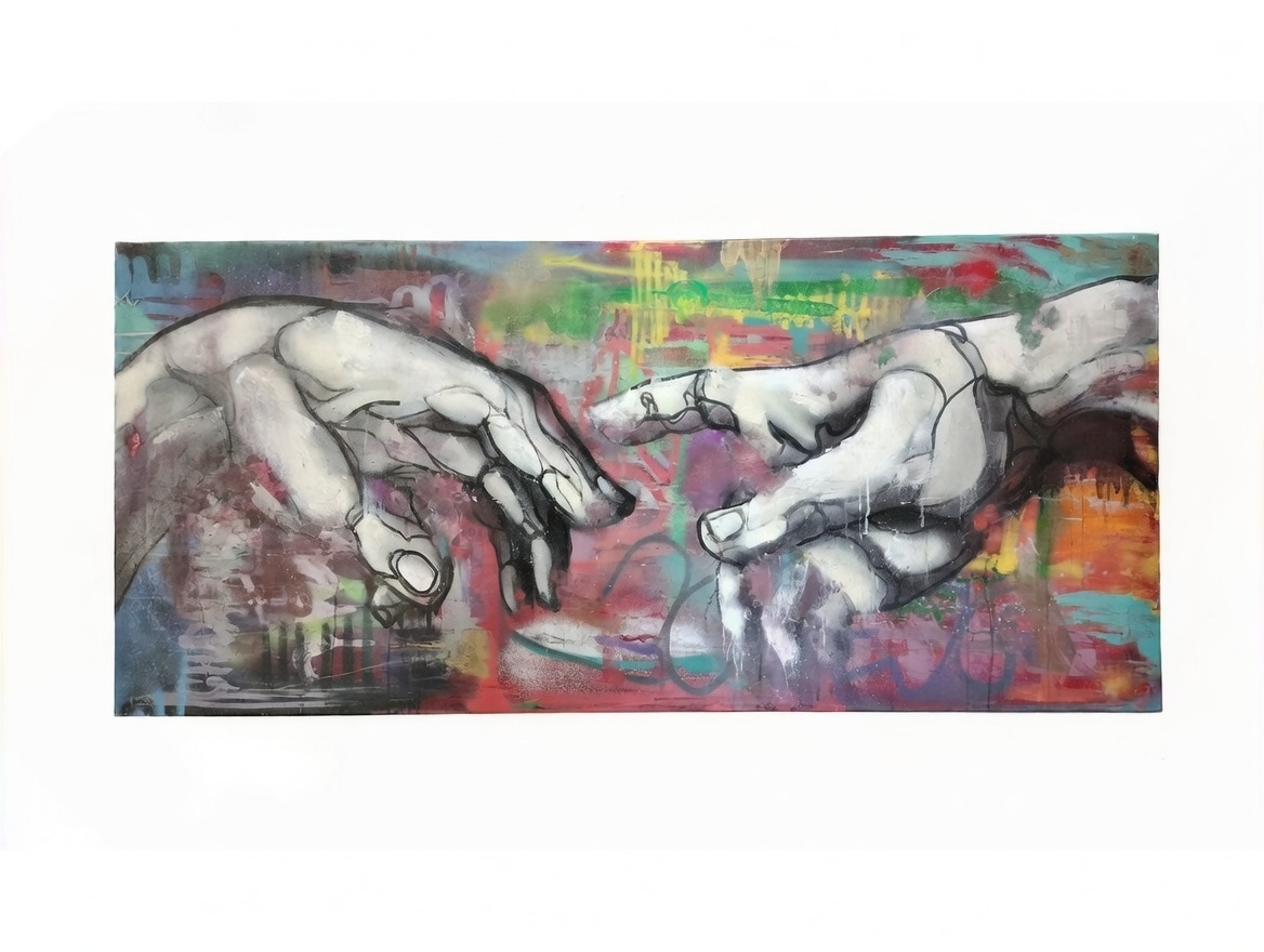 LA CREACIÓN DE ADÁN. ESTILO URBANO. TÉCNICA MIXTA SOBRE LIENZO. ESPAÑA. SIGLO XXI.