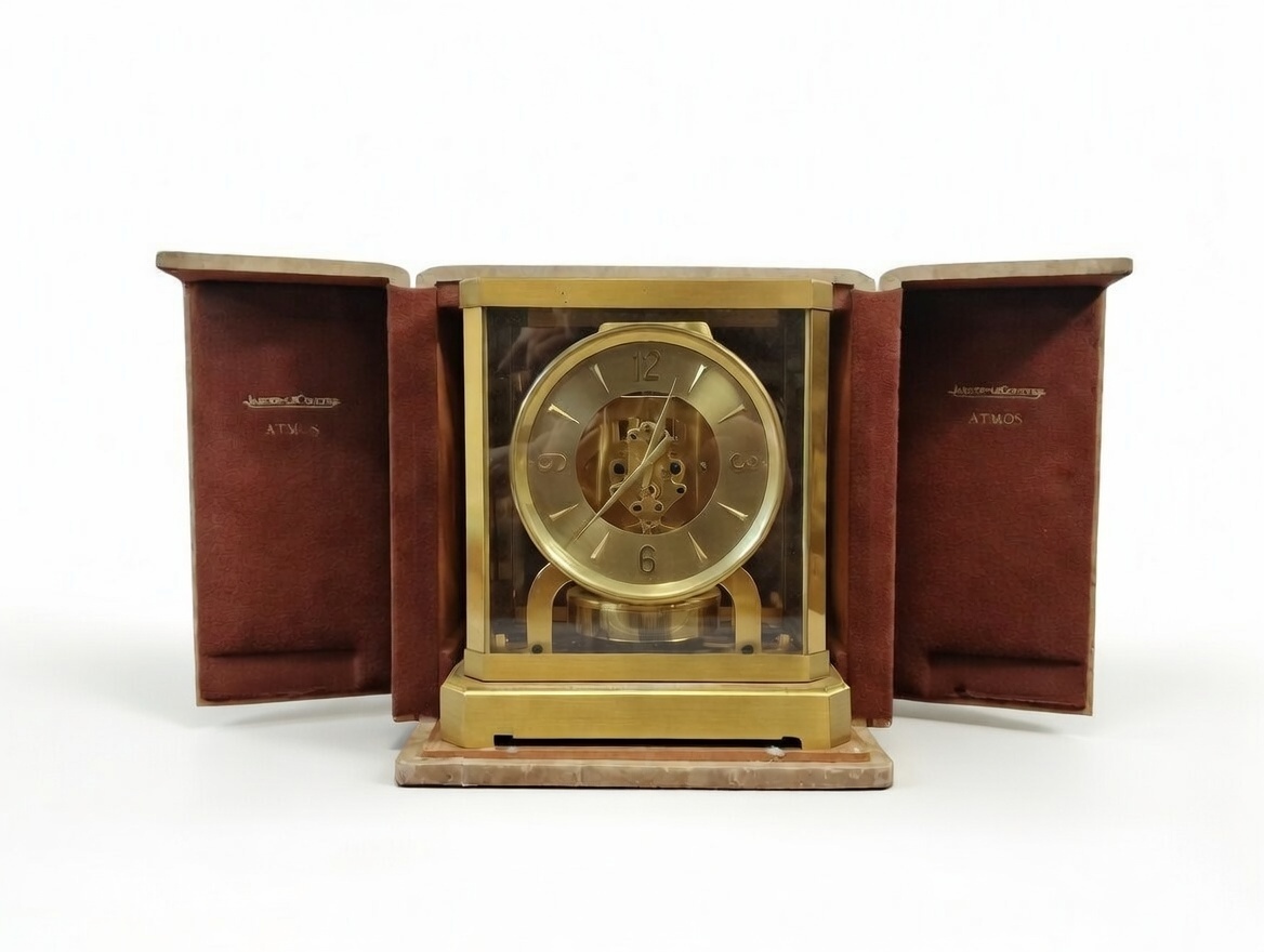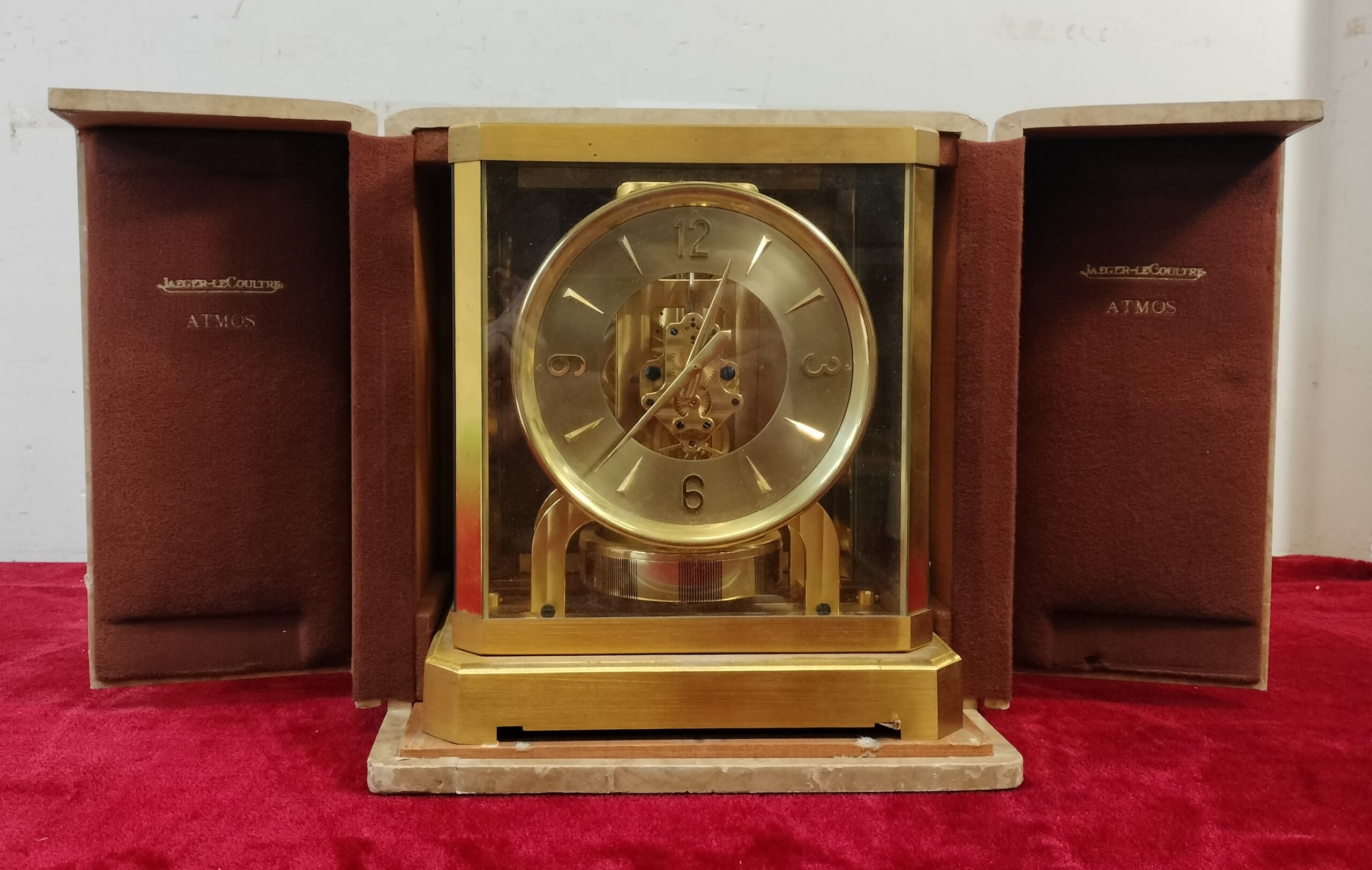 VER IMÁGENES PARA COMPROBAR EL ESTADO REAL. LAS IMÁGENES FORMAN PARTE DE LA DESCRIPCIÓN. RELOJ VINTAGE ATMOS. JAEGER-LECOULTRE. SUIZA. CIRCA 1950-1960. METAL DORADO Y VIDRIO. CON FUNDA ORIGINAL, CIERRE DELANTERO. CON LIGEROS DESGASTES. FUNCIONAMIENTO PERPETUO POR DIFERENCIAS DE PRESIÓN ATMOSFÉRICA. ACCIONADO MEDIANTE PALANCA INFERIOR. NUMERADO EN LA PARTE INFERIOR 19388. EL MECANISMO FUNCIONA. BUEN ESTADO GENERAL, VER IMÁGENES. MEDIDAS APROXIMADAS: CAJA: 24,5 X 18,5 X 25,6 CM. RELOJ: 21 ANCHO X 23 ALTO X 13 LARGO