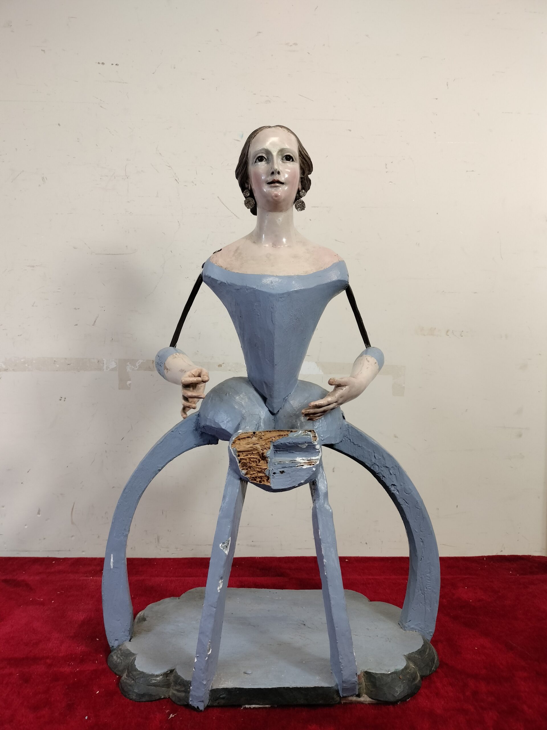 CORTESANA BARROCA O VIRGEN. CAP I POTA EN MADERA POLICROMADA Y ATUENDOS. NÁPOLES (?). SIGLO XVIII