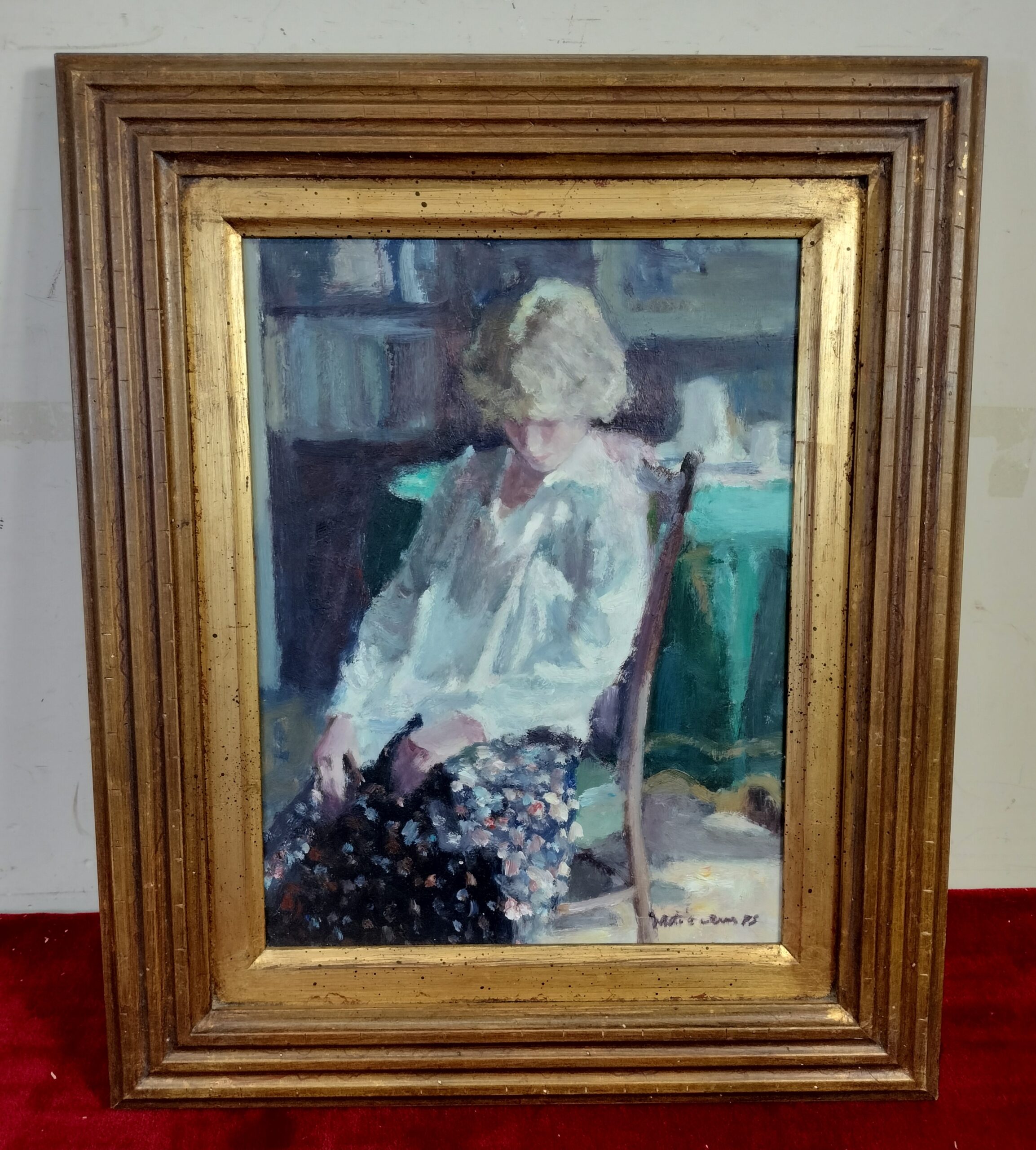 VER IMÁGENES PARA COMPROBAR EL ESTADO REAL. LAS IMÁGENES FORMAN PARTE DE LA DESCRIPCIÓN. LA SOBREMESA O JOVEN REPOSANDO. ÓLEO SOBRE TABLA. ESPAÑA. SIGLOS XIX-XX. MARCO EN MADERA DORADA, CON DESGASTES DEBIDOS AL USO. SIN VIDRIO PROTECTOR. FIRMA EN LA ESQUINA INFERIOR DERECHA, ILEGIBLE. ESTILO IMPRESIONISTA – MODERNISTA. BUEN ESTADO GENERAL, VER IMÁGENES. MEDIDAS APROXIMADAS: MARCO: 41 X 49,5 X 2 CM. PINTURA: 25,3 X 34 CM.