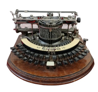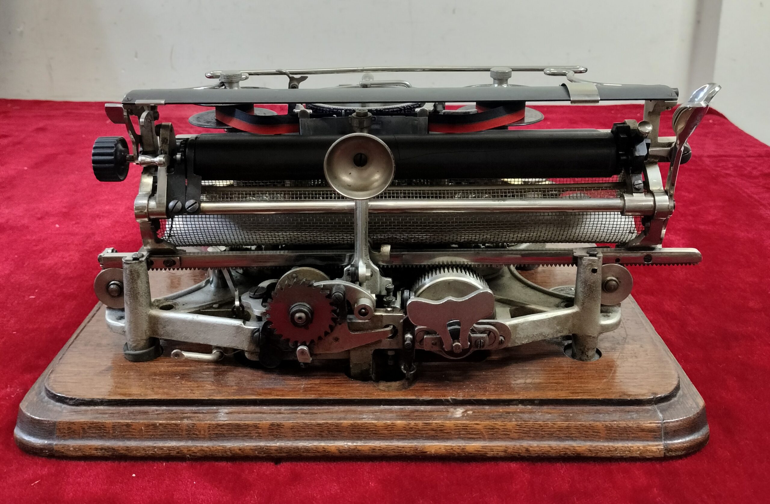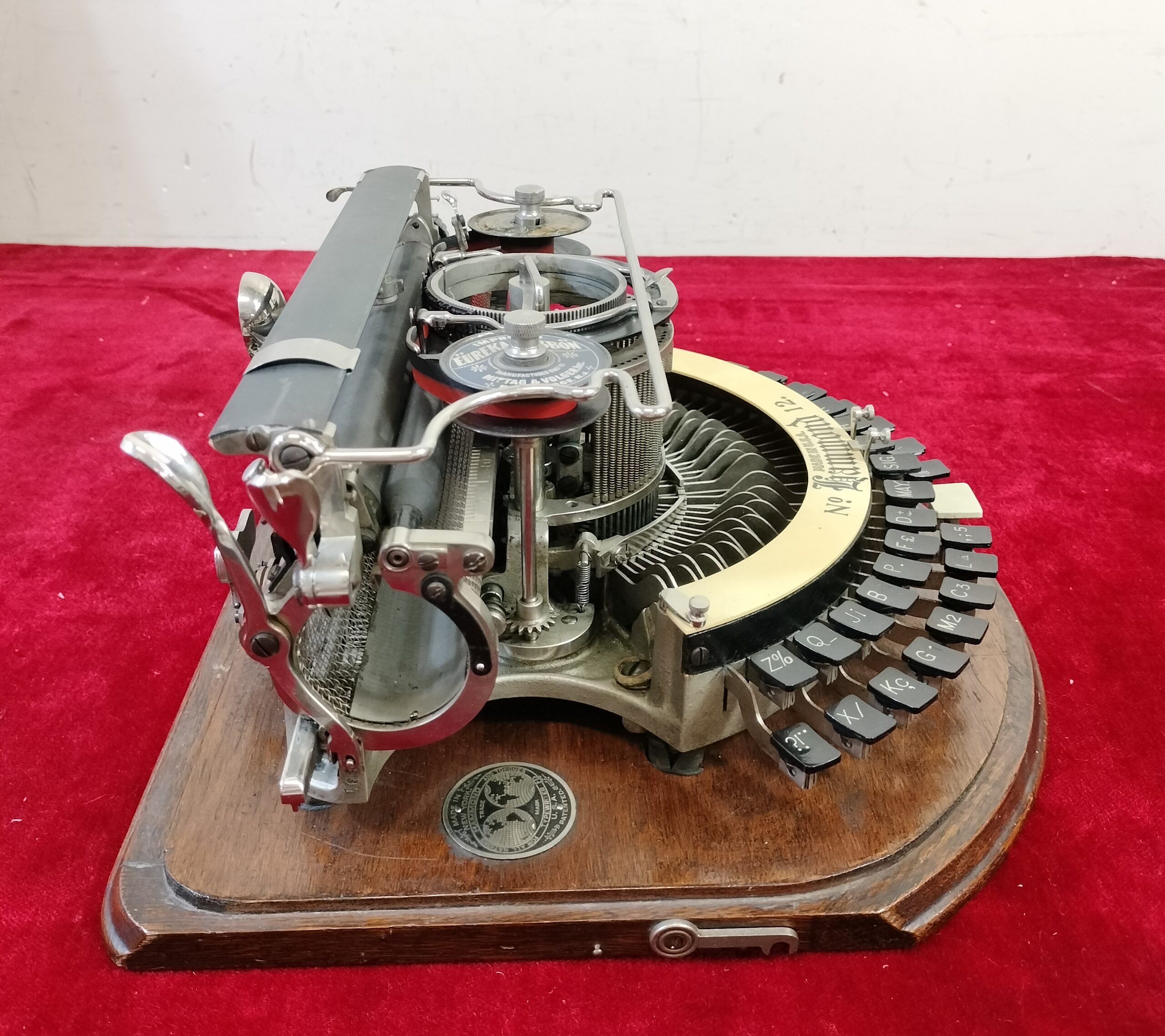 VER IMÁGENES PARA COMPROBAR EL ESTADO REAL. LAS IMÁGENES FORMAN PARTE DE LA DESCRIPCIÓN. ANTIGUA MÁQUINA DE ESCRIBIR HAMMOND NÚMERO 12. THE HAMMOND TYPEWRITER COMPANY, CIRCA 1905. TECLADO REDONDO, CON TODAS LAS TECLAS. BASE DE MADERA DE ROBLE MACIZA. CAJA DE MADERA ORIGINAL CON INSTRUCCIONES EN EL INTERIOR. PLACA SEMICIRCULAR DE METAL ESMALTADO SOBRE EL TECLADO, CON EL NOMBRE DEL MODELO. LETRAS Y SÍMBOLOS VISIBLES. FUNCIONA, SE RECOMIENDA UNA REVISIÓN. VER IMÁGENES.