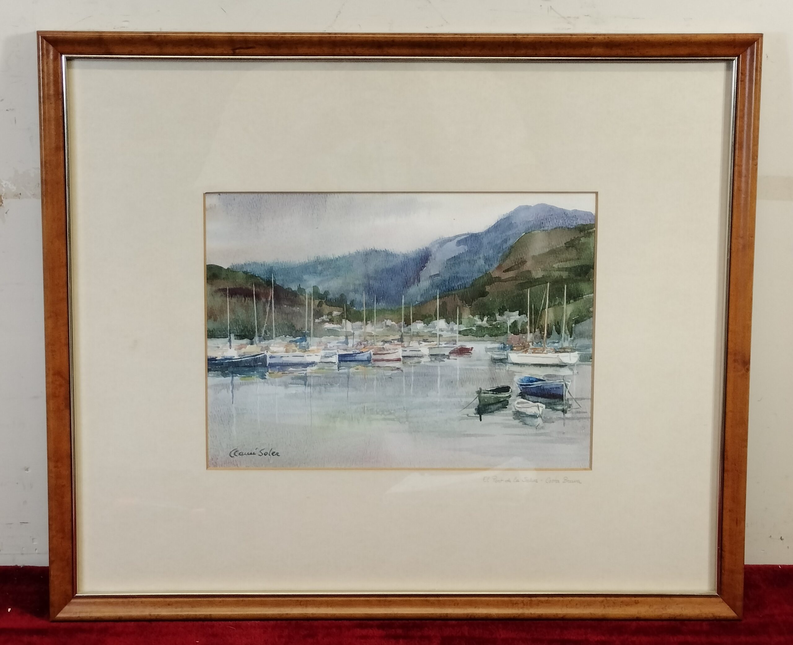 VER IMÁGENES PARA COMPROBAR EL ESTADO REAL. LAS IMÁGENES FORMAN PARTE DE LA DESCRIPCIÓN. MARINA, PAISAJE CON EMBARCACIONES. EL PORT DE LA SELVA, COSTA BRAVA. ACUARELA SOBRE PAPEL. FIRMADA EN LA ESQUINA INFERIOR IZQUIERDA. MARCO EN MADERA, CON VIDRIO PROTECTOR. LIGERAS SEÑALES DE USO. BUEN ESTADO GENERAL, VER IMÁGENES. MEDIDAS APROXIMADAS: MARCO: 51 X 43 X 2 CM ACUARELA: 28 X 20 CM NOTA HISTÓRICA: Concepció Camí i Soler (1927 – 1995) fue una pintora de Terrassa. De formación autodidacta y sobrina del pintor Ramon Camí i Esteve, del qual recibió orientaciones en materia de acuarela, la técnica más utilizada por la artista. Se dedicó principalmente al paisaje y el retrato.