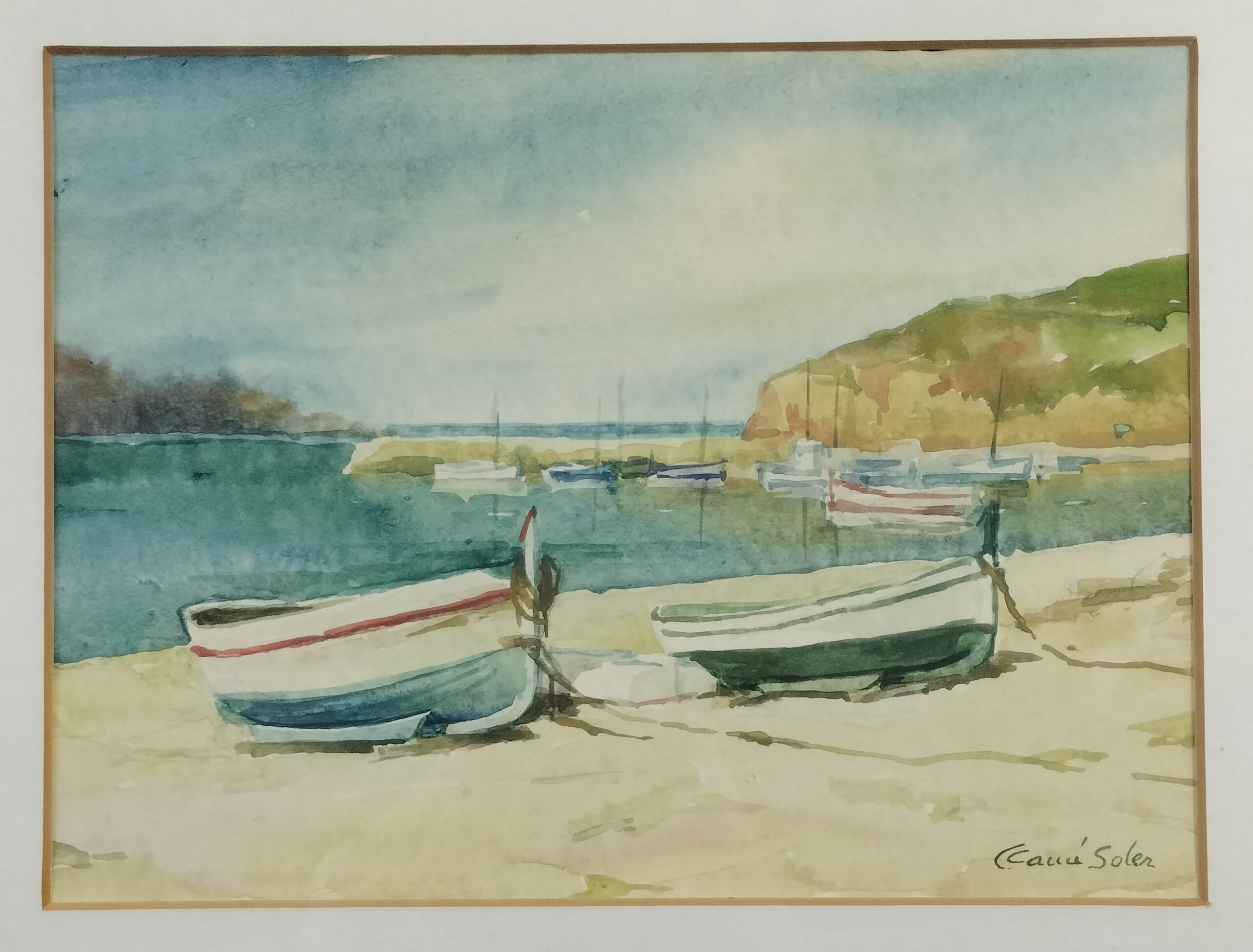 VER IMÁGENES PARA COMPROBAR EL ESTADO REAL. LAS IMÁGENES FORMAN PARTE DE LA DESCRIPCIÓN. MARINA, EMBARCACIONES VARADAS EN LA PLAYA. ACUARELA SOBRE PAPEL. FIRMADO EN LA ESQUINA INFERIOR DERECHA. MARCO EN MADERA, CON VIDRIO PROTECTOR. BUEN ESTADO GENERAL, VER IMÁGENES. MEDIDAS APROXIMADAS: MARCO: 46 X 40 X 2,5 CM. ACUARELA: 23,4 X 17,5 CM. NOTA HISTÓRICA: Concepció Camí i Soler (1927 – 1995) fue una pintora de Terrassa. De formación autodidacta y sobrina del pintor Ramon Camí i Esteve, del qual recibió orientaciones en materia de acuarela, la técnica más utilizada por la artista. Se dedicó principalmente al paisaje y el retrato.