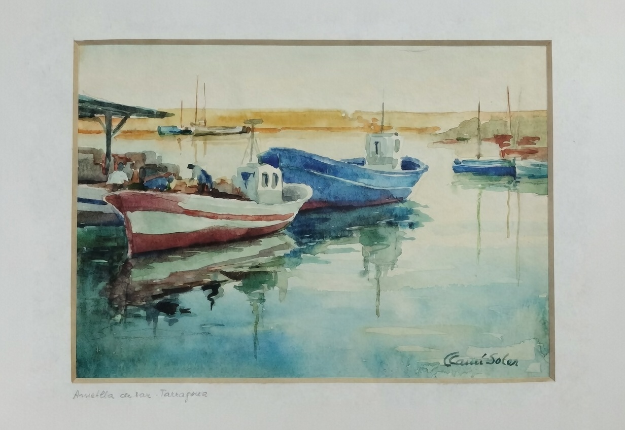 CONCEPCIÓN CAMÍ SOLER. MARINA. AMETLLA DE MAR, TARRAGONA. ACUARELA SOBRE PAPEL. ESPAÑA. XX