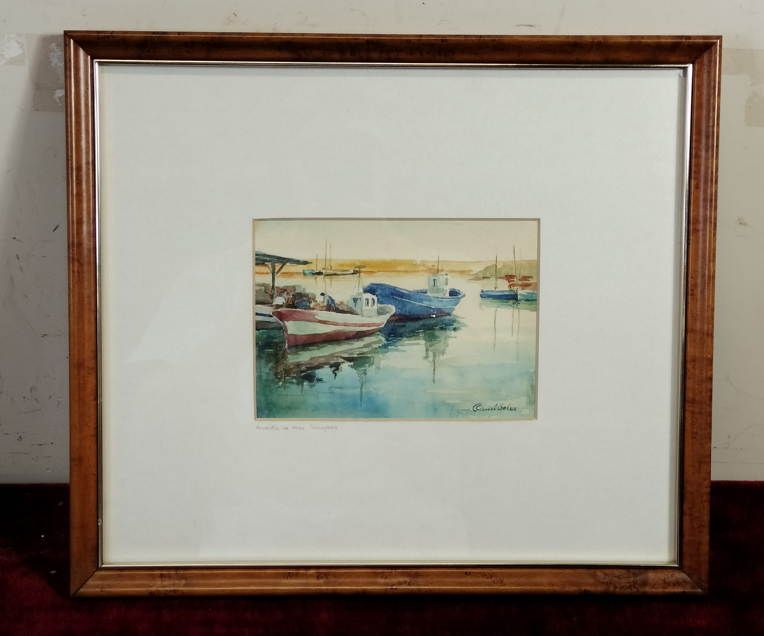 VER IMÁGENES PARA COMPROBAR EL ESTADO REAL. LAS IMÁGENES FORMAN PARTE DE LA DESCRIPCIÓN. MARINA. AMETLLA DE MAR, PAISAJE CON EMBARCACIONES. ACUARELA SOBRE PAPEL. MARCO DE MADERA, LIGERAS SEÑALES DE USO. VIDRIO PROTECTOR. FIRMA EN LA ESQUINA INFERIOR DERECHA. BUEN ESTADO GENERAL, VER IMÁGENES. MEDIDAS APROXIMADAS: MARCO: 39,2 X 34,5 X 2 CM. ACUARELA: 17 X 12,5 CM NOTA HISTÓRICA: Concepció Camí i Soler (1927 – 1995) fue una pintora de Terrassa. De formación autodidacta y sobrina del pintor Ramon Camí i Esteve, del qual recibió orientaciones en materia de acuarela, la técnica más utilizada por la artista. Se dedicó principalmente al paisaje y el retrato.