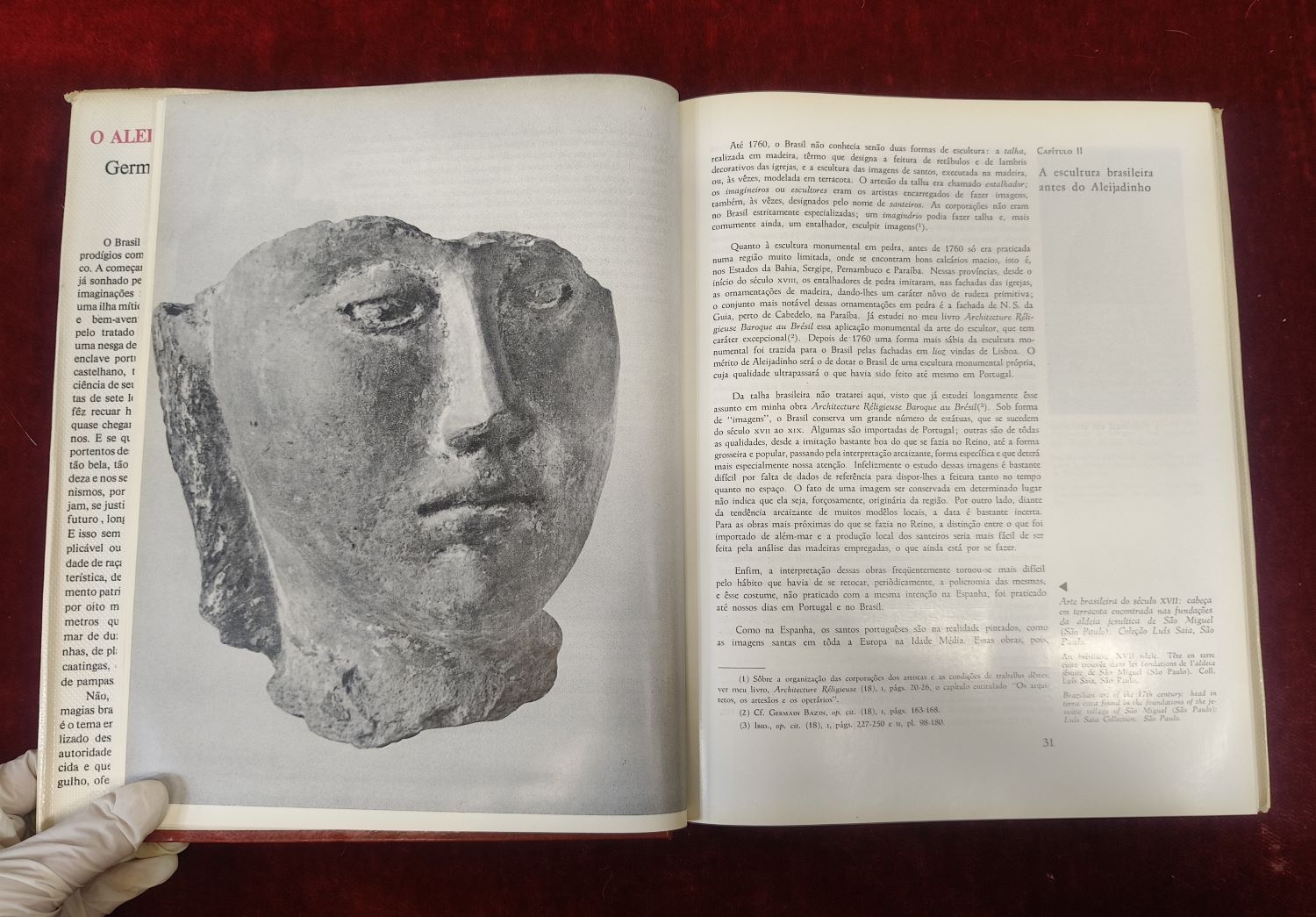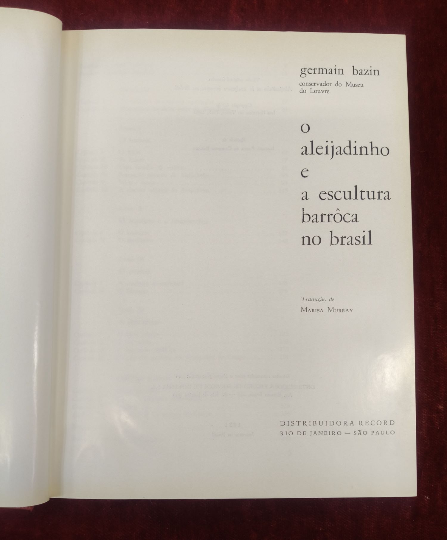 VER IMÁGENES PARA COMPROBAR EL ESTADO REAL.  LAS IMÁGENES FORMAN PARTE DE LA DESCRIPCIÓN. O ALEIJADINHO. GERMAN BAZIN. E A ESCULTURA BARROCA NO BRASIL.  ES UNA OBRA FUNDAMENTAL DEL HISTORIADOR DEL ARTE FRANCÉS GERMAIN BAZIN. PUBLICADA EN 1971 POR LA EDITORIAL DISTRIBUIDORA RECORD EN RÍO DE JANEIRO. LA PUBLICACIÓN DE 1971 FUE REALIZADA CON EL APOYO DEL IPHAN (INSTITUTO DEL PATRIMONIO HISTÓRICO Y ARTÍSTICO NACIONAL) LO QUE SUBRAYA SU VALOR INSTITUCIONAL Y ACADÉMICO PARA LA HISTORIA DEL ARTE EN BRASIL. LA EDICIÓN CUENTA CON 347 PÁGINAS E INCLUYE MÁS DE 260 ILUSTRACIONES EN BLANCO Y NEGRO Y 15 LÁMINAS A COLOR. IDIOMA PORTUGUES. EJEMPLAR EN BUEN ESTADO GENERAL.