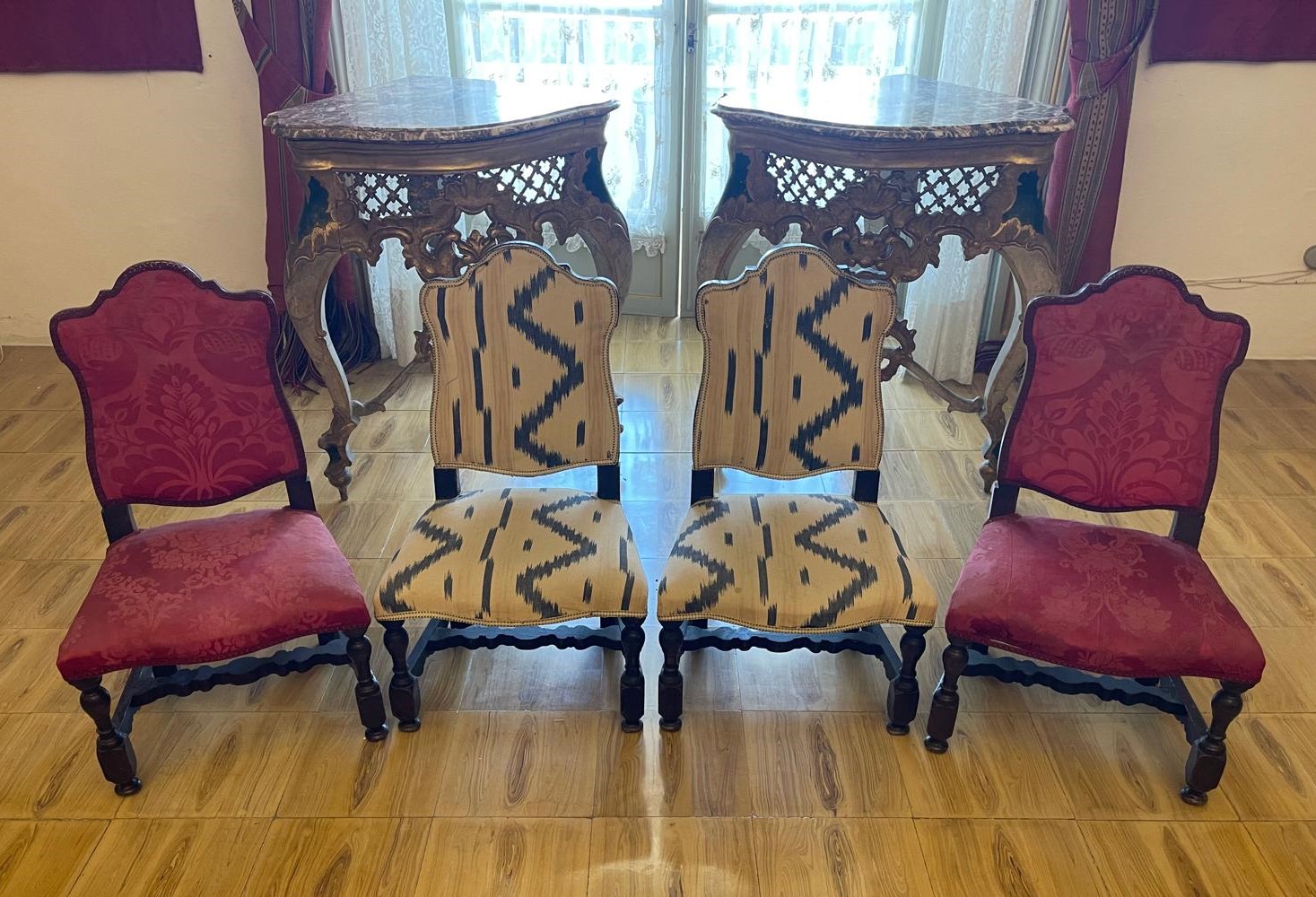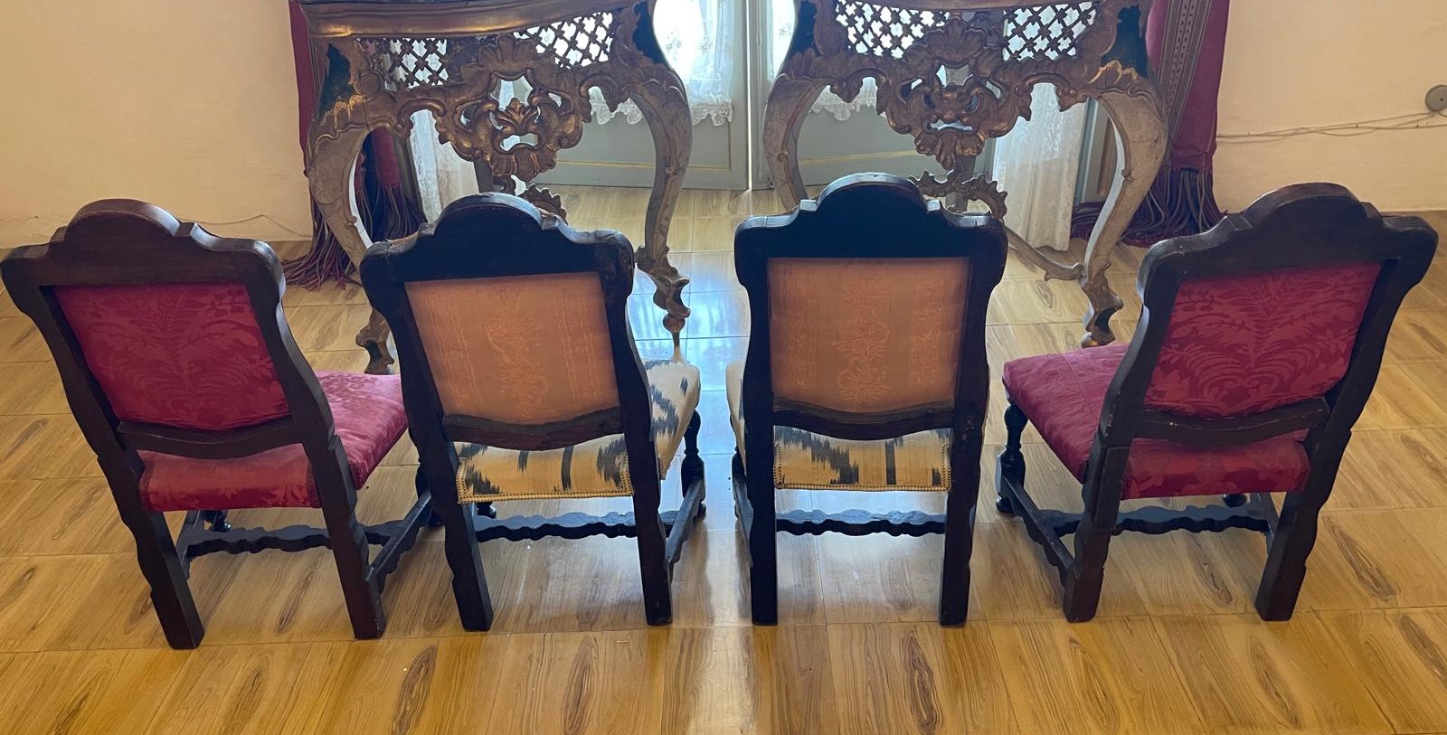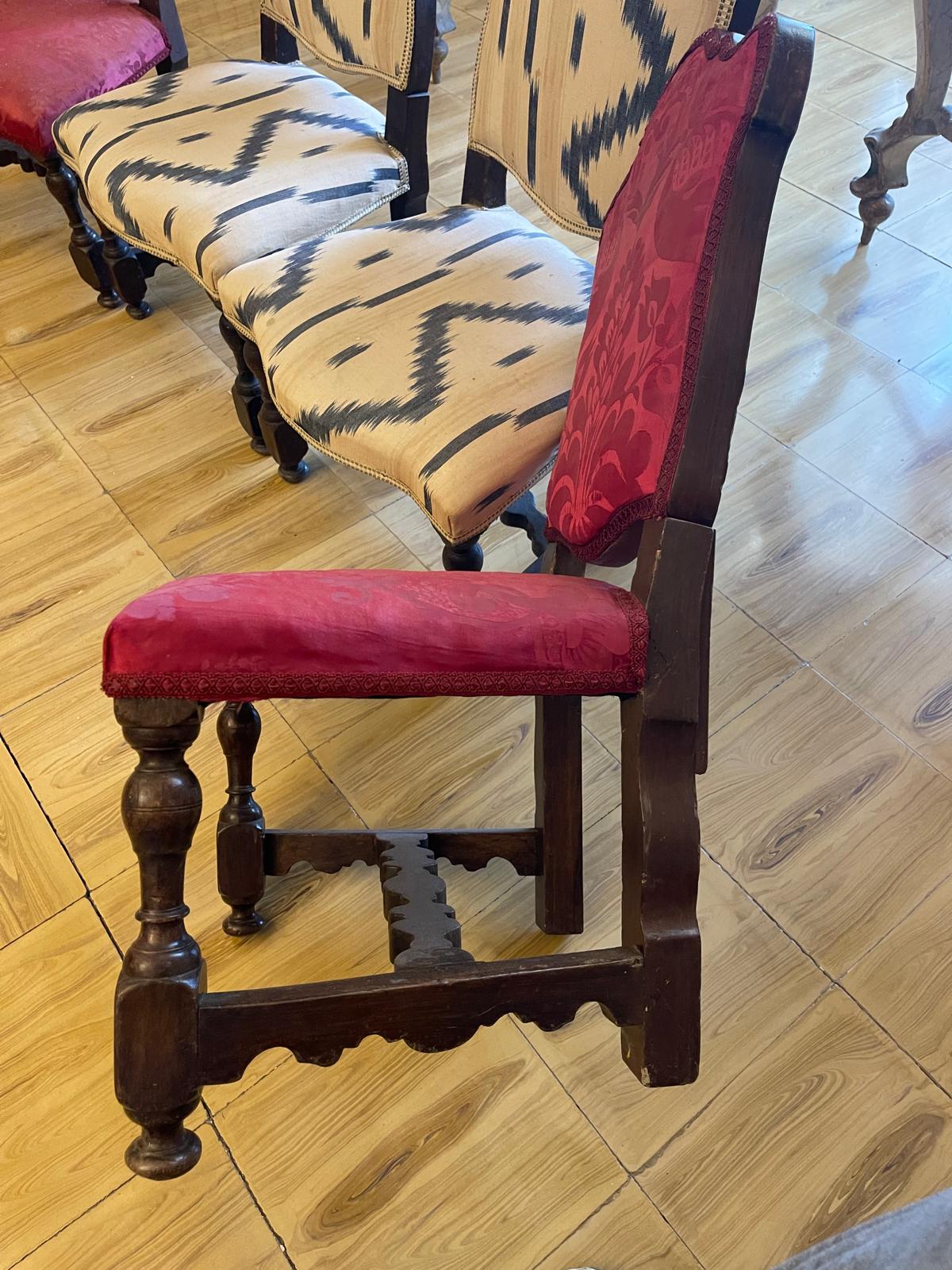 VER IMÁGENES PARA COMPROBAR EL ESTADO REAL.  LAS IMÁGENES FORMAN PARTE DE LA DESCRIPCIÓN.  LOS PRECIOS DE EXPEDICIÓN SON ORIENTATIVOS.  CONTACTE CON NOSOTROS PARA CALCULARLOS SEGÚN SU CASO.  ÚNICAMENTE ZONA UE.  CONJUNTO DE CUATRO MAGNÍFICAS SILLAS BAJAS. ESTILO LUIS XIV.  MADERA DE NOGAL, DE TONALIDAD OSCURA. DOS TIPOS DE TAPIZADO: UNO ROJO CON MOTIVOS VEGETALES Y OTRO COLOR CREMA CON LÍNIAS GRISES.  TRAVESAÑO CENTRAL CON PERFILES ESTILIZADOS. PATAS Y PIE CON PERFILES REDONDEADOS.  BUEN ESTADO GENERAL, LIGEROS DESGASTES Y DESPORTILLAMIENTOS DEBIDO AL USO.