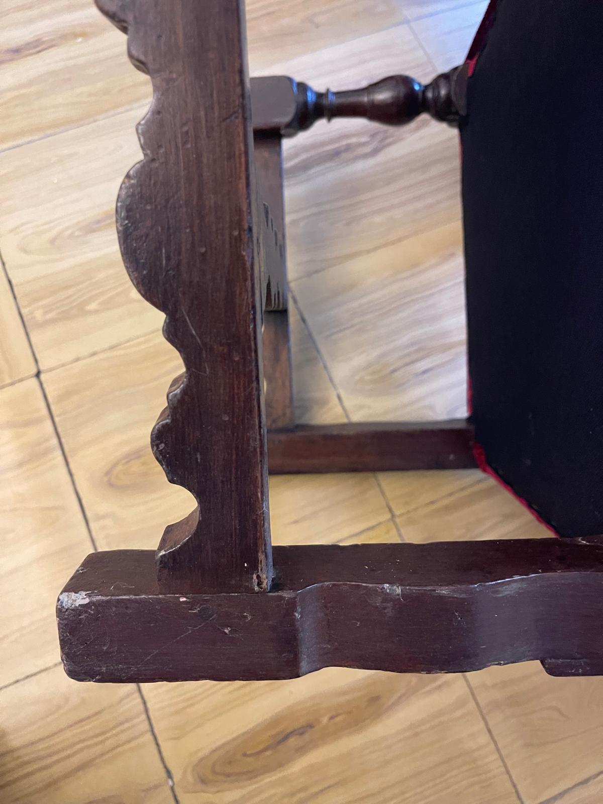 CONJUNTO DE (4) SILLAS BAJAS PARA NIÑO/A DE ESTILO LUIS XIV. MADERA DE NOGAL. ESPAÑA. SIGLO XVIII.
