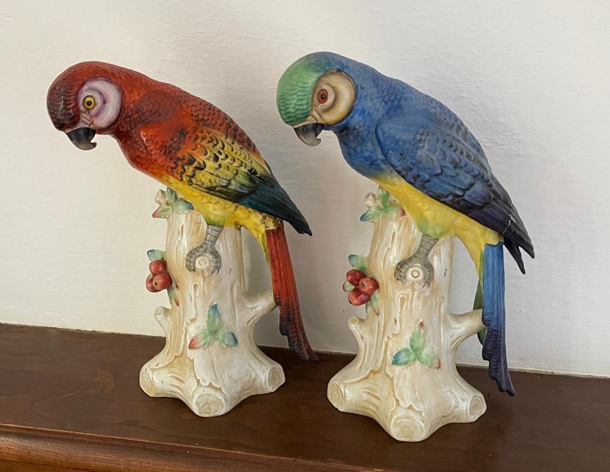 VER IMÁGENES PARA COMPROBAR EL ESTADO REAL. LAS IMÁGENES FORMAN PARTE DE LA DESCRIPCIÓN. PAREJA DE MAGNÍFICOS LOROS O GUACAMAYOS. PORCELANA POLICROMADA. DE ORIGEN ALEMÁN, CON MARCA EN LA BASE DE DRESDEN O MEISSEN. BUEN ESTADO GENERAL, LIGEROS DESGASTES EN LA BASE Y RESTOS DE SUCIEDAD. 25 CM ALTURA.