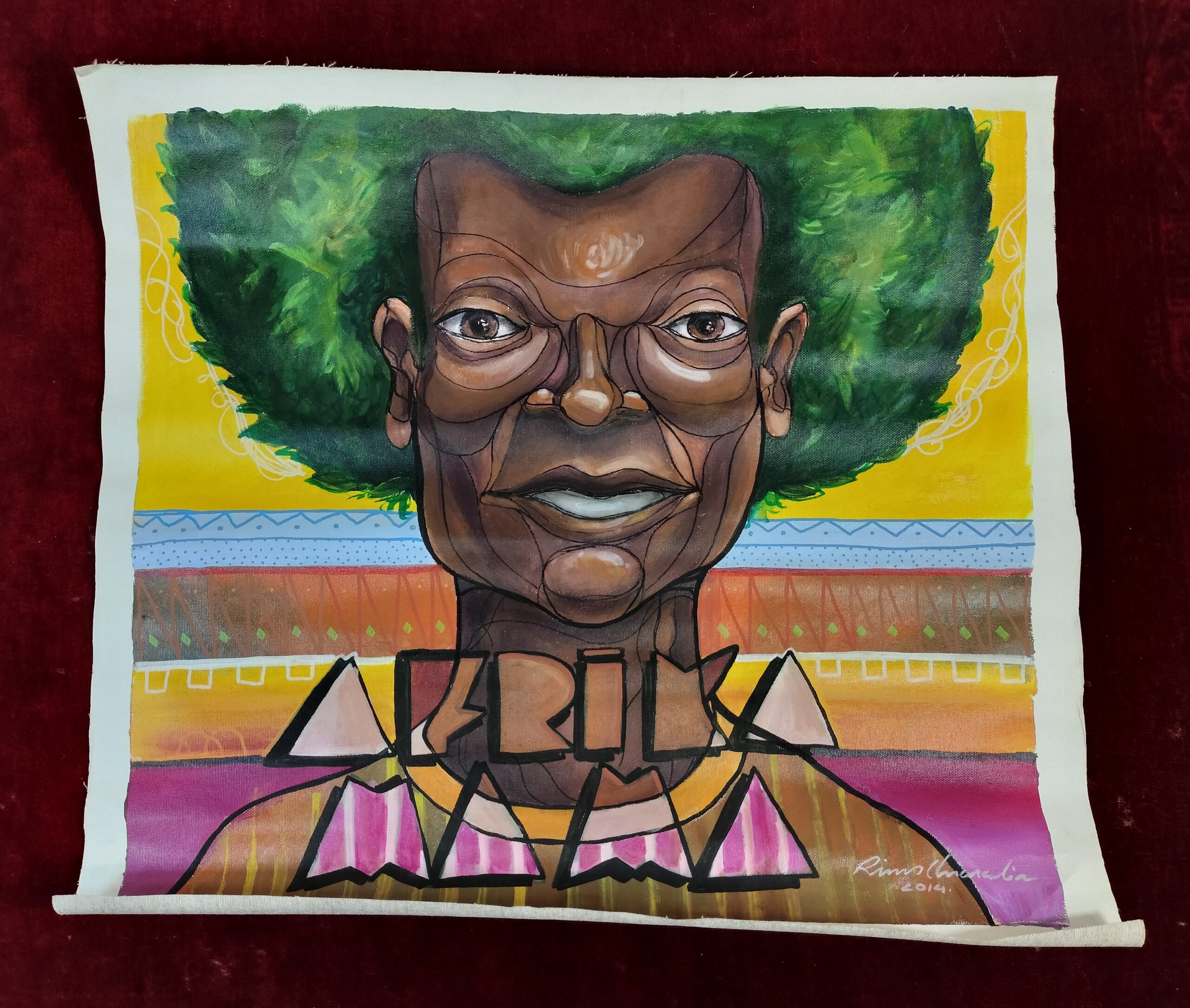 VER IMÁGENES PARA COMPROBAR EL ESTADO REAL.  LAS IMÁGENES FORMAN PARTE DE LA DESCRIPCIÓN.  AFRIKA MAMA.  FIRMADO KIM CHIMADIA. 2014.  ACRÍLICA SOBRE LIENZO, SIN ENMARCAR. ENROLLADO.  LIGEROS PLIEGUES, VER IMÁGENES.  61 X 55,5 CM.