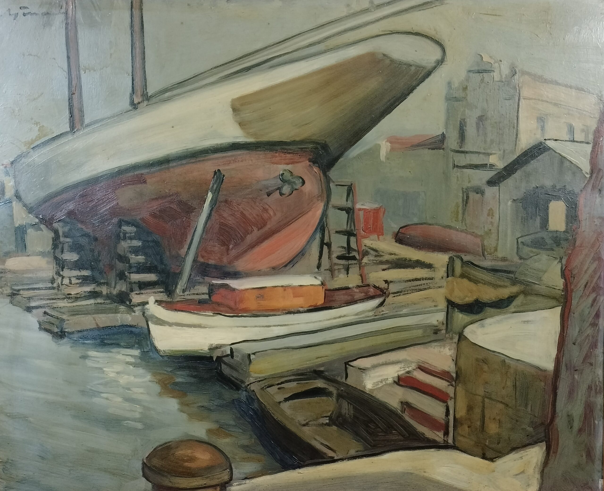 VER IMÁGENES PARA COMPROBAR EL ESTADO REAL. LAS IMÁGENES FORMAN PARTE DE LA DESCRIPCIÓN. VISTA DE PUERTO CON EMBARCACIONES. FIRMADO EN LA ESQUINA SUPERIOR IZQUIERDA, ILEGIBLE. ÓLEO SOBRE CARTÓN. MARCO DE MADERA, SIN VIDRIO PROTECTOR. LIGEROS DESGASTES Y SUCIEDAD DEBIDO AL TIEMPO. DOS PEQUEÑOS AGUJEROS EN LA ESQUINA SUPERIOR DERECHA. MEDIDAS APROXIMADAS: MARCO: 69 X 57,7 X 4,5 CM. PINTURA: 60 X 48,5 CM.