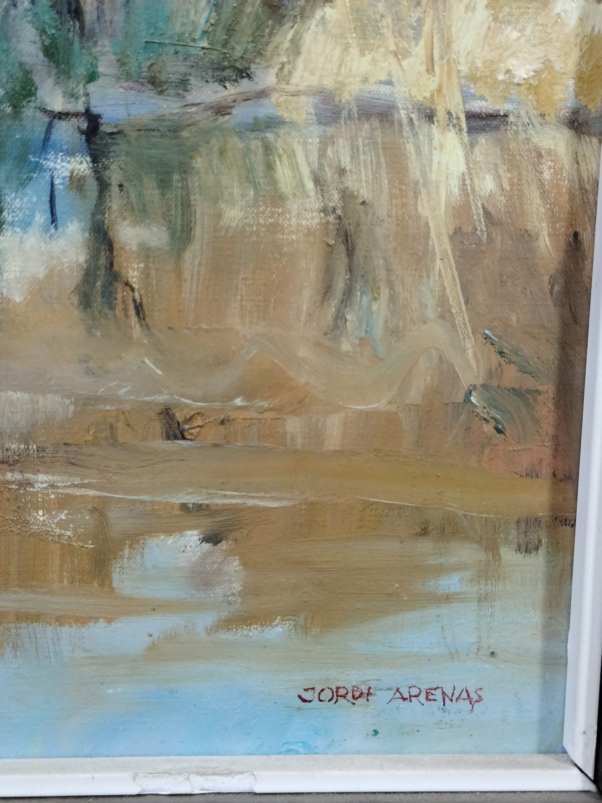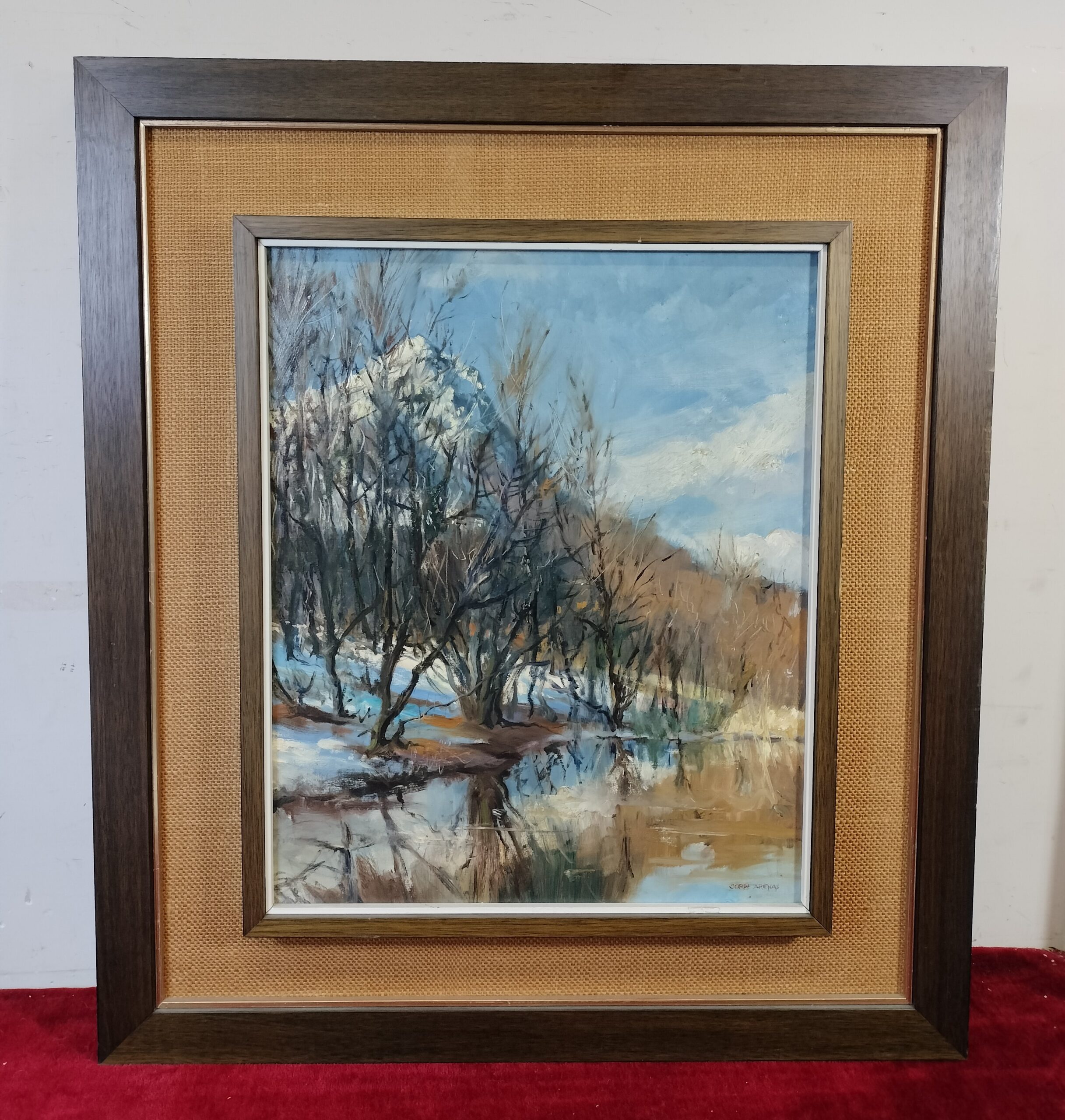 VER IMÁGENES PARA COMPROBAR EL ESTADO REAL.  LAS IMÁGENES FORMAN PARTE DE LA DESCRIPCIÓN.  PAISAJE NEVADO CON RIACHUELO.  FIRMADO JORDI ARENAS.  ÓLEO SOBRE LIENZO.  MARCO DE MADERA, SIN VIDRIO PROTECTOR.  BUEN ESTADO GENERAL, LIGEROS DESGASTES DEBIDO AL TIEMPO.  MEDIDAS:  MARCO: 60,5 X 68 X 3,5 CM.  PINTURA: 35,5 X 44 CM. NOTA HISTÓRICA: Jordi Arenas i Clavell (Mataró, 7 de noviembre de 1920 – Mataró, 1 de julio de 1998) fue un dibujante, pintor y escultor catalán. Se le considera uno de los artistas de mayor renombre y prestigio de Mataró. Desarrolló temas de pintura religiosa, paisajes, escenas mitológicas, alegorías y numerosos retratos. Fue un destacado formador de artistas y docente en el ámbito artístico. Impulsó activamente las exposiciones anuales de Sant Lluc y colaboró de manera esencial con las secciones del Museo de Mataró. A lo largo de su vida, mantuvo una estrecha relación con la actividad cultural de Mataró.