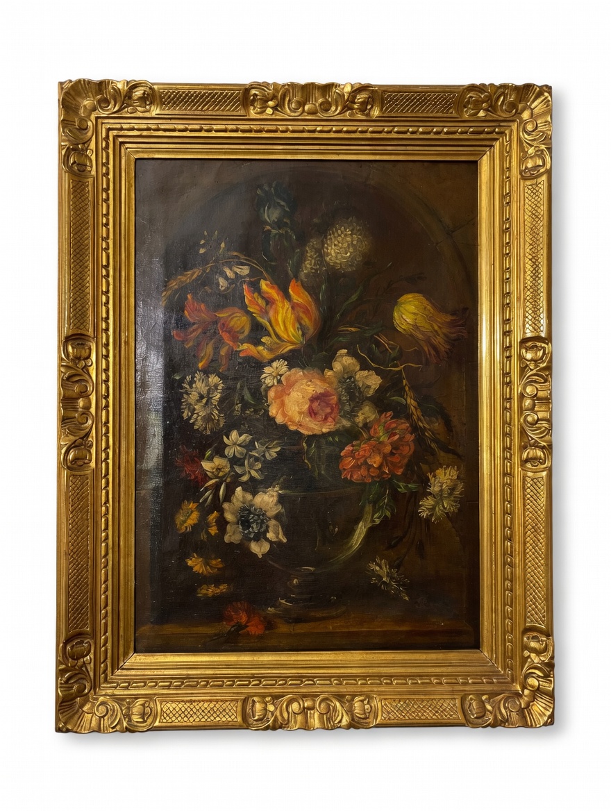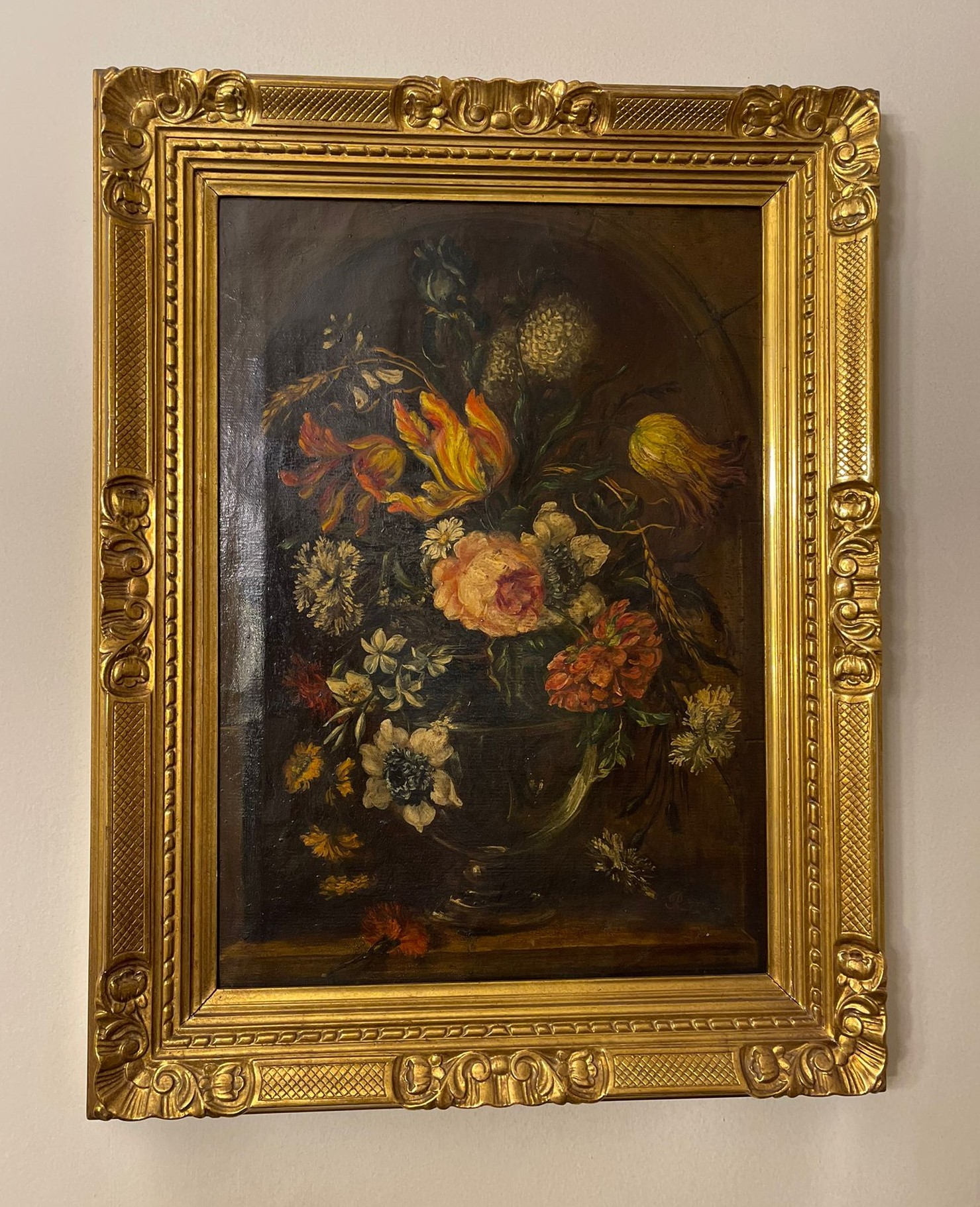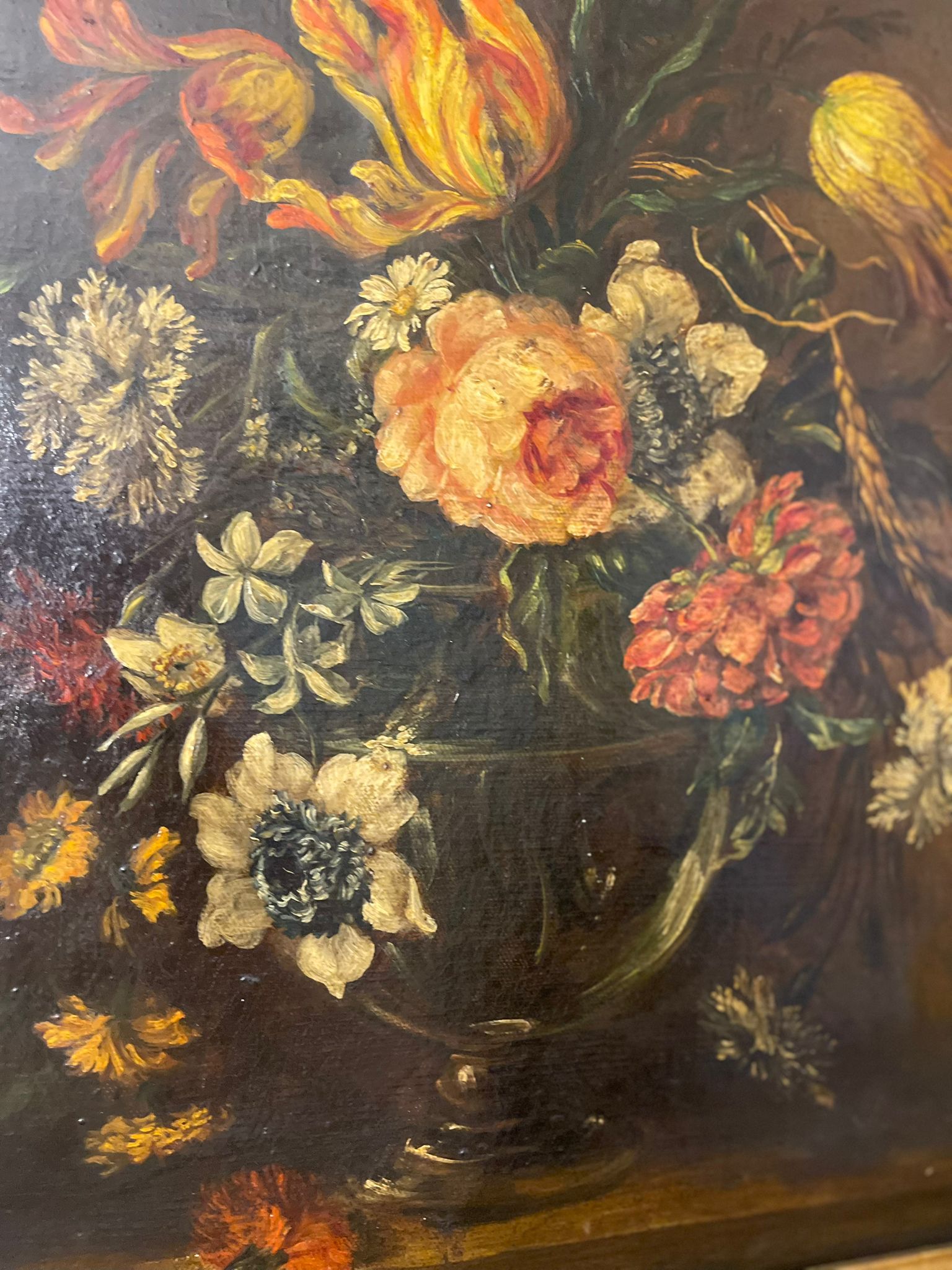 VER IMÁGENES PARA COMPROBAR EL ESTADO REAL. LAS IMÁGENES FORMAN PARTE DE LA DESCRIPCIÓN. BODEGÓN CON FLORERO Y FLORES MARCHITAS. SIN FIRMA. ESCUELA FLAMENCA DEL BARROCO. MARCO EN MADERA DORADA, SIN VIDRIO. SE APRECIAN LAS MARCAS DEL BASTIDOR EN EL LIENZO. LIGERO CRAQUELADO DEBIDO AL TIEMPO. VER IMÁGENES. MEDIDAS: 40 X 56 CM.