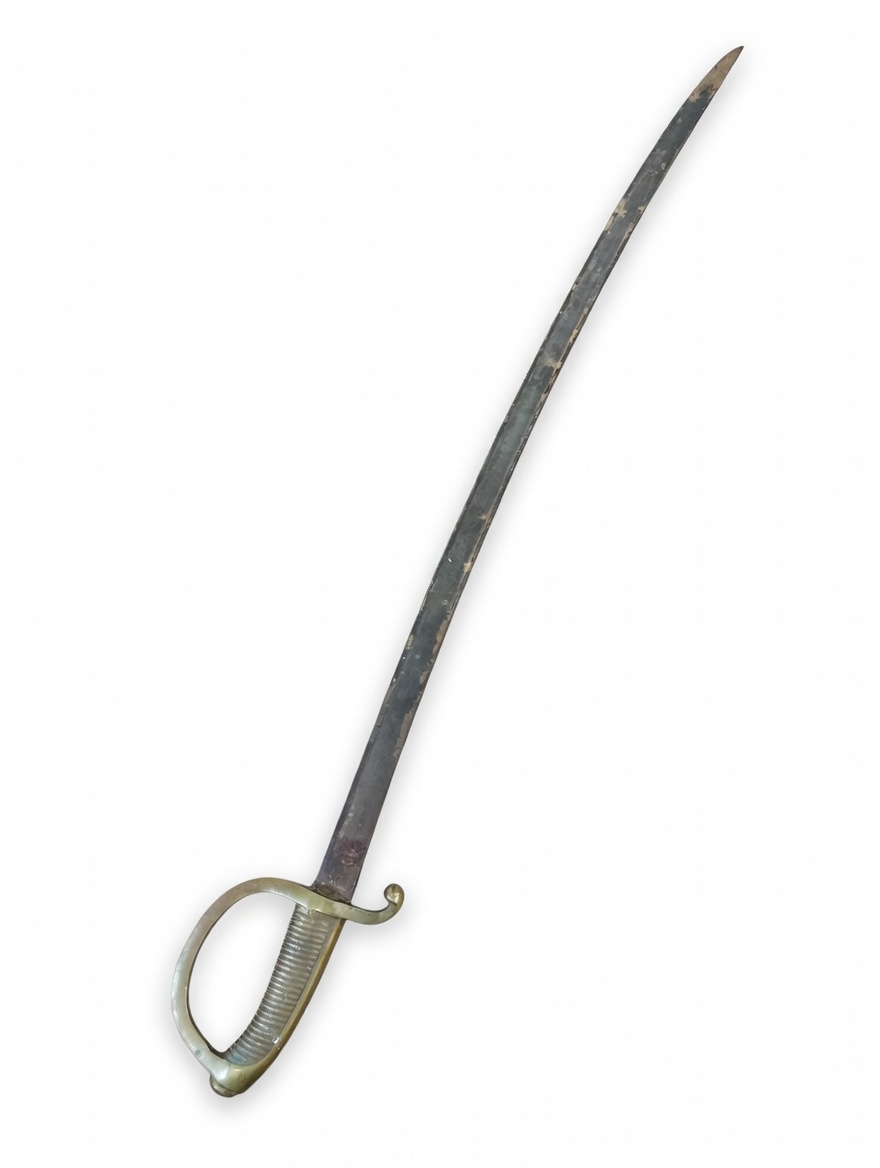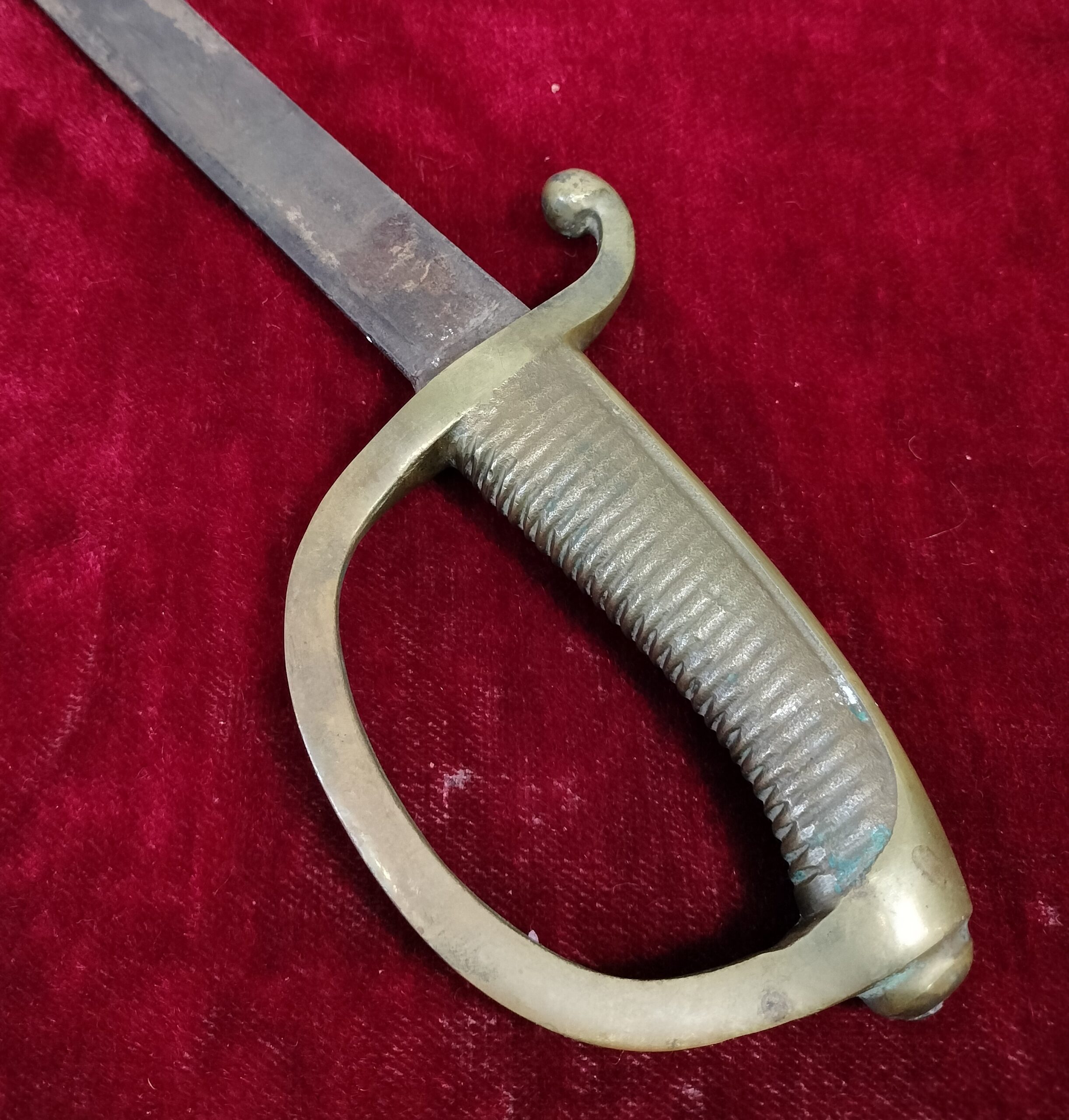 SABLE CURVO DE GALA DE OFICIAL DE CABALLERÍA. GUARDAMANO DE ESTRIBO. METAL. SIGLO XIX.