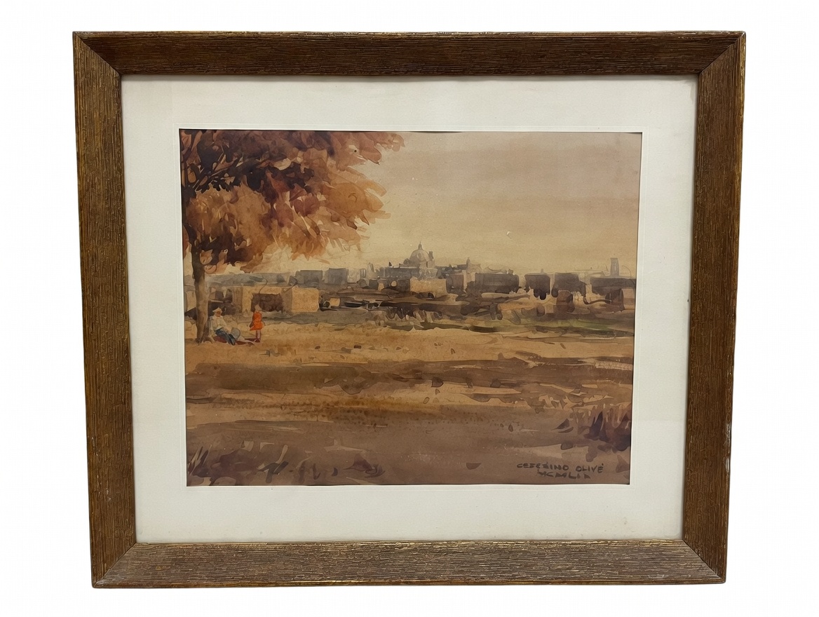VER IMÁGENES PARA COMPROBAR EL ESTADO REAL. LAS IMÁGENES FORMAN PARTE DE LA DESCRIPCIÓN. VISTA DE CIUDAD DESDE EL CAMPO. FIRMADO CEFERINO OLIVÉ. FECHADO 1959. ACUARELA SOBRE PAPEL. MARCO DE MADERA, CON VIDRIO PROTECTOR. BUEN ESTADO GENERAL, VER IMÁGENES.