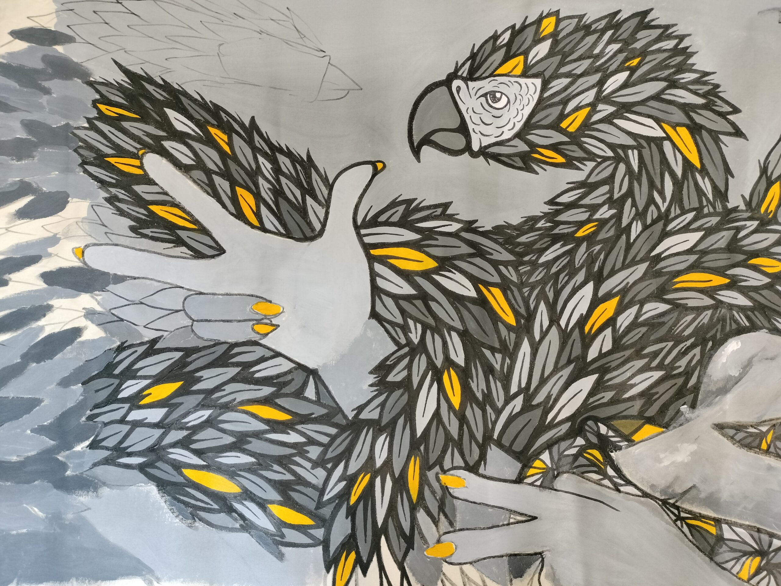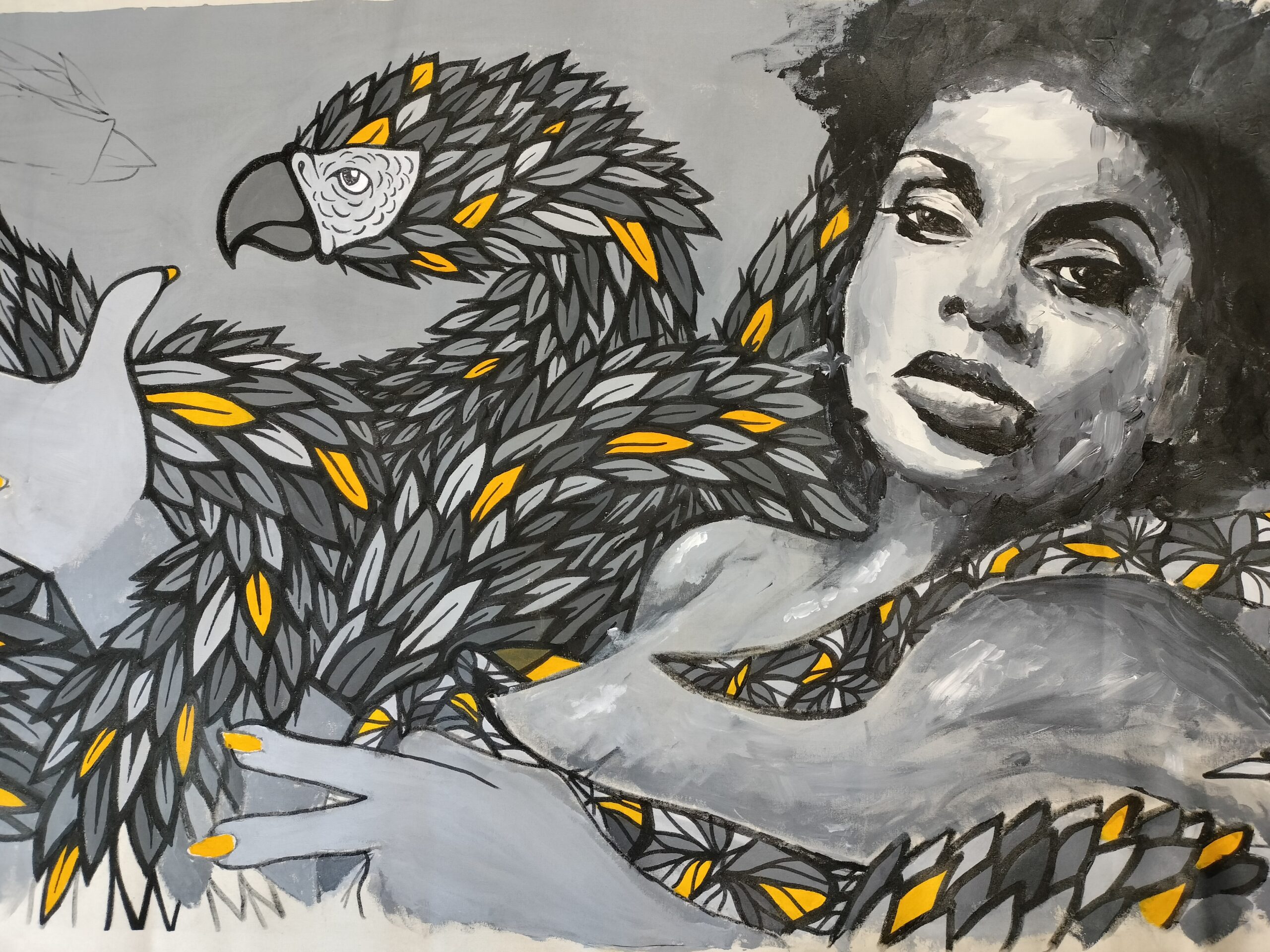 MUJER Y AVE O DRAGÓN EMPLUMADO. ACRÍLICA SOBRE LIENZO. ESPAÑA. SIGLO XXI.