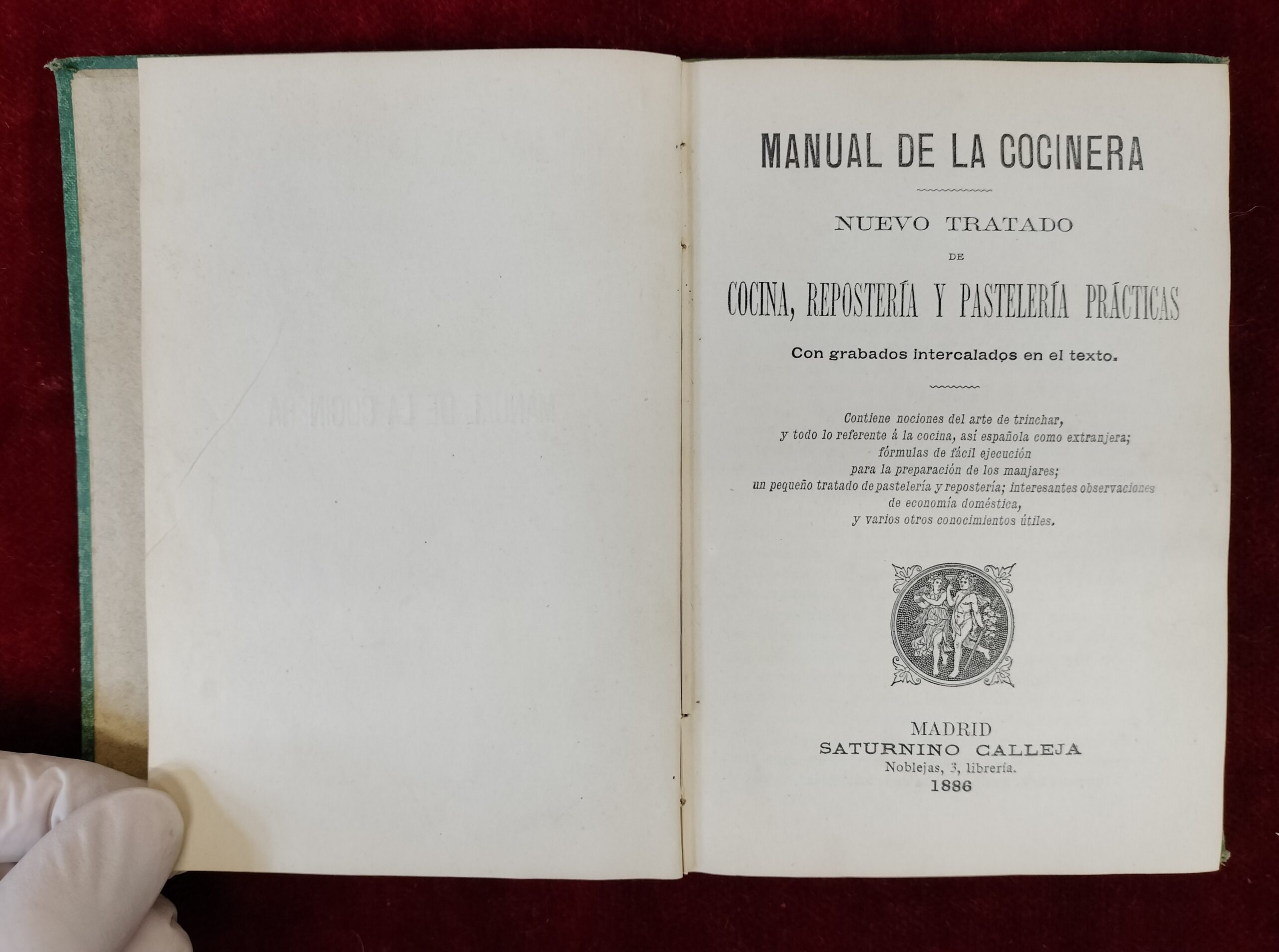 MANUAL DE LA COCINERA. NUEVO TRATADO DE COCINA, REPOSTERÍA (…). MADRID, SATURNINO CALLEJA. 1886.