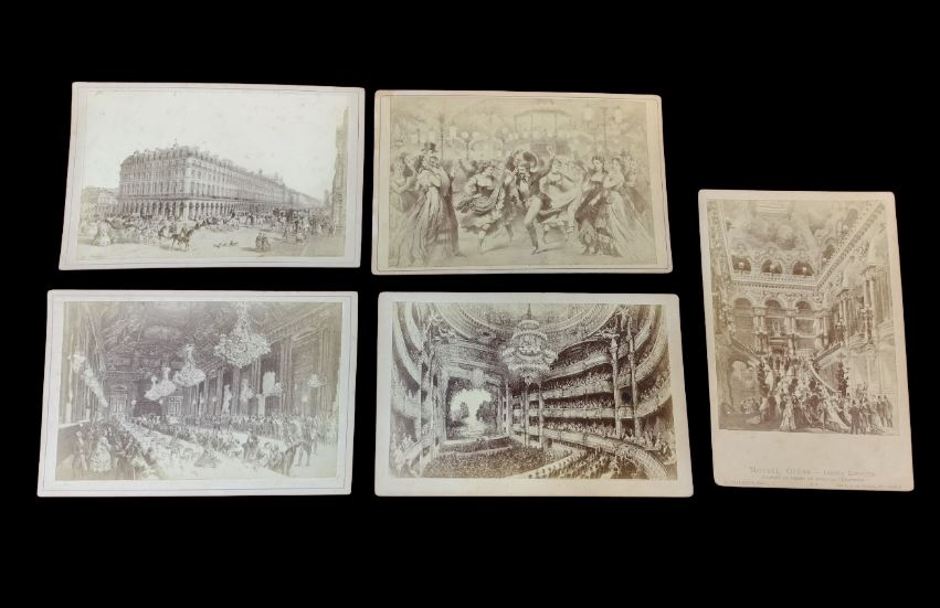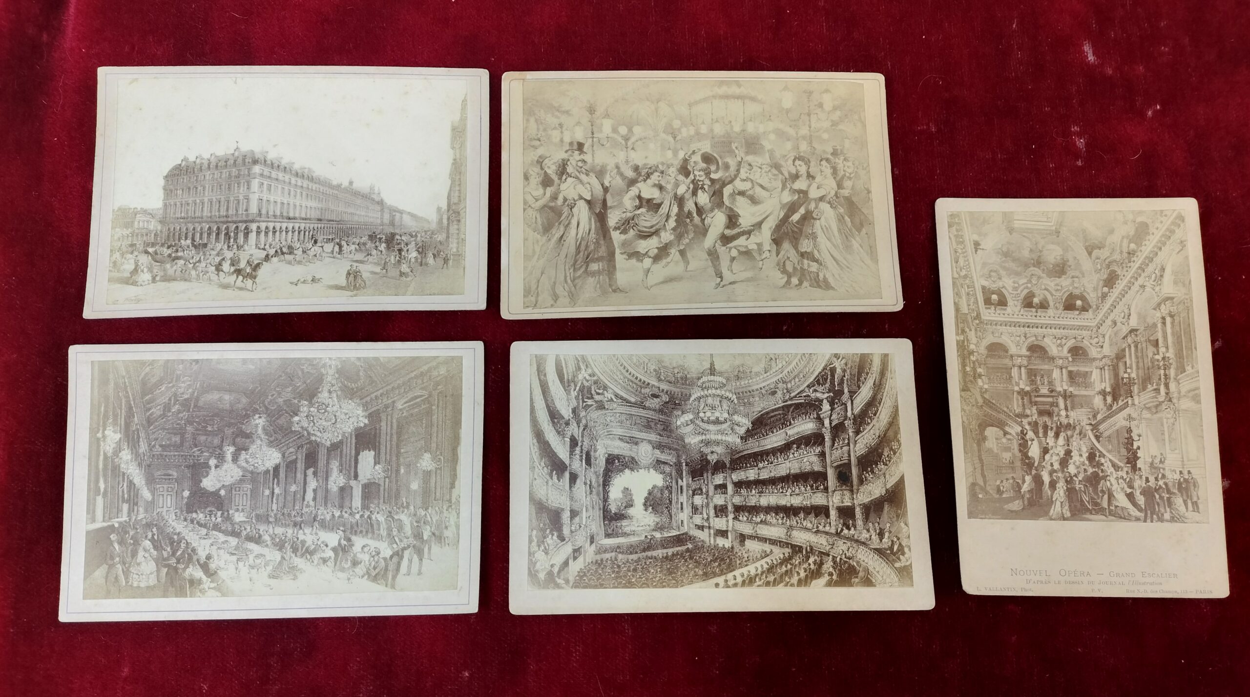 LOTE DE CINCO GRABADOS DE PARIS. ÓPERA E IMPRESIONES DE LA VIDA SOCIAL. FRANCIA. XIX-XX