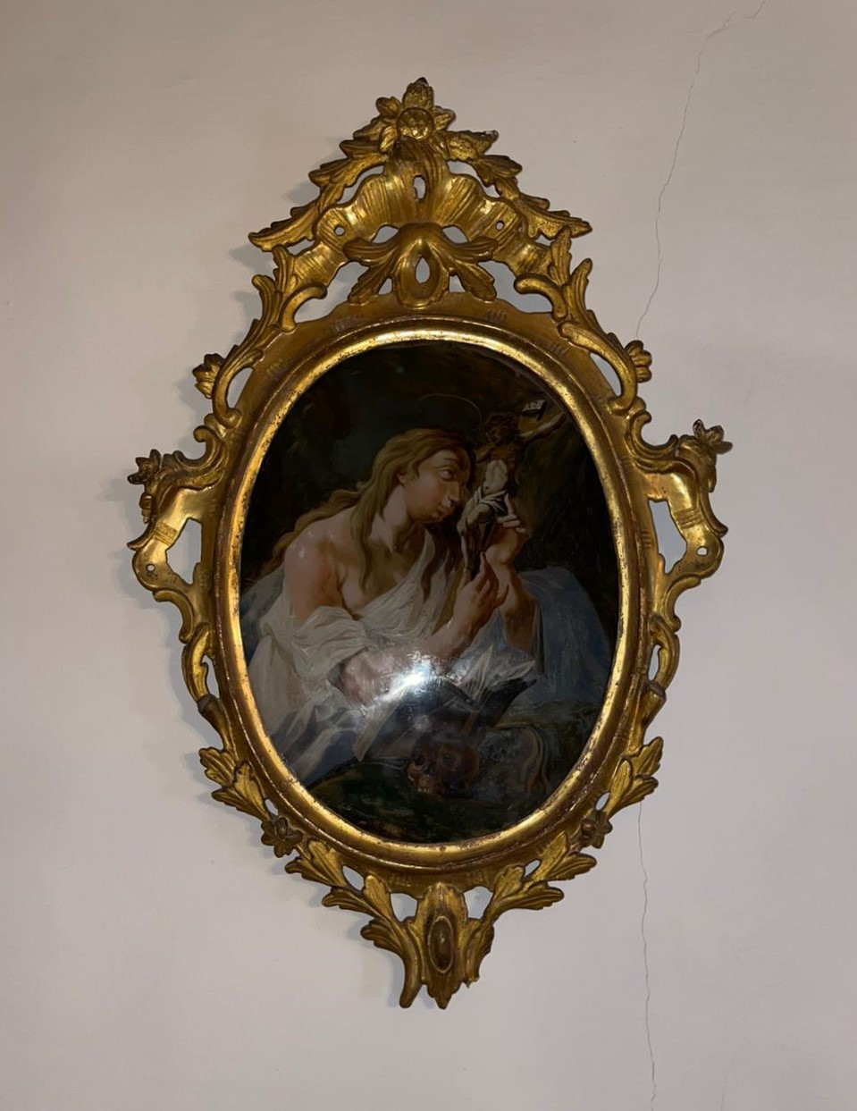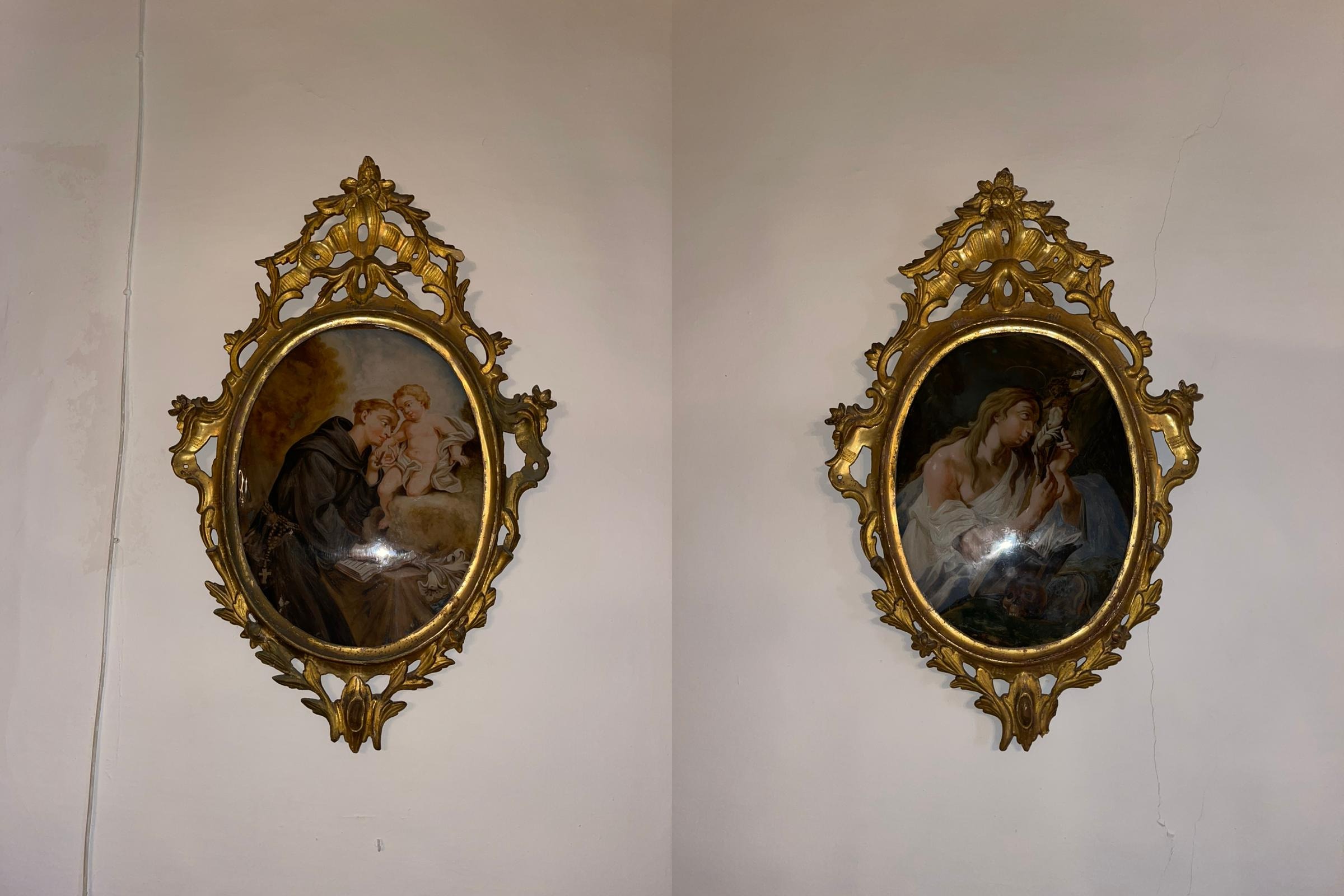 VER IMÁGENES PARA COMPROBAR EL ESTADO REAL.  LAS IMÁGENES FORMAN PARTE DE LA DESCRIPCIÓN. PAREJA DE CORNUCOPIAS DE ESTILO BARROCO.  CRISTAL PINTADO CON ESCENAS RELIGIOSAS.  MADERA DORADA Y ÓLEO SOBRE CRISTAL.  SIN FIRMA NI MARCA DE AUTOR.  BUEN ESTADO GENERAL, LIGEROS DESGASTES DEBIDO AL USO Y EL TIEMPO. 70 X 50 CM.