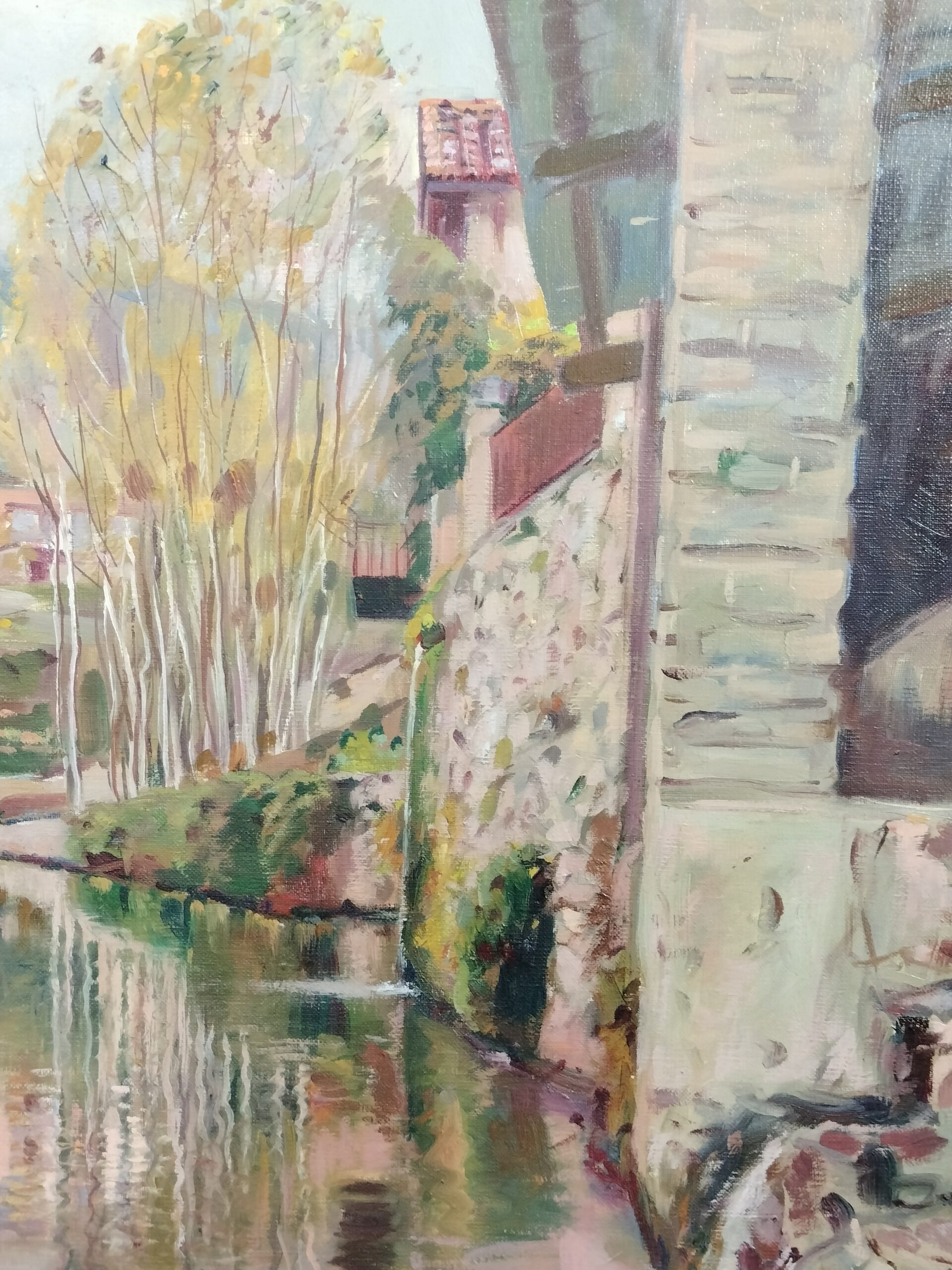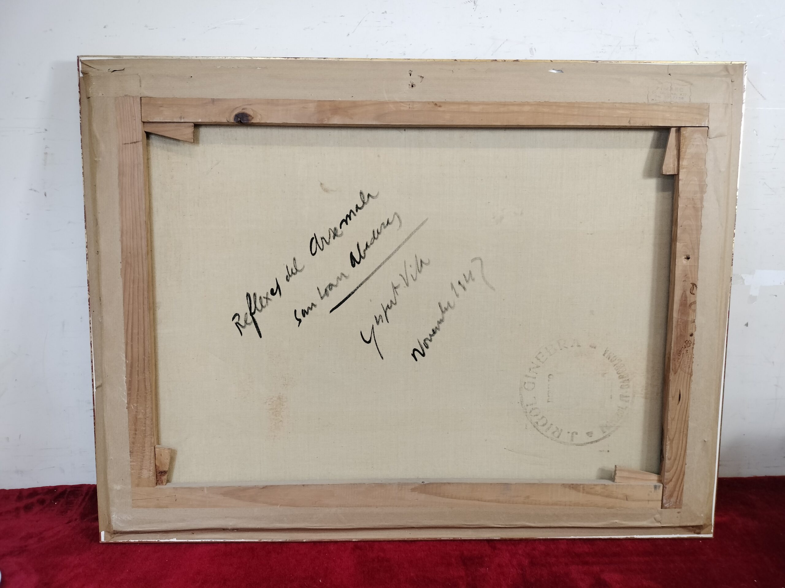 VER IMÁGENES PARA COMPROBAR EL ESTADO REAL. LAS IMÁGENES FORMAN PARTE DE LA DESCRIPCIÓN. REFLEJO DEL ARÇAMALA. SANT JOAN DE LES ABADESSES. FIRMADO EN LA ESQUINA SUPERIOR IZQUIERDA: GISPERT VILA (MIQUEL). ÓLEO SOBRE LIENZO. SIN VIDRIO PROTECTOR. BUEN ESTADO GENERAL, BARNIZ LIGERAMENTE ENVEJECIDO, CON ALGUNAS MANCHAS DEBIDO AL TIEMPO. MARCO: 77,1 X 58,5 CM. PINTURA: 71,5 X 53 CM. Biografía: MIQUEL GISPERT Y VILA (CALDES DE MONTBUI, VALLÈS ORIENTAL, 1888 – SÃO PAULO, BRASIL, 1974) FUE UN PINTOR QUE CULTIVÓ ESPECIALMENTE EL PAISAJE AL ÓLEO. SU AFICIÓN A LA PINTURA SE DEMOSTRÓ YA DE MUY NIÑO, EMPEZANDO A HACER EXPOSICIONES POR TODA LA PROVINCIA DE BARCELONA. RESIDIÓ CASI SIEMPRE EN CALDES DE MONTBUI. EL AÑO 1.935 EXPUSO EN TERRASSA JUNTO A SU AMIGO MANOLO HUGUÉ EN LA SALA. MÁS TARDE LO HIZO EN LA SALA PARÉS DE LA CIUDAD CONDAL, Y TAMBIÉN EN LAS MEJORES SALAS DE LA CAPITAL CATALANA. EN 1950 SE FUE A BRASIL, FIJANDO SU HOGAR CERCA DE SÃO PAULO. PERO EL PINTOR SIEMPRE TUVO SU RECUERDO EN LA VILLA NATAL: ASÍ LO DEMUESTRAN LAS INNUMERABLES CARPETAS DE DIBUJOS CON ESTUDIOS DE CALDES. LA PINTURA DE MIQUEL GISPERT DESARROLLA UNA ESPECIE DE SERENIDAD EN SUS CAMPOS LLENOS DE CLARIDAD Y SUGESTIONES. CADA CUADRO ES COMO UN MIRADOR AL PAISAJE Y CREA UNA CONCIENCIA CROMÁTICA PARA QUIEN QUIERE SENTIR Y PENSAR EN LA NATURALEZA VIVA.
