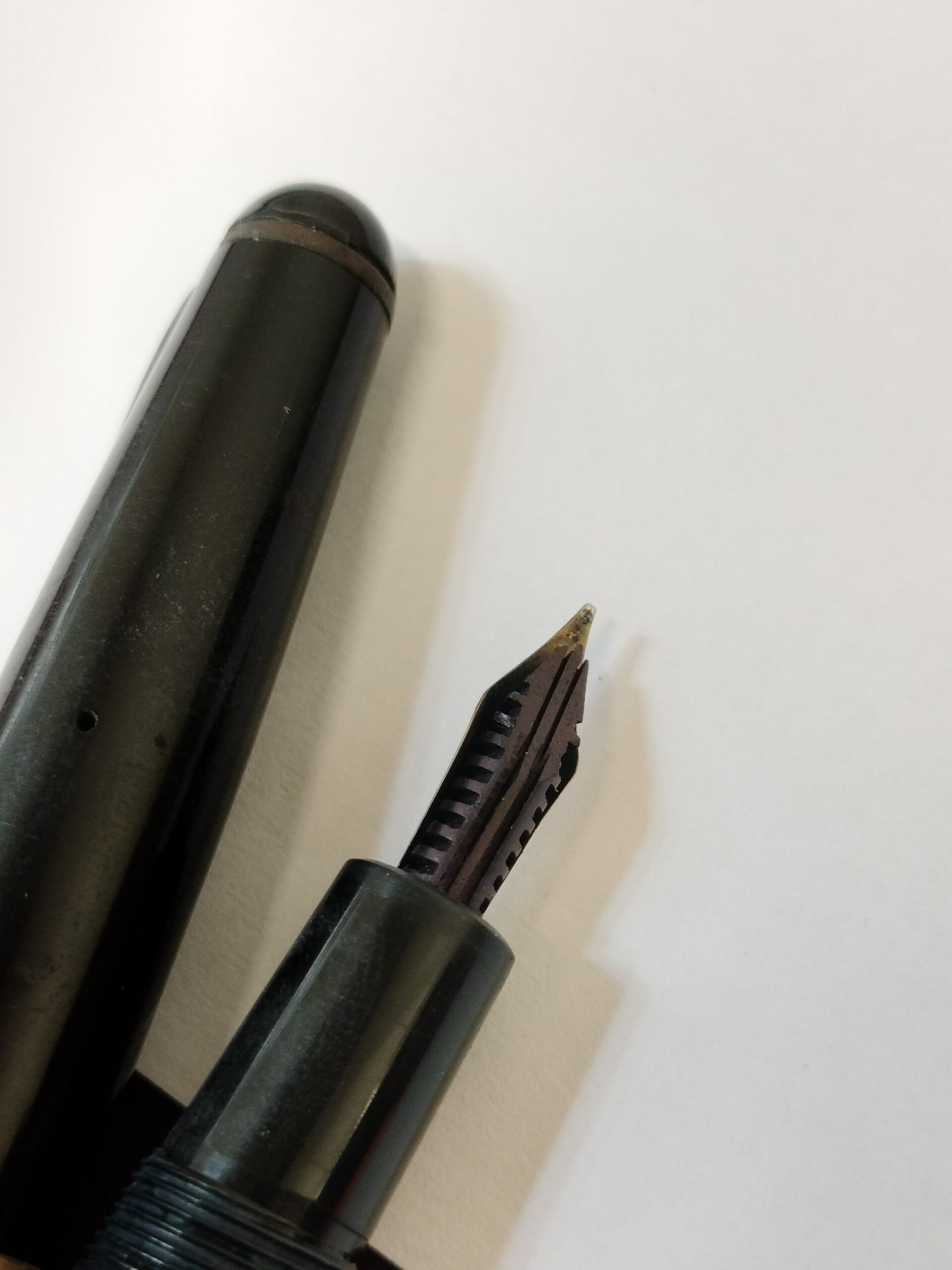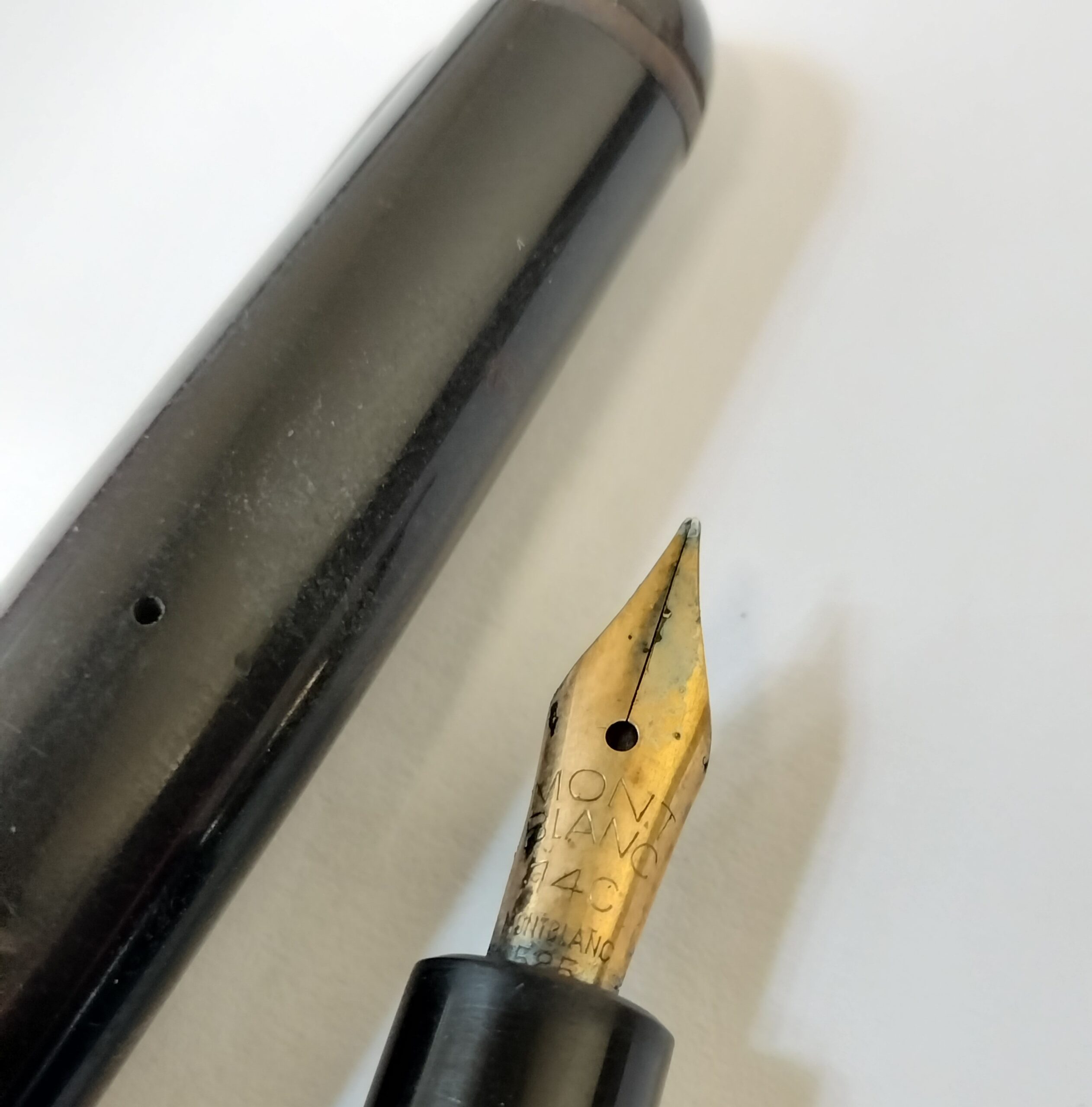 VER IMÁGENES PARA COMPROBAR EL ESTADO REAL.  LAS IMÁGENES FORMAN PARTE DE LA DESCRIPCIÓN.  PLUMA ESTILOGRÁFICA MONTBLANC 342.  RESINA NEGRA Y PLUMÍN ORIGINAL EN ORO 14K.  PLUMÍN SECO, CON SEÑALES DE USO.  SIN CERTIFICADO NI GARANTÍA ORIGINALES.  DESGASTES EN LA CHAPA DORADA.  NO FUNCIONA EN SU ESTADO ACTUAL, SE RECOMIENDA REVISIÓN DEL SISTEMA DE PISTÓN. VER IMÁGENES.