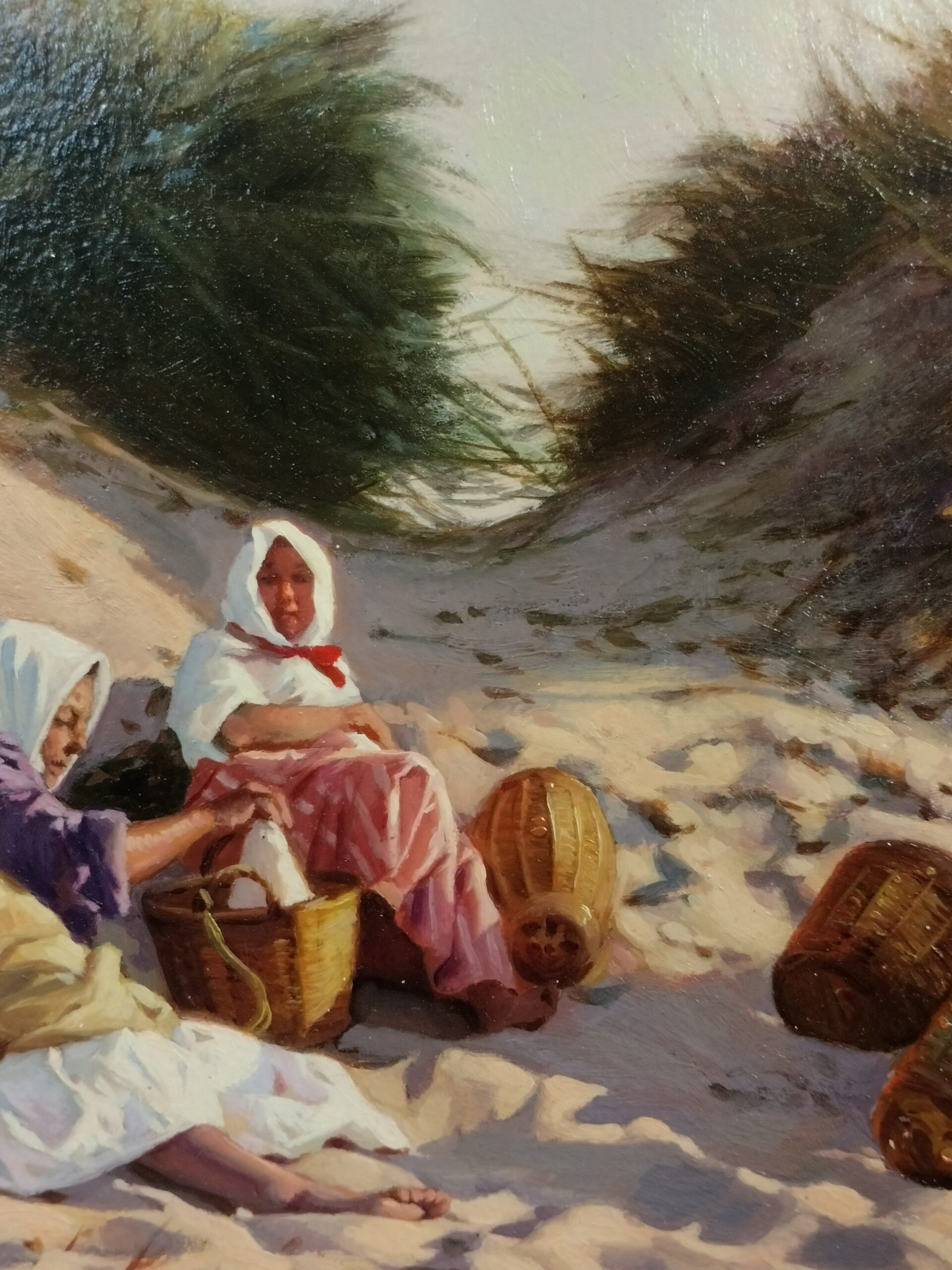 VER IMÁGENES PARA COMPROBAR EL ESTADO REAL. LAS IMÁGENES FORMAN PARTE DE LA DESCRIPCIÓN. GRUPO DE MUJERES EN LA PLAYA. ÓLEO SOBRE TABLA. FIRMADO EN LA ESQUINA INFERIOR IZQUIERDA: PABLO S […]. MARCO DE MADERA, SIN VIDRIO PROTECTOR. BUEN ESTADO GENERAL, VER IMÁGENES. MEDIDAS APROXIMADAS: MARCO: 73,5 X 47,5 CM. PINTURA: 54 X 28,3 CM.