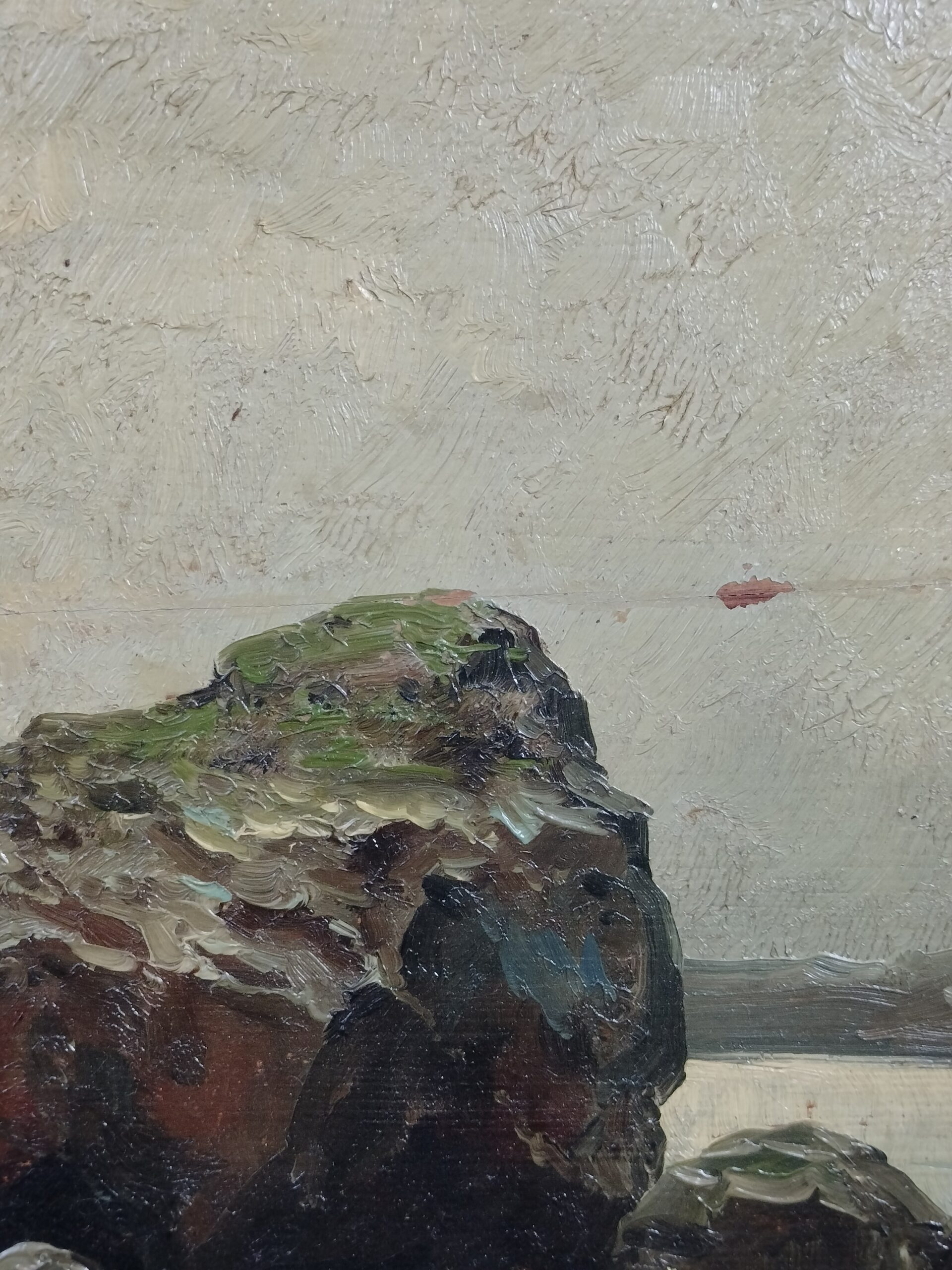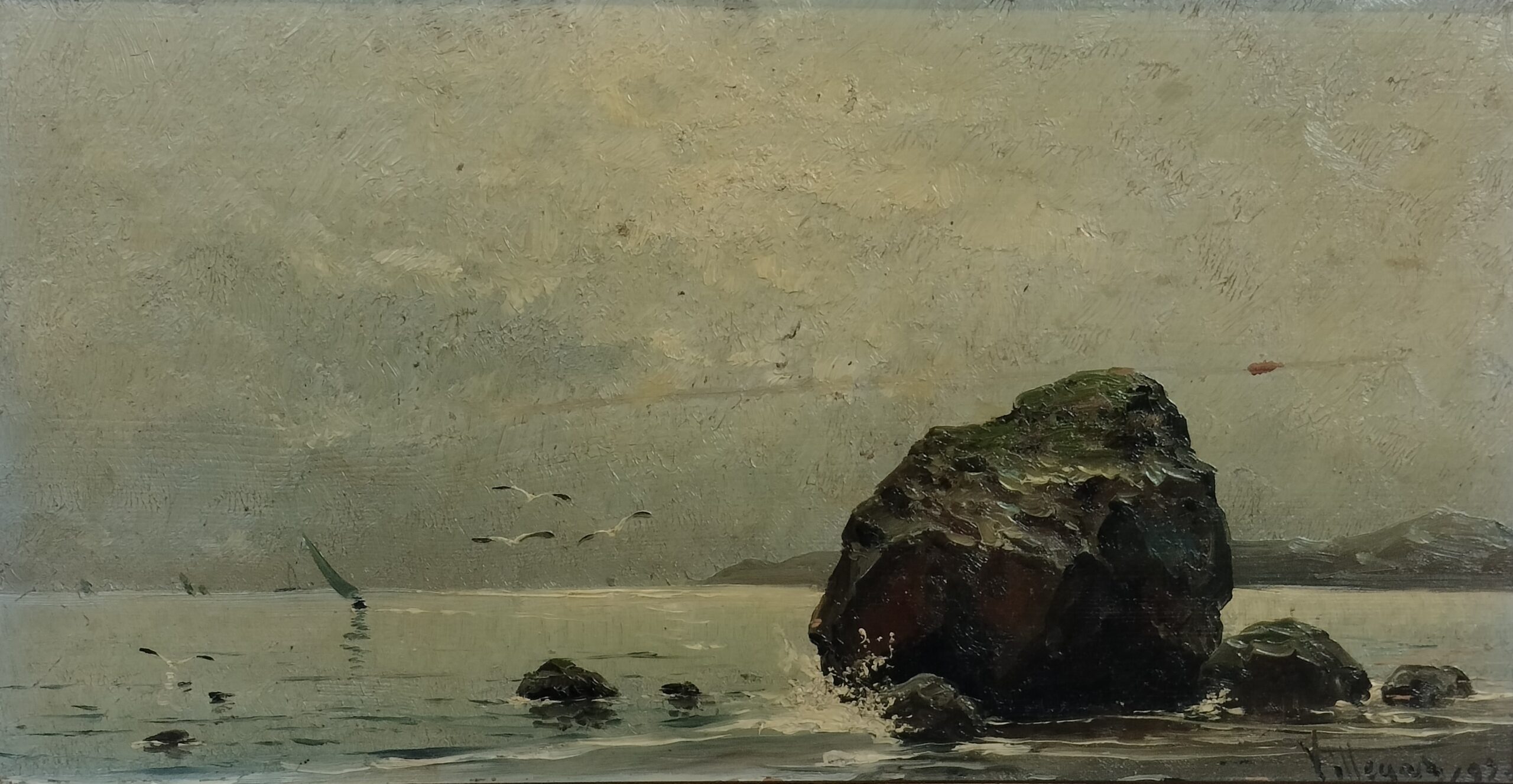 VER IMÁGENES PARA COMPROBAR EL ESTADO REAL. LAS IMÁGENES FORMAN PARTE DE LA DESCRIPCIÓN. PAISAJE MARÍTIMO CON ROCAS. FIRMADO EN LA ESQUINA INFERIOR DERECHA: VILLEGAS, 85. MARCO DE MADERA DORADA, CON PEQUEÑOS DESPORTILLAMIENTOS. SIN VIDRIO PROTECTOR. BARNIZ ENVEJECIDO. PÉRDIDAS DE PINTURA. MEDIDAS: MARCO: 51,5 X 33,5 X 4 CM. PINTURA: 38 X 19,5 CM.