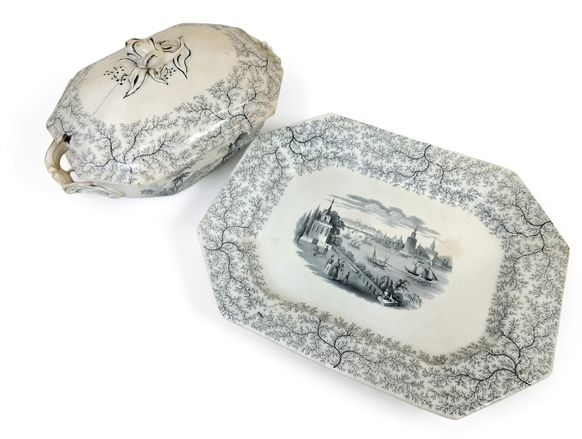 VER IMÁGENES PARA COMPROBAR EL ESTADO REAL. LAS IMÁGENES FORMAN PARTE DE LA DESCRIPCIÓN. ANTIGUA BANDEJA Y SOPERA DE LOZA FINA. FÁBRICA LA CARTUJA PICKMAN. DECORADAS CON MOTIVOS VEGETALES Y ESCENAS PORTUARIAS. PRESENTAN NOTABLES DESGASTES. MANCHAS, DESPORTILLAMIENTOS Y ROTURAS. SE RECOMIENDA UNA RESTAURACIÓN. MEDIDAS: BANDEJA: 2300 GR. 45,8 X 36 X 4,5 CM. SOPERA: 2329 GR. 35,5 (CON ASAS) X 21 X 20 (CON TAPA) CM.