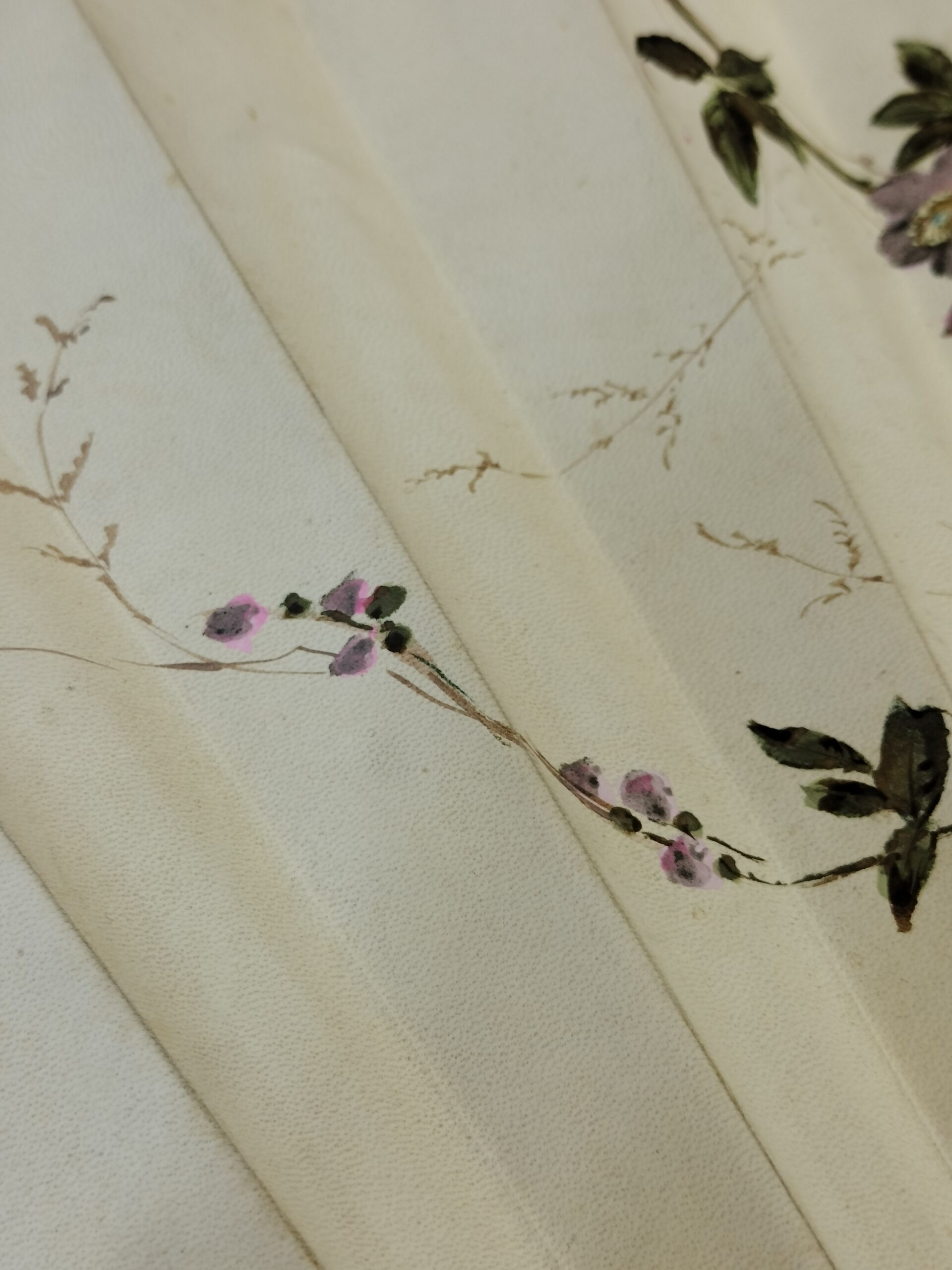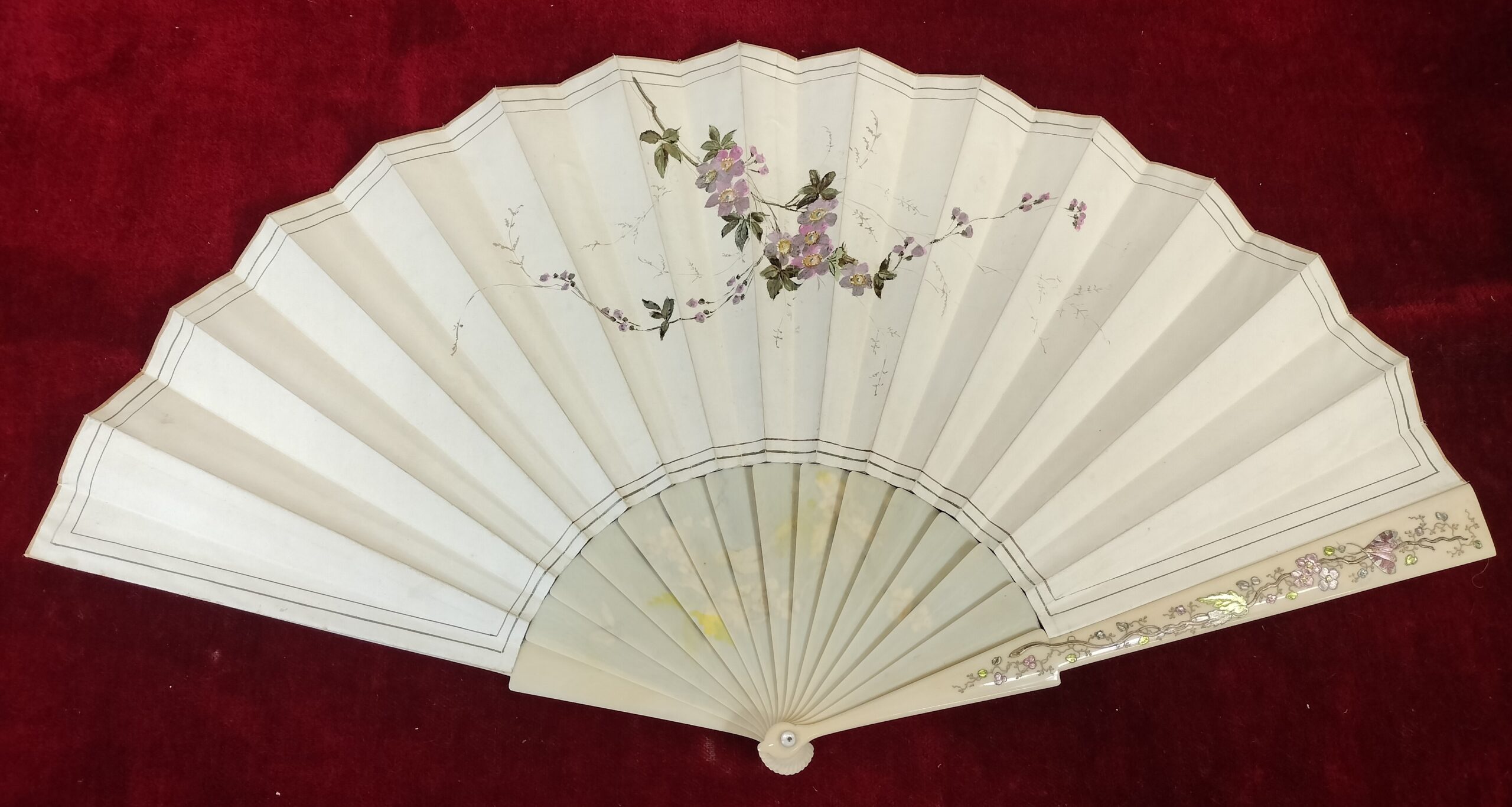 VER IMÁGENES PARA COMPROBAR EL ESTADO REAL.  LAS IMÁGENES FORMAN PARTE DE LA DESCRIPCIÓN.  ANTIGUO ABANICO PERICON.  PAPEL PERGAMINO PINTADO A MANO CON ESCENAS CAMPESTRES.  VARILLAJE BLANCO, DE ESTILO ORIENTAL, CON PINTURA EN RELIEVE EN AMBAS CARAS.  SIN FIRMA NI MARCA DE AUTOR.  LIGEROS DESGASTES, PEQUEÑAS PÉRDIDAS DE PINTURA Y RESTOS DE SUCIEDAD. VER IMÁGENES.  35 CM LARGO X 66 CM ANCHO.