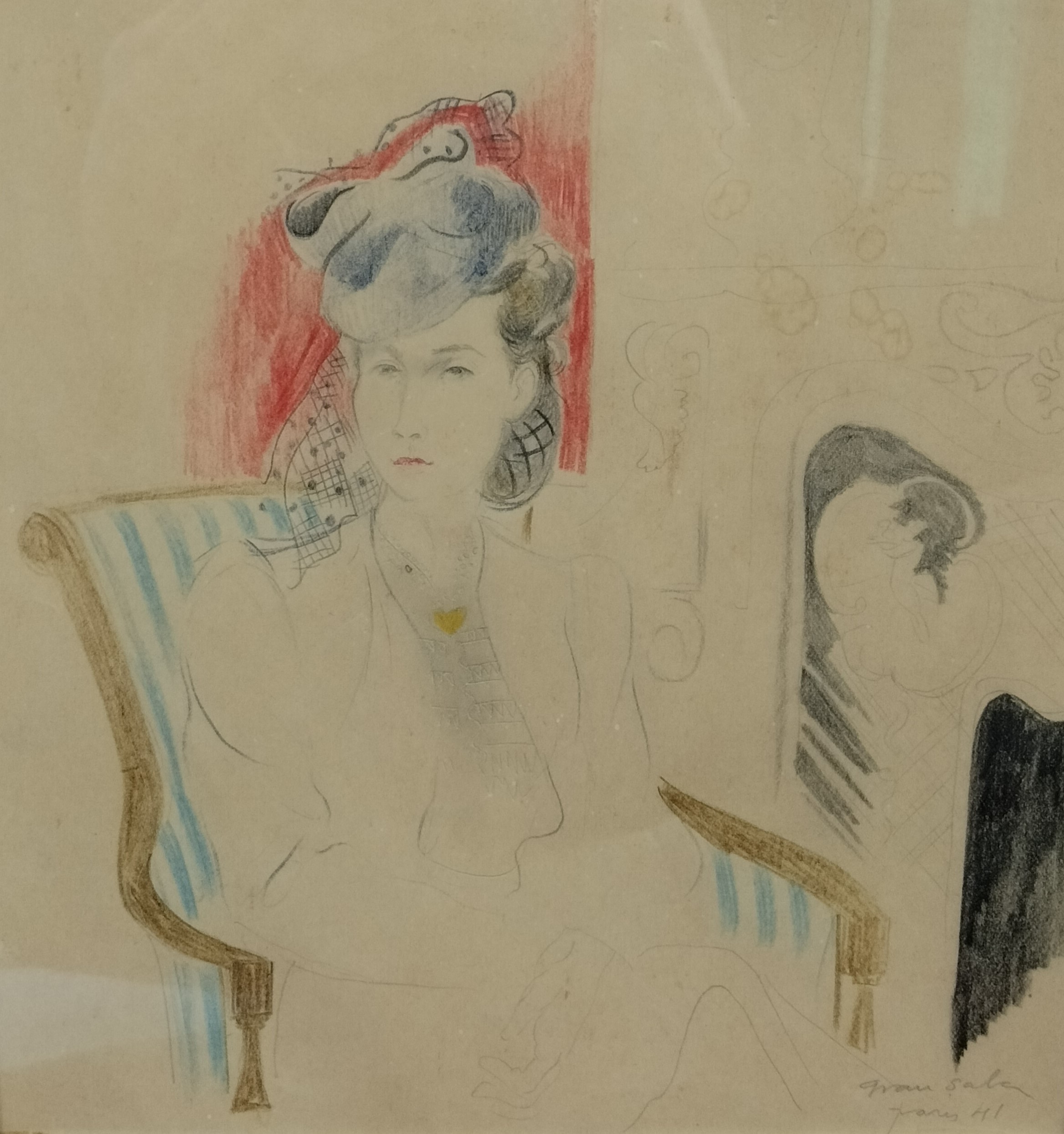 RETRATO DE MUJER PARISINA. FIRMADO GRAU SALA. DIBUJO SOBRE PAPEL. FRANCIA. SIGLO XX